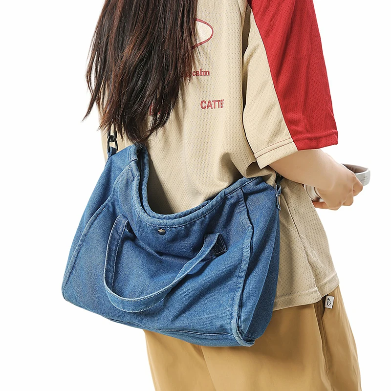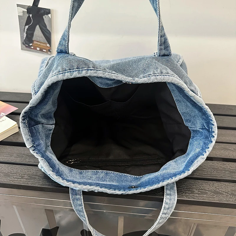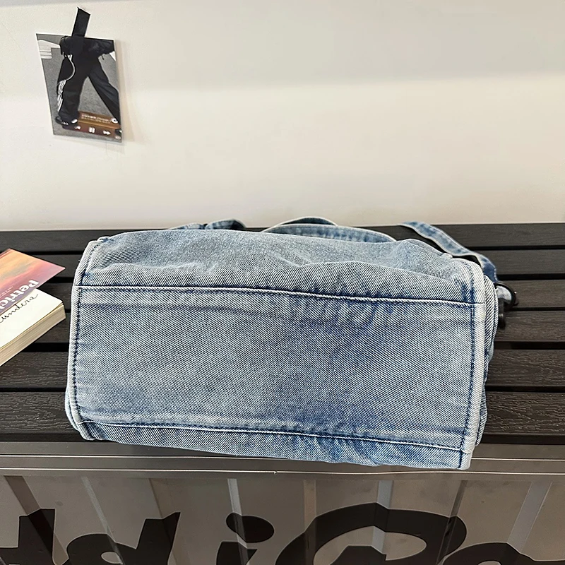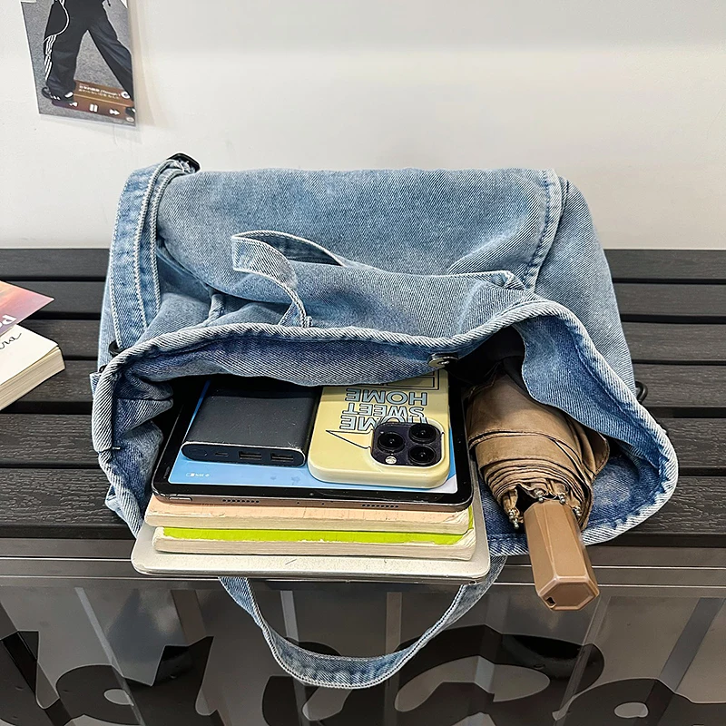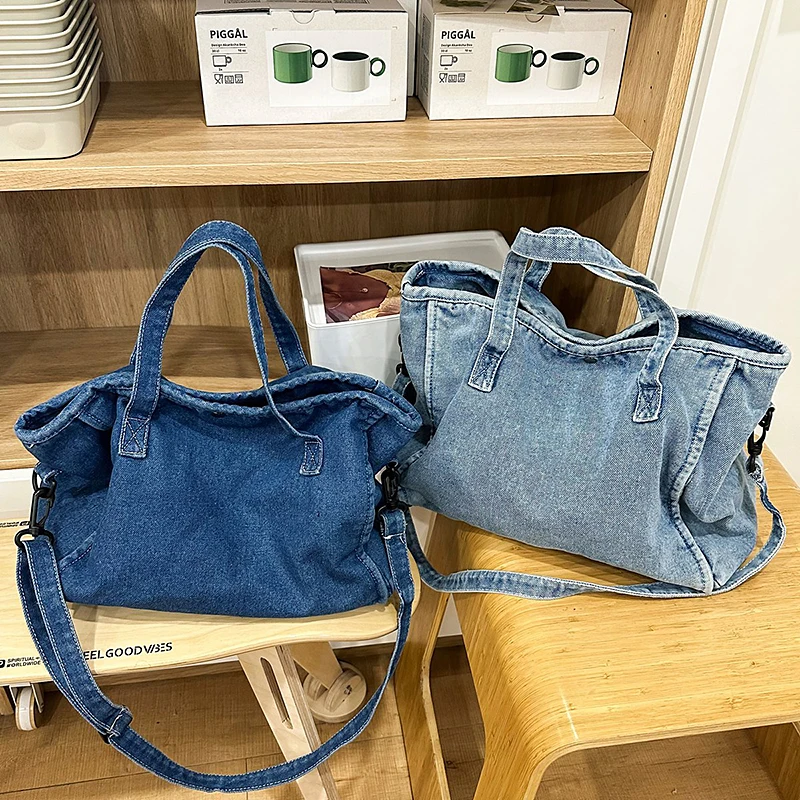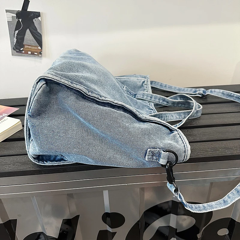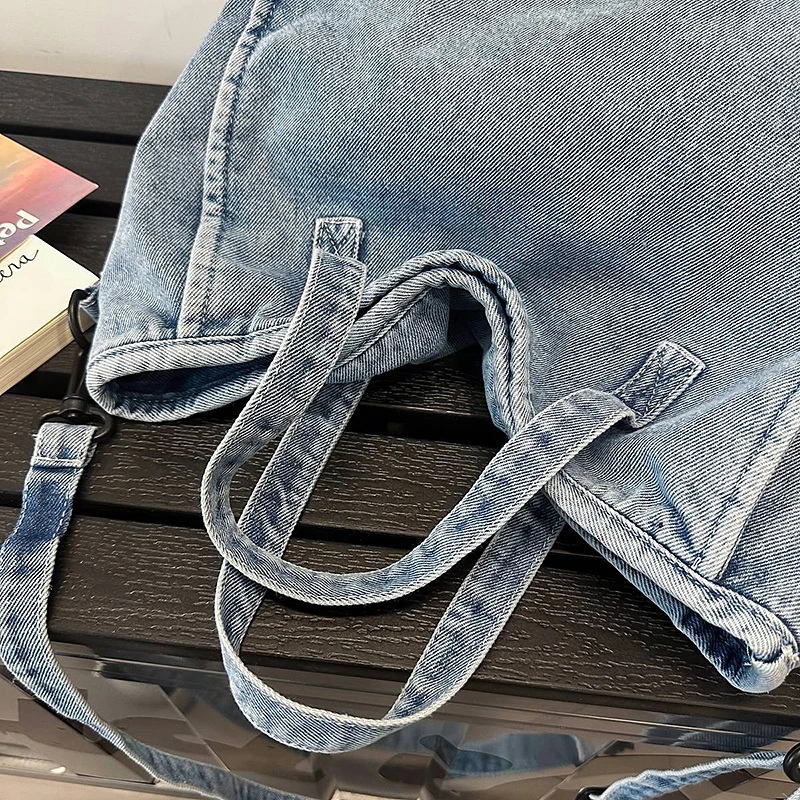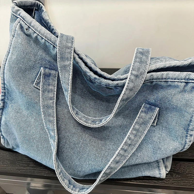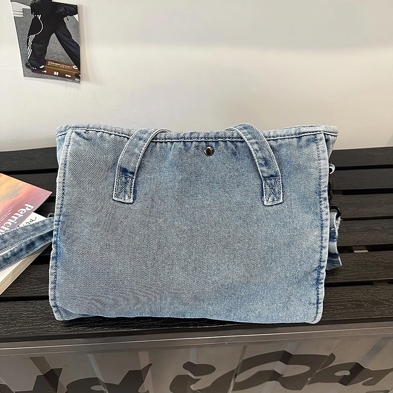 Bolsa Feminina Jeans Azul, Estilo Tote, Mensageiro, Y2K, de Ombro, Ecológica para Estudantes, Estilo Coreano, Sacola de Compras, Bolsa Clássica Feminina.