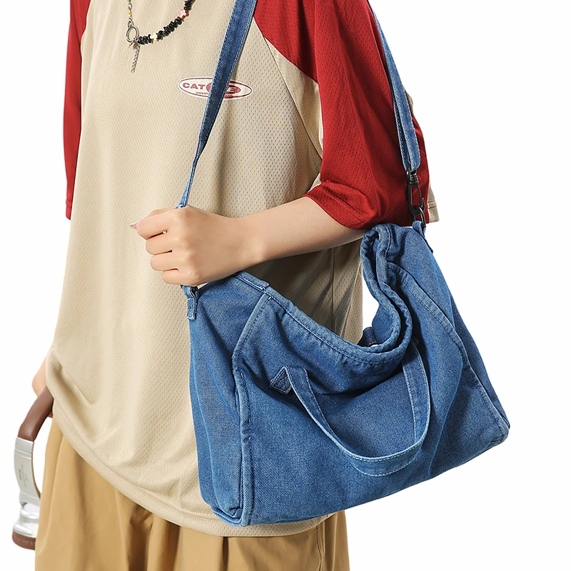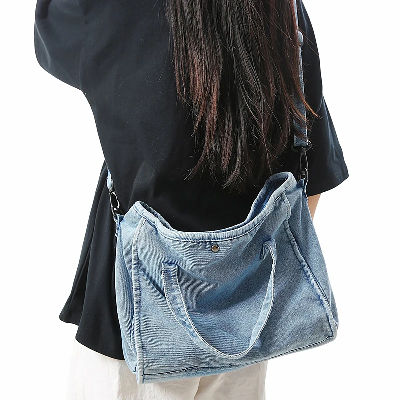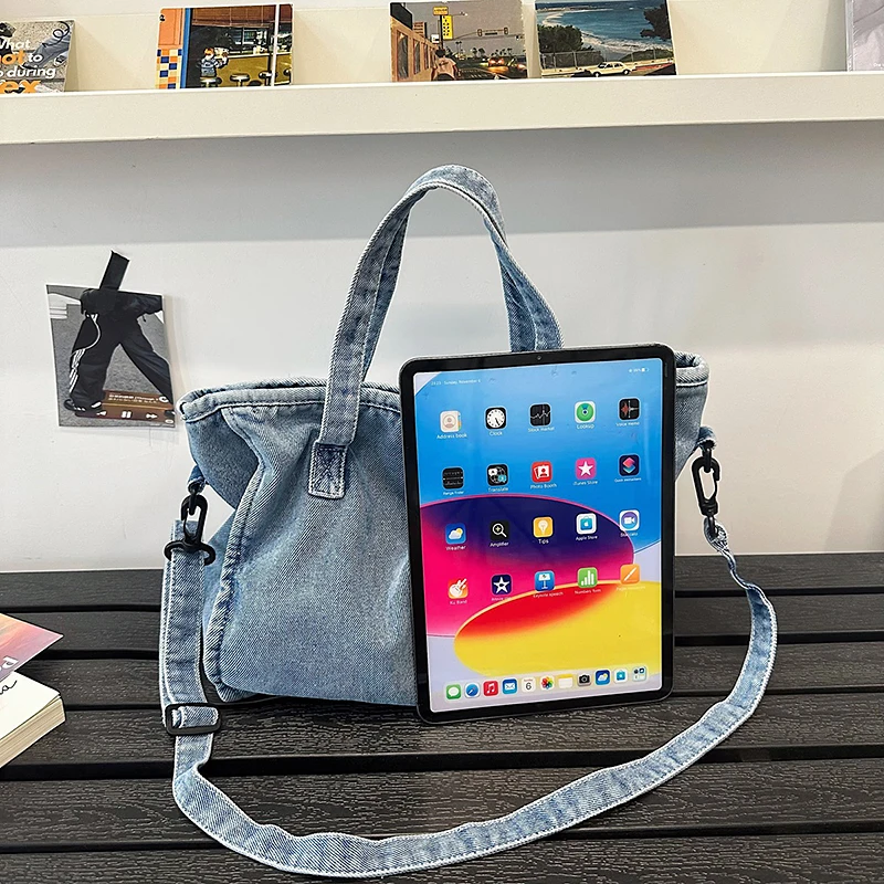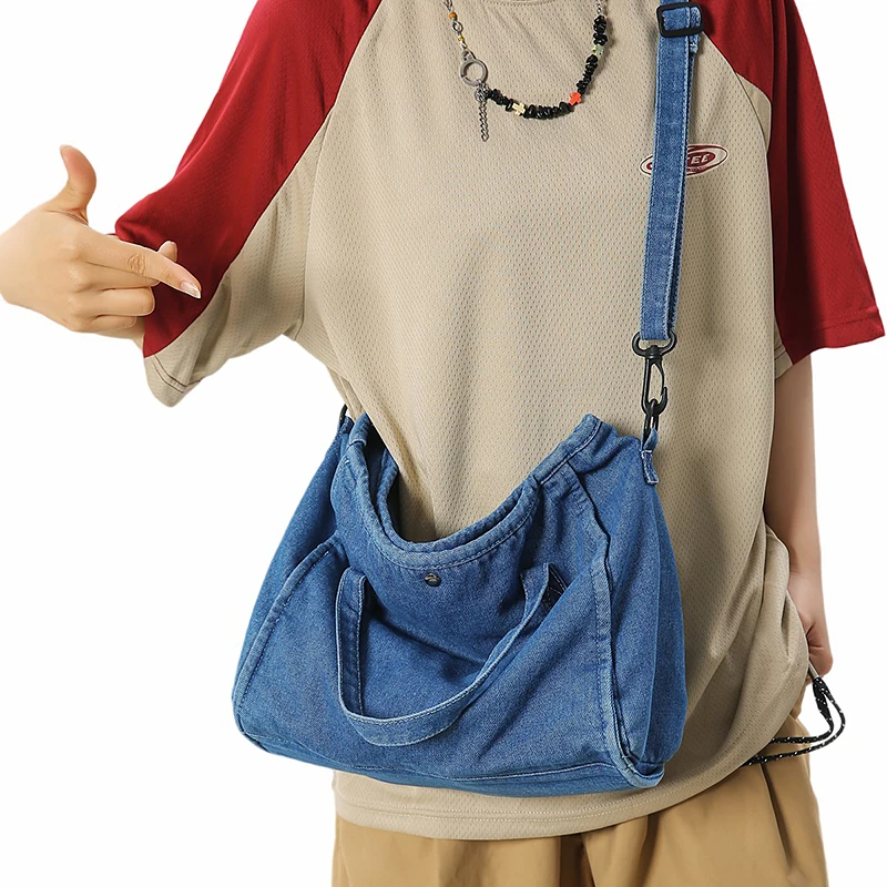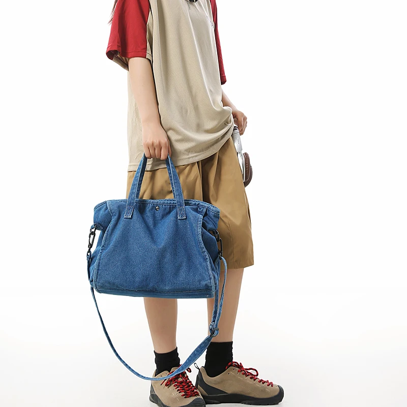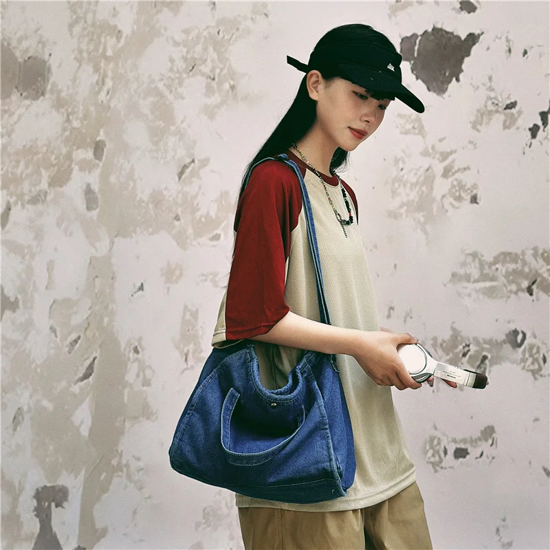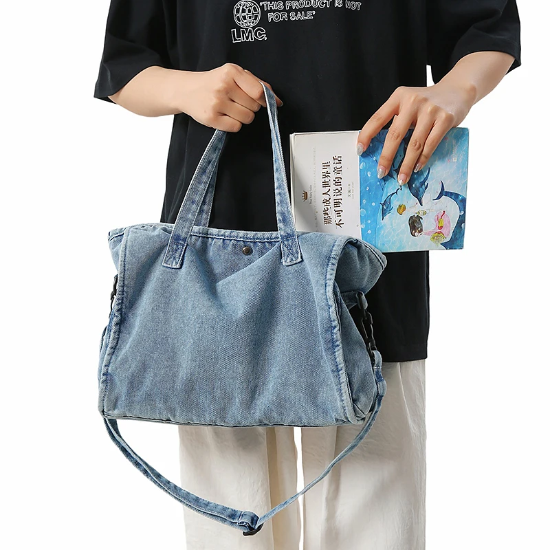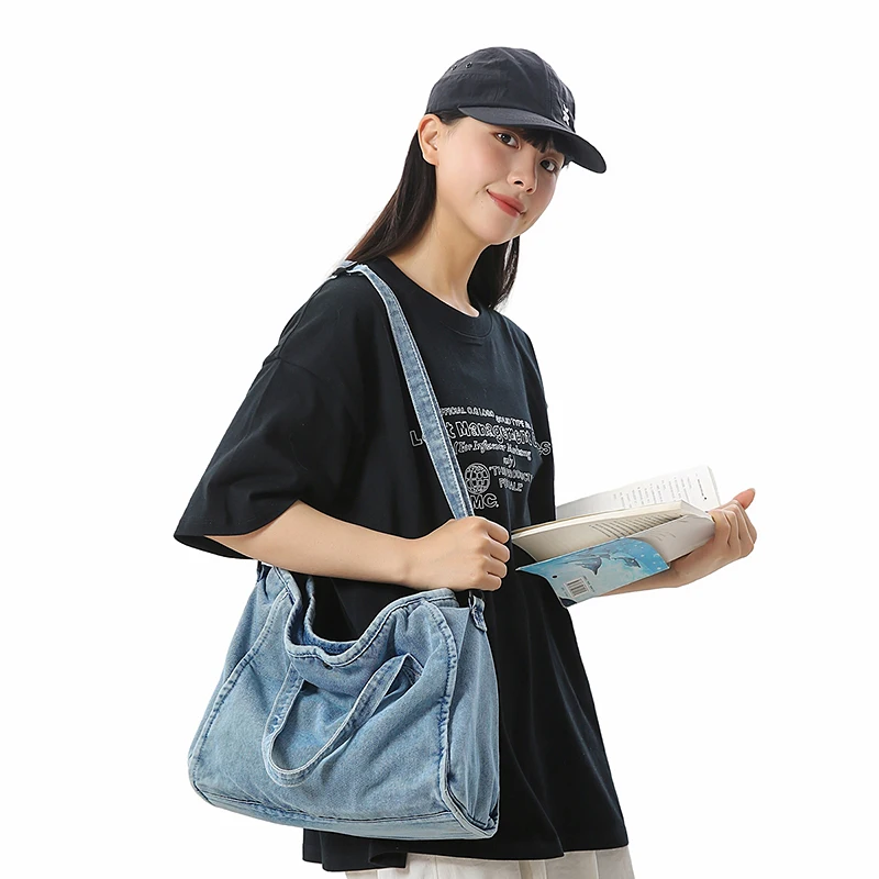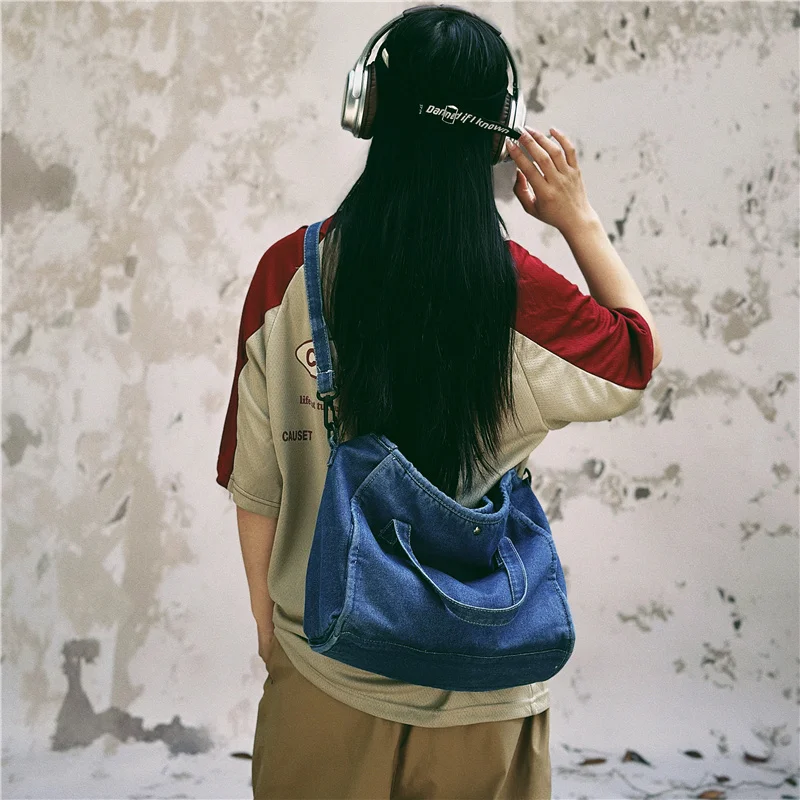 Bolsa Feminina Jeans Azul, Estilo Tote, Mensageiro, Y2K, de Ombro, Ecológica para Estudantes, Estilo Coreano, Sacola de Compras, Bolsa Clássica Feminina.