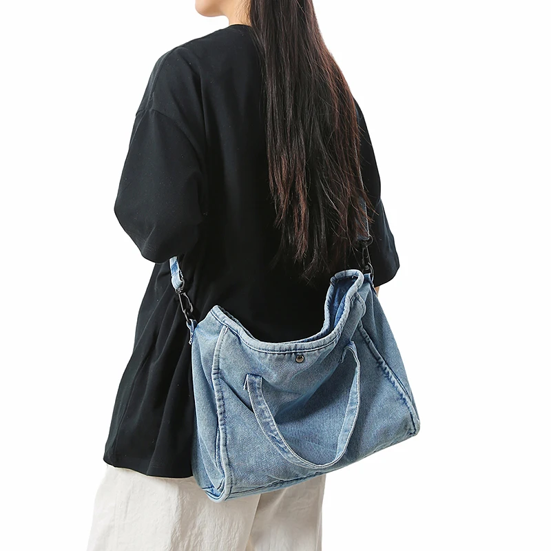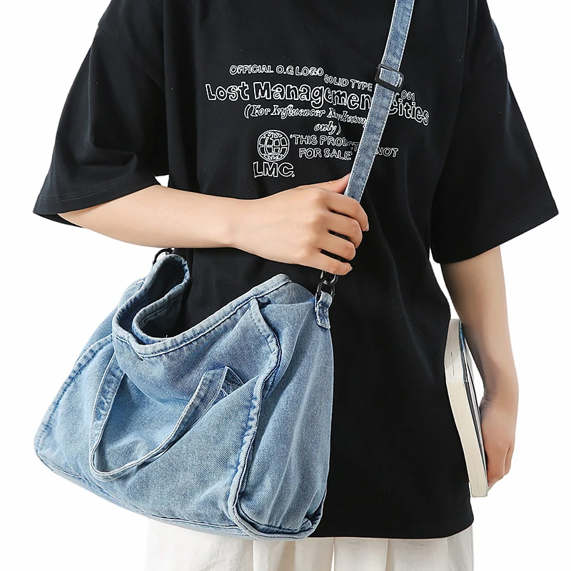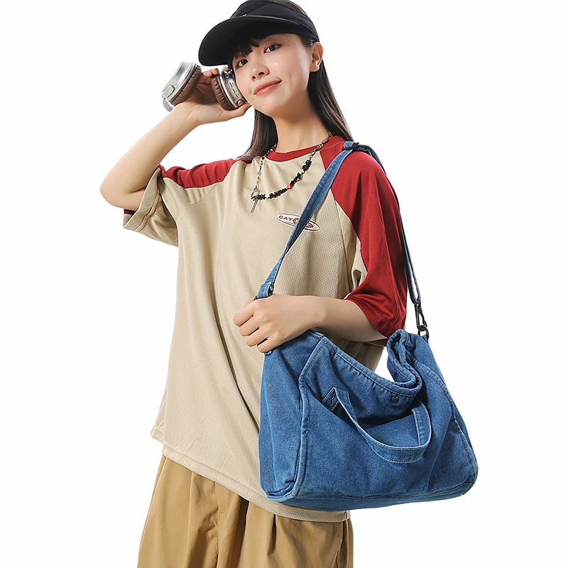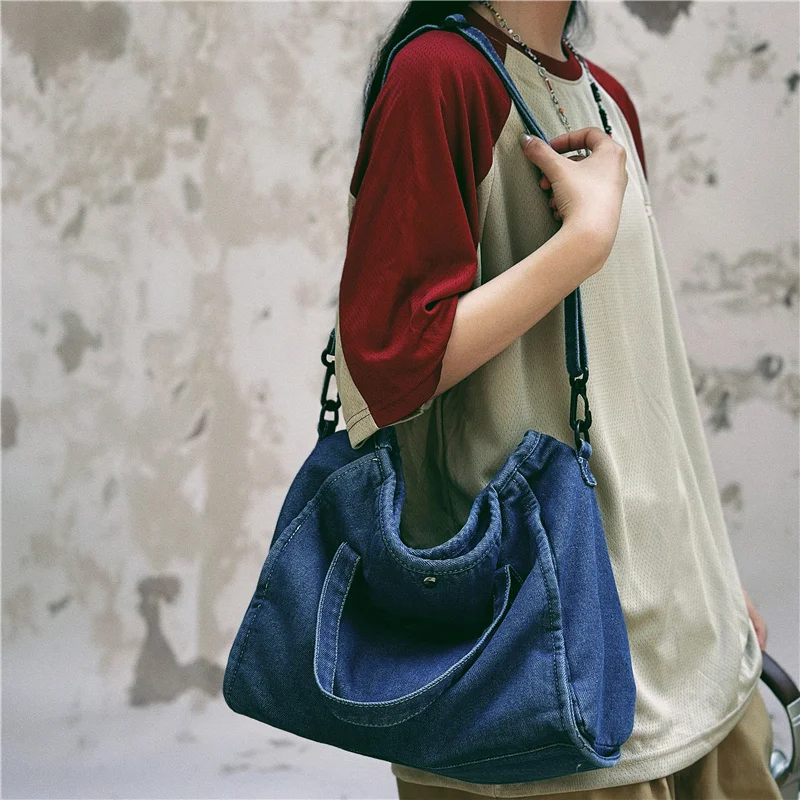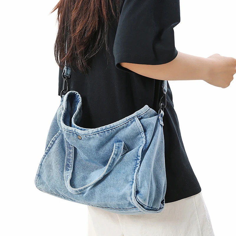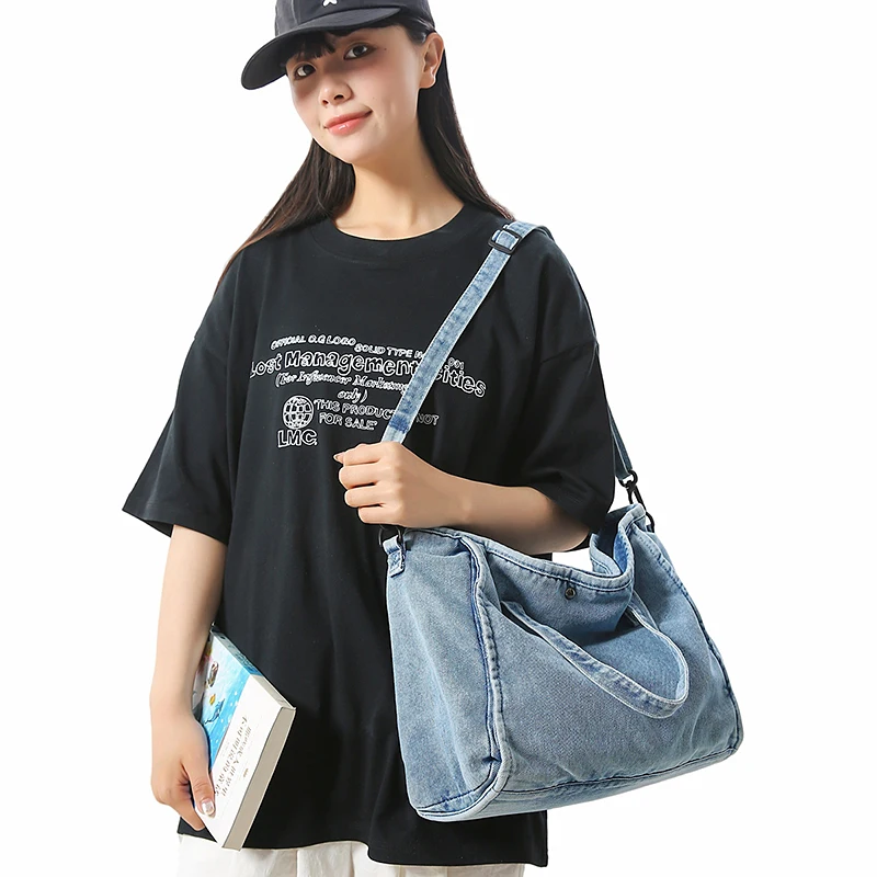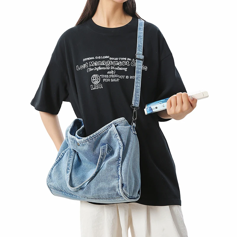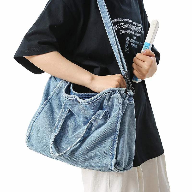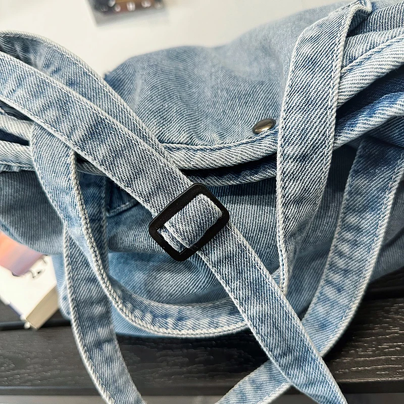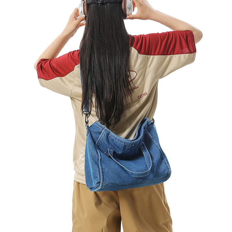 Bolsa Feminina Jeans Azul, Estilo Tote, Mensageiro, Y2K, de Ombro, Ecológica para Estudantes, Estilo Coreano, Sacola de Compras, Bolsa Clássica Feminina.