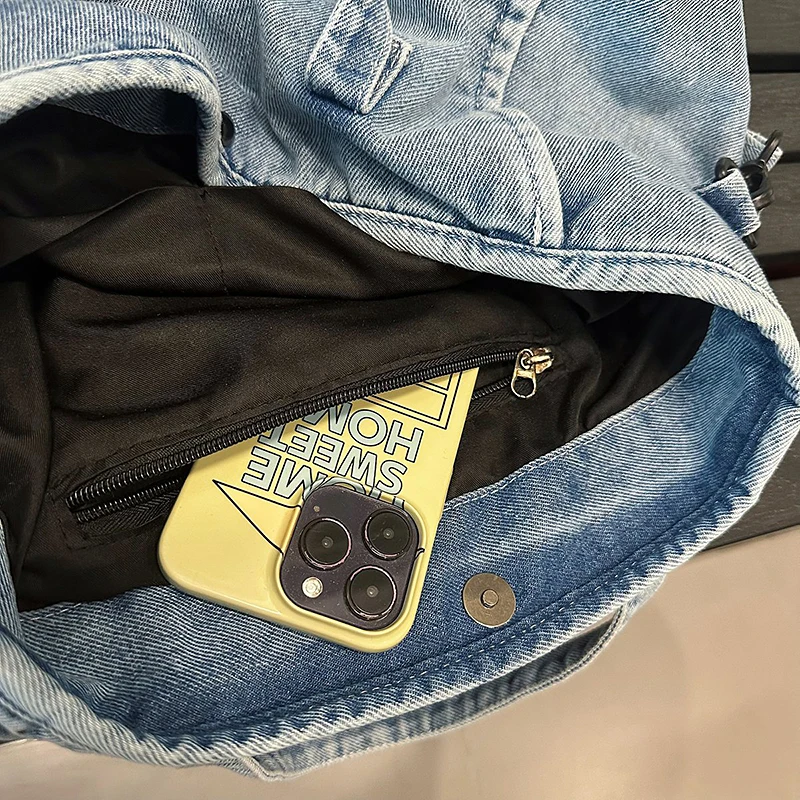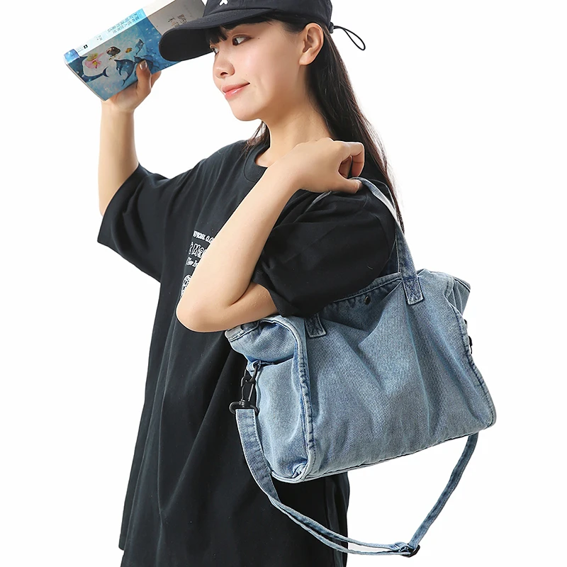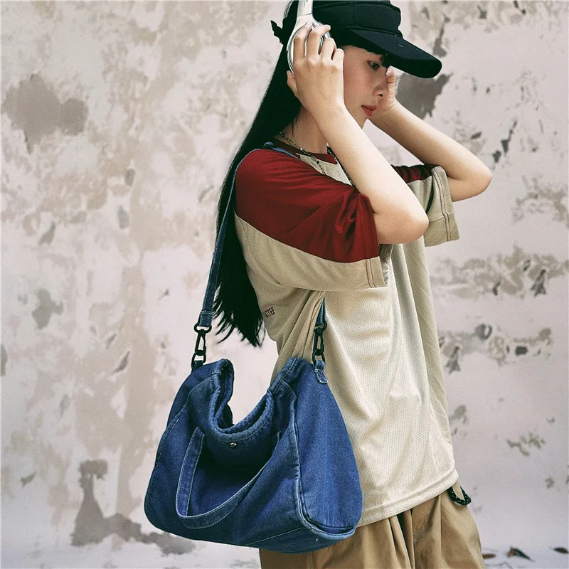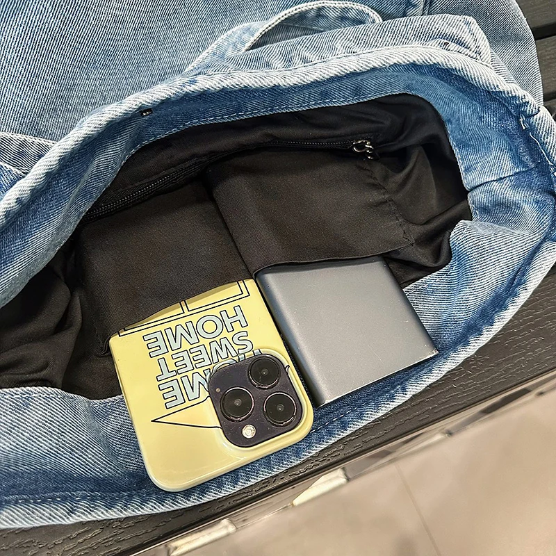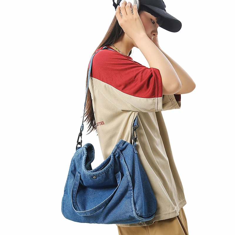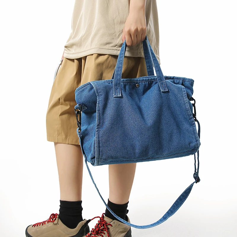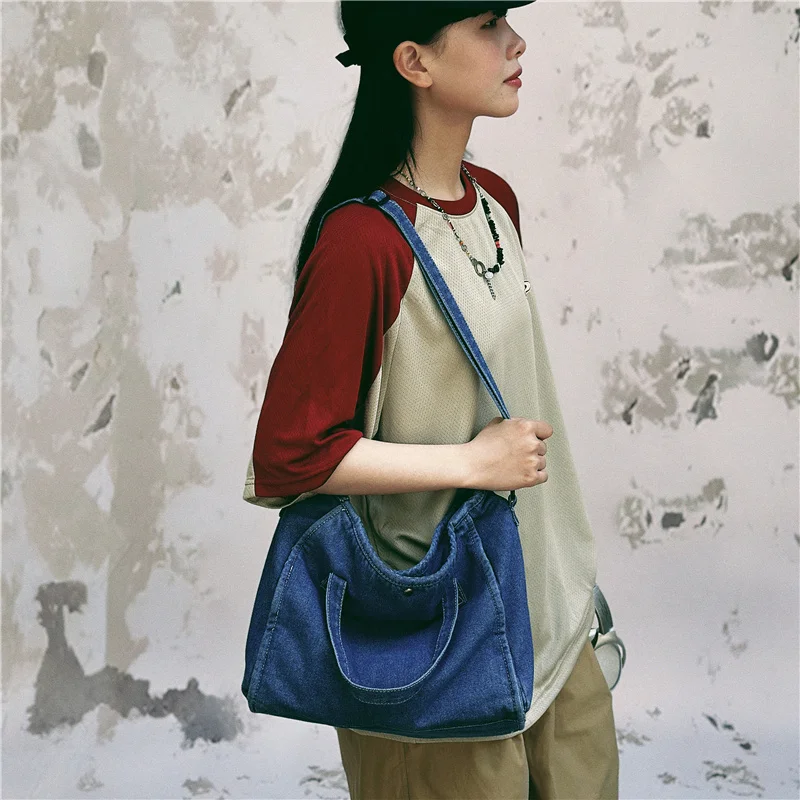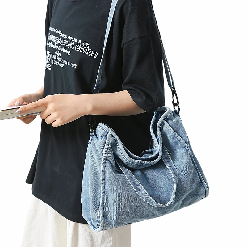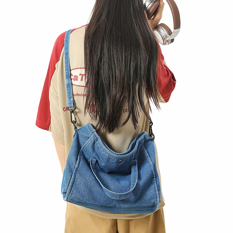 Bolsa Feminina Jeans Azul, Estilo Tote, Mensageiro, Y2K, de Ombro, Ecológica para Estudantes, Estilo Coreano, Sacola de Compras, Bolsa Clássica Feminina.