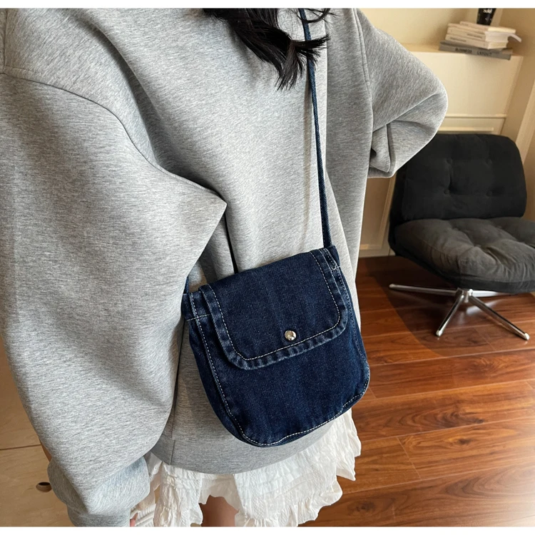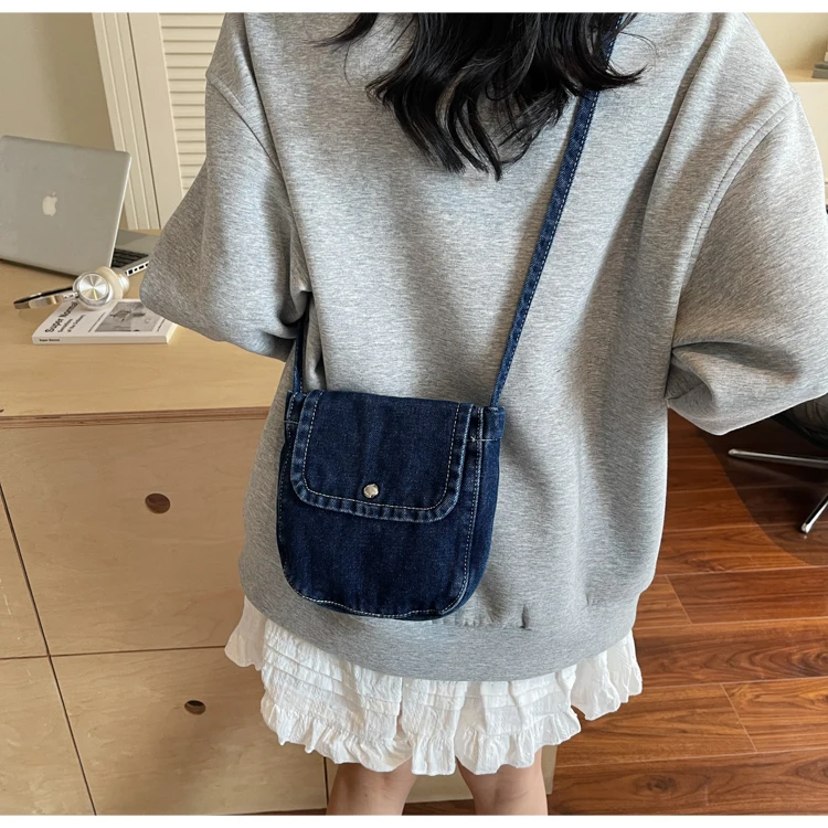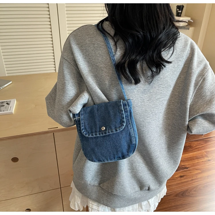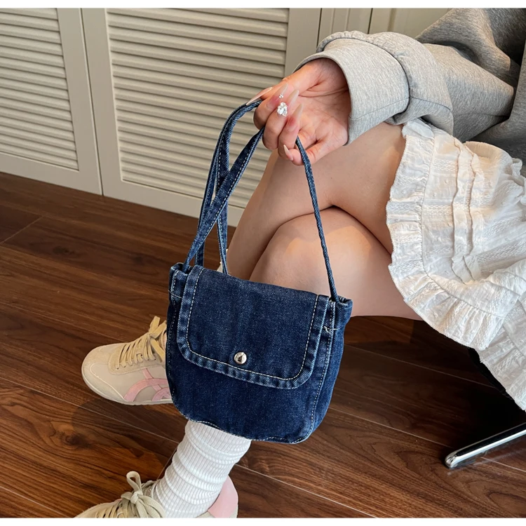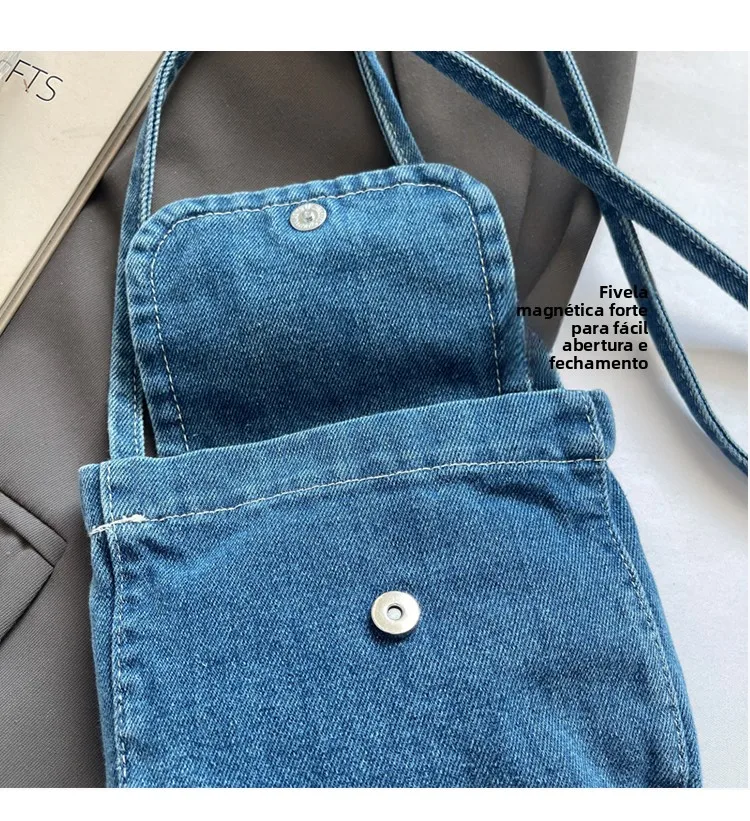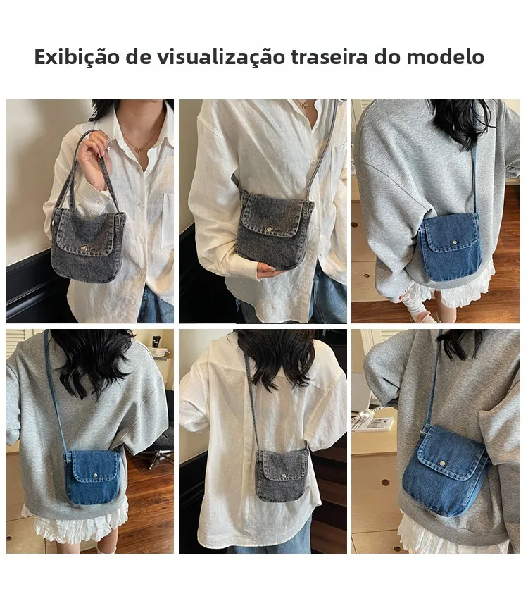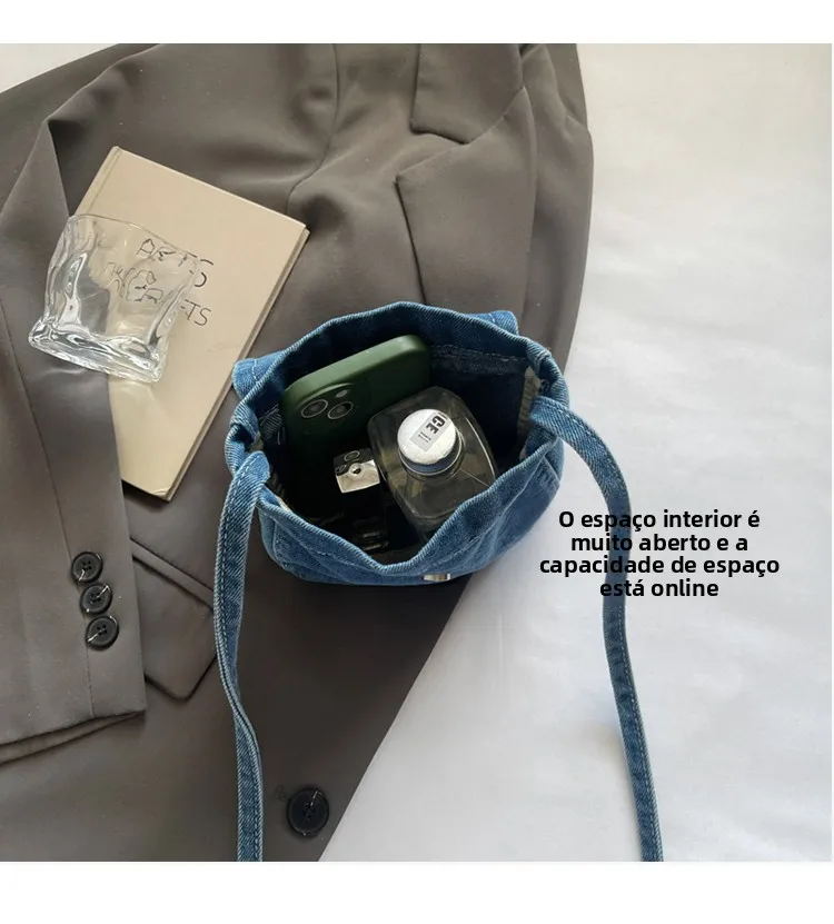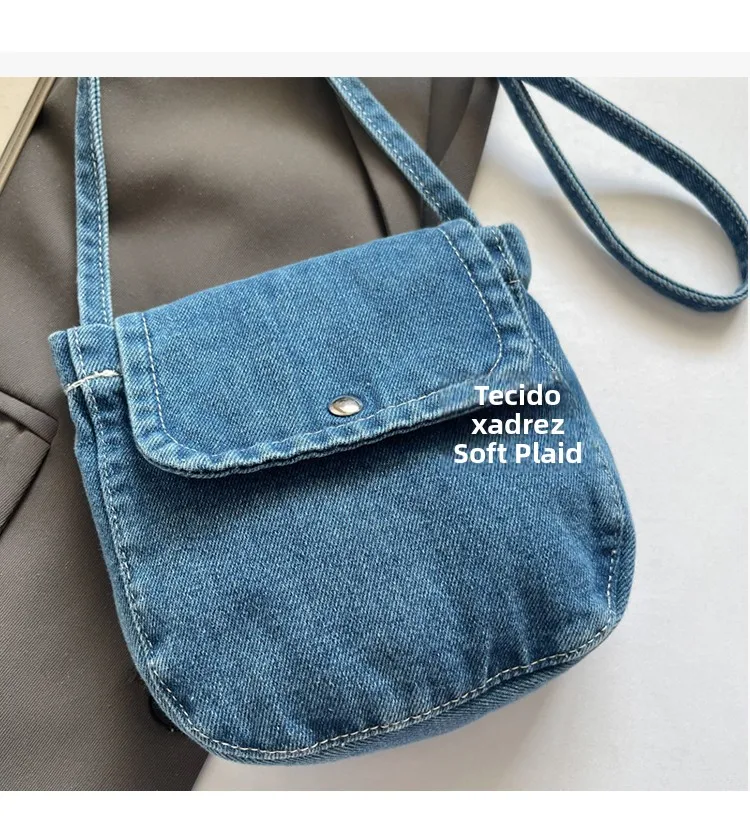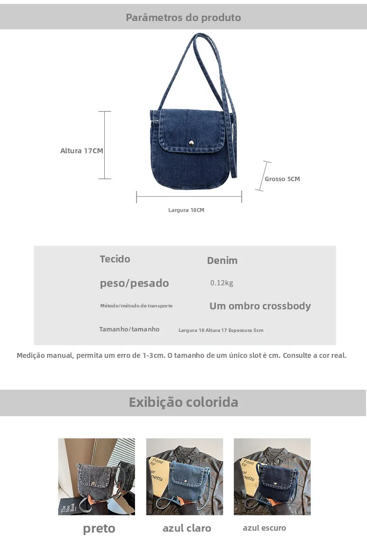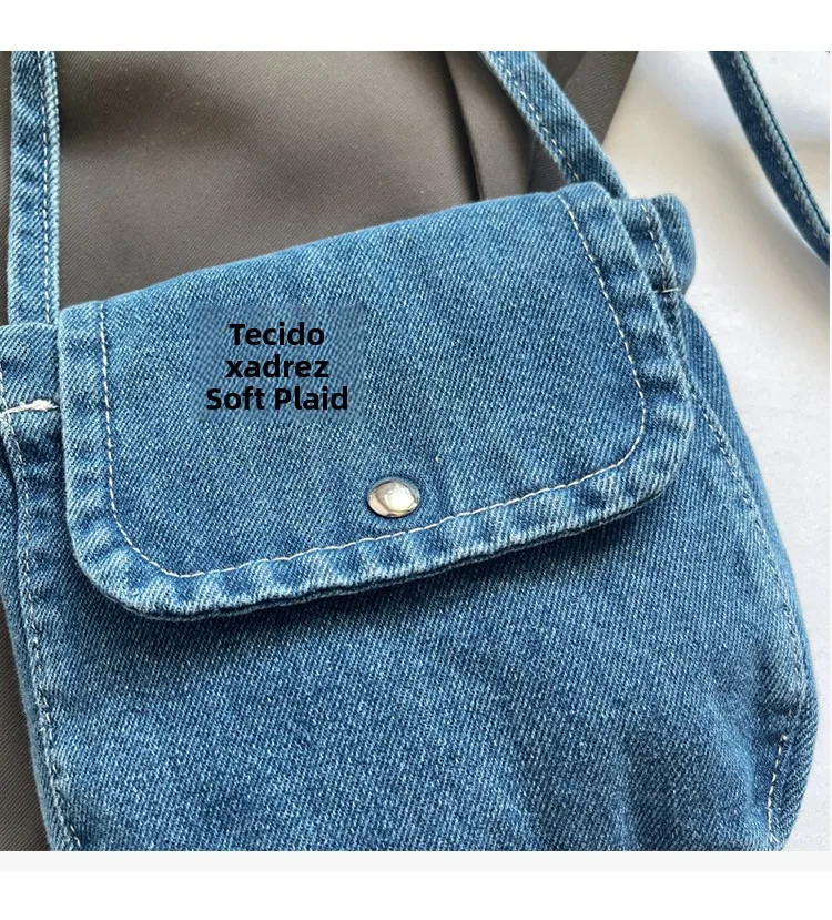 Feito de lona de jeans, este saco é durável e resistente, ideal para uso diário.