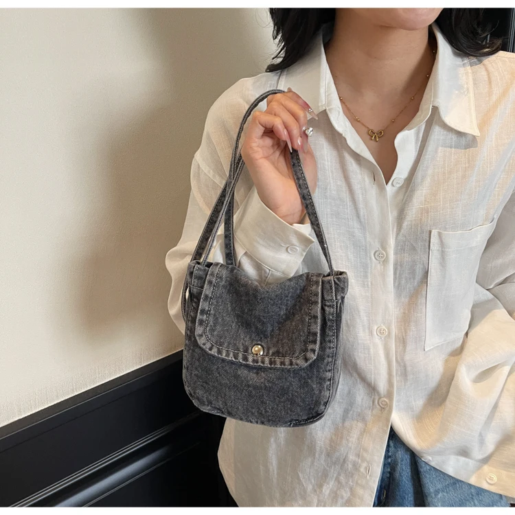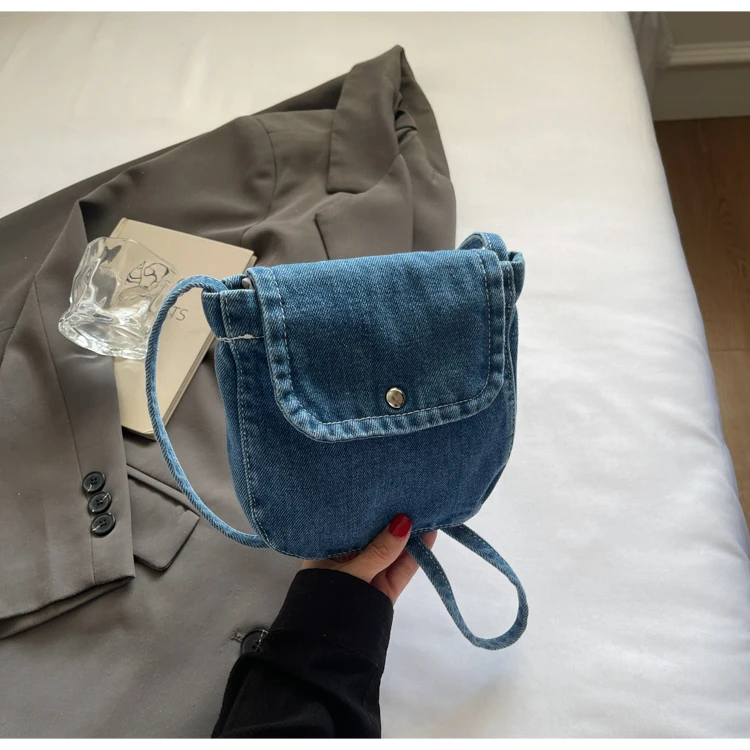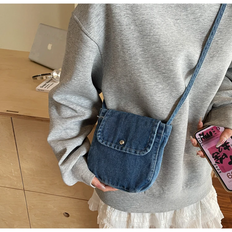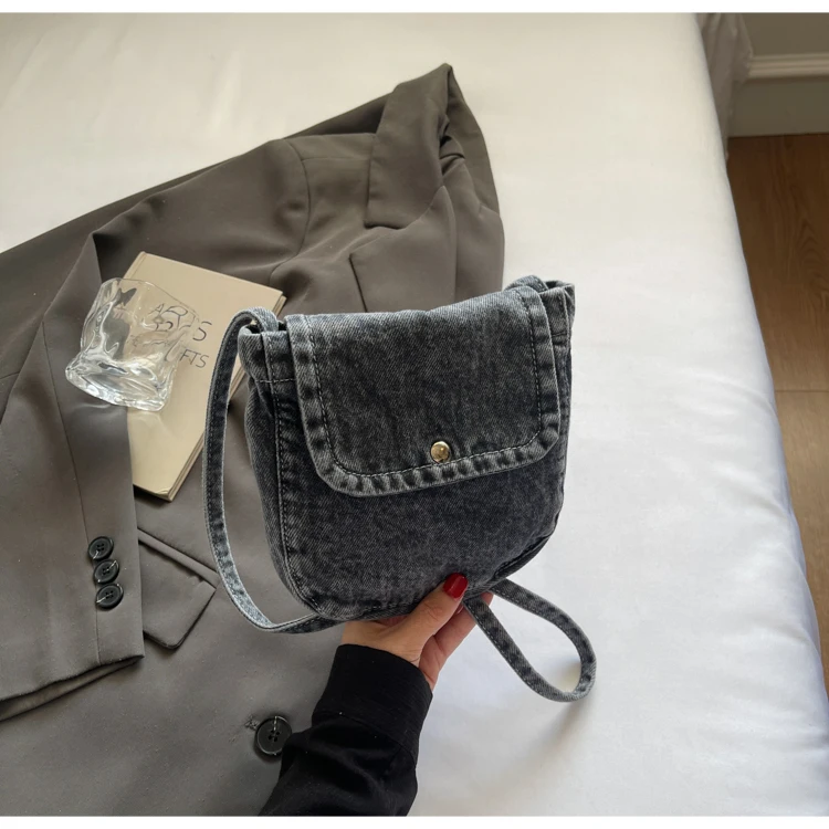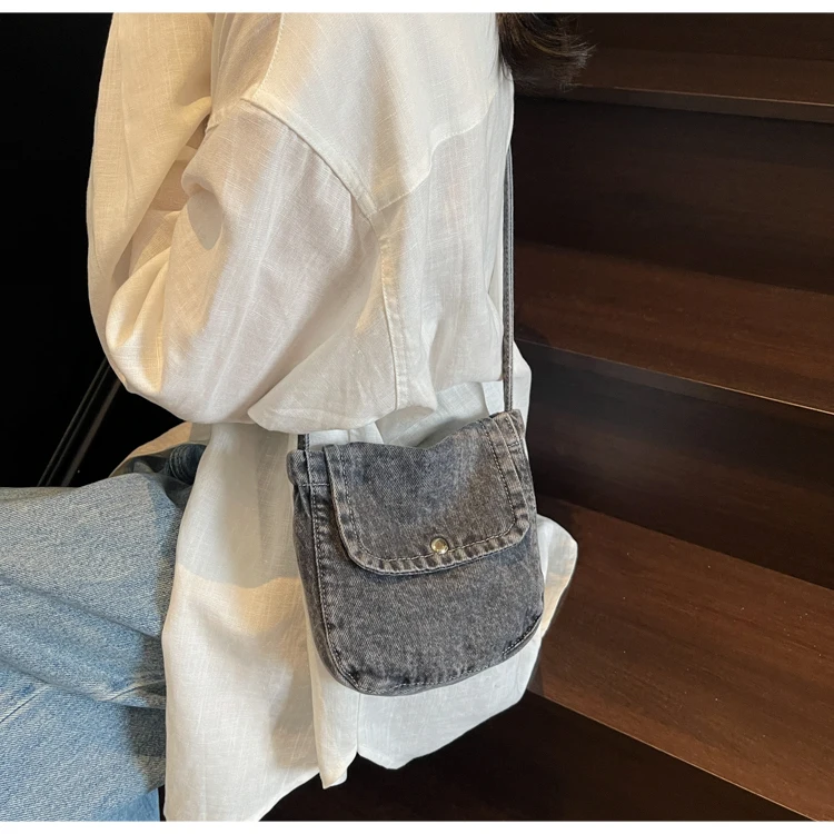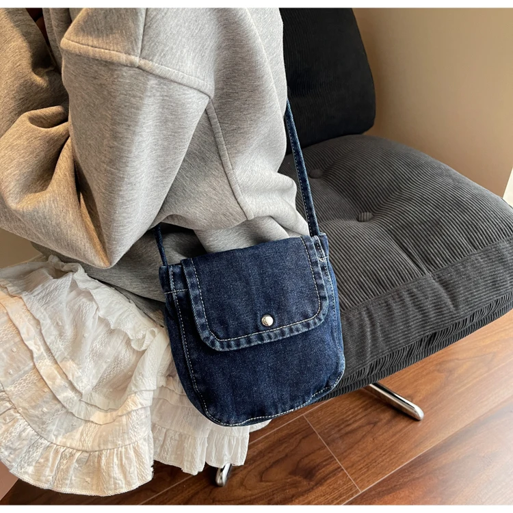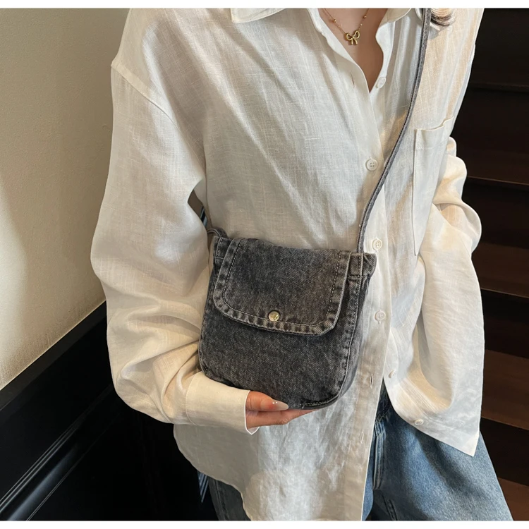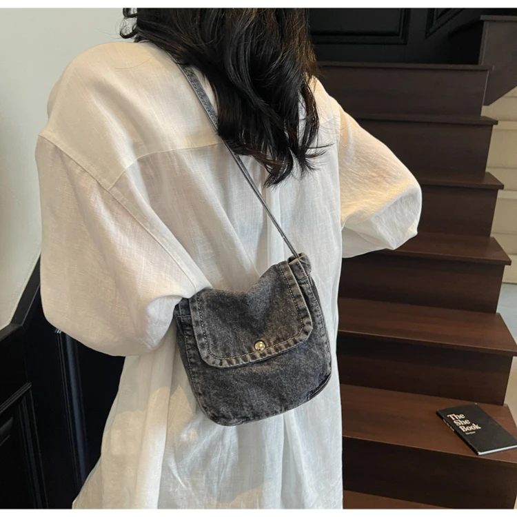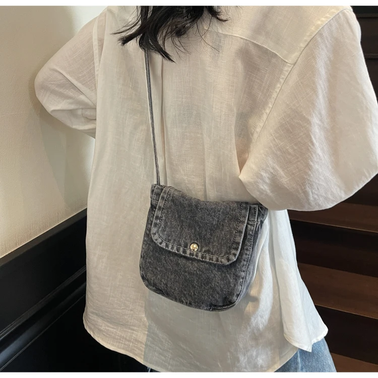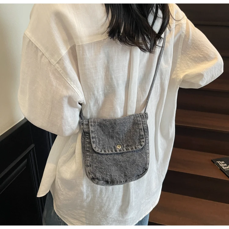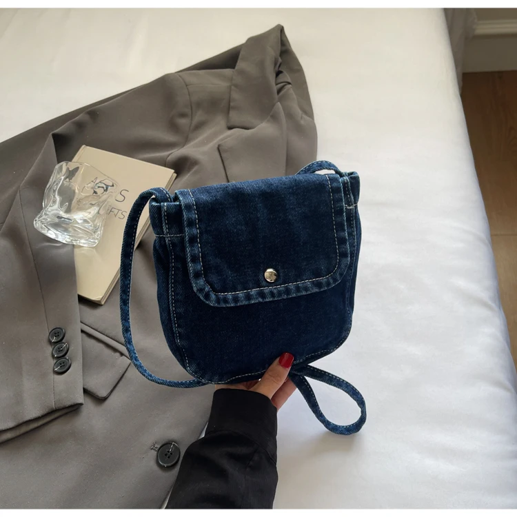 Feito de lona de jeans, este saco é durável e resistente, ideal para uso diário.