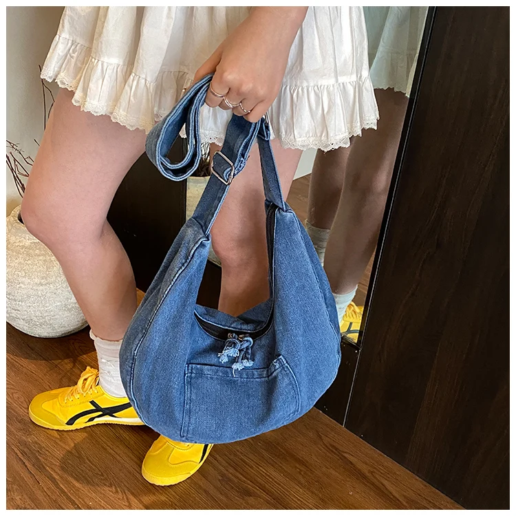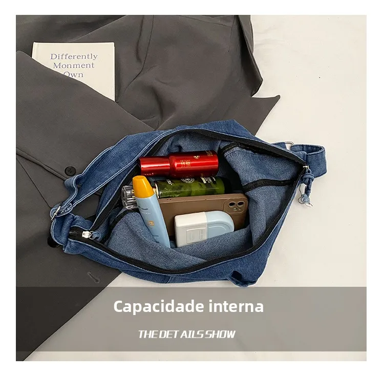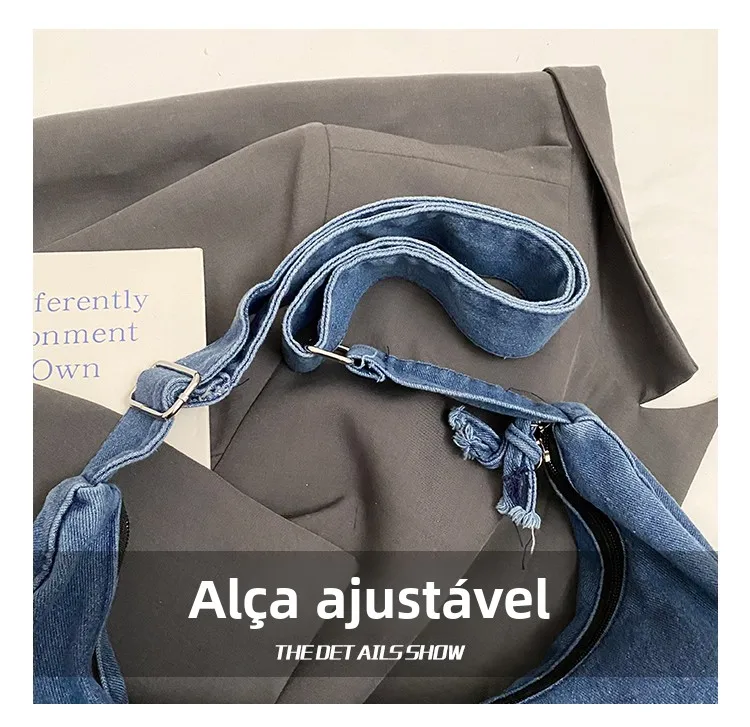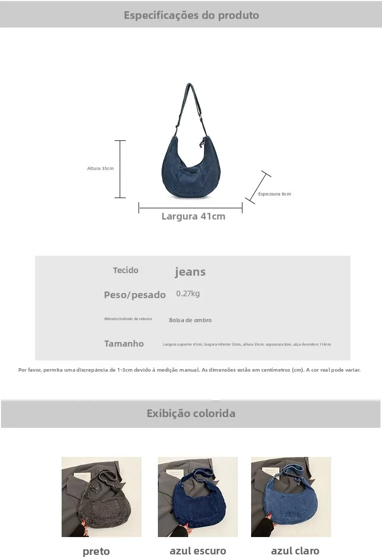 Traga um toque despojado e autêntico ao seu look com a nossa Bolsa Jeans Denim. Perfeita para mulheres modernas que adoram a versatilidade do tecido mais clássico do mundo. Combinando com praticamente qualquer peça do seu guarda-roupa, ela oferece um visual jovem, resistente e super prático para todas as ocasiões.