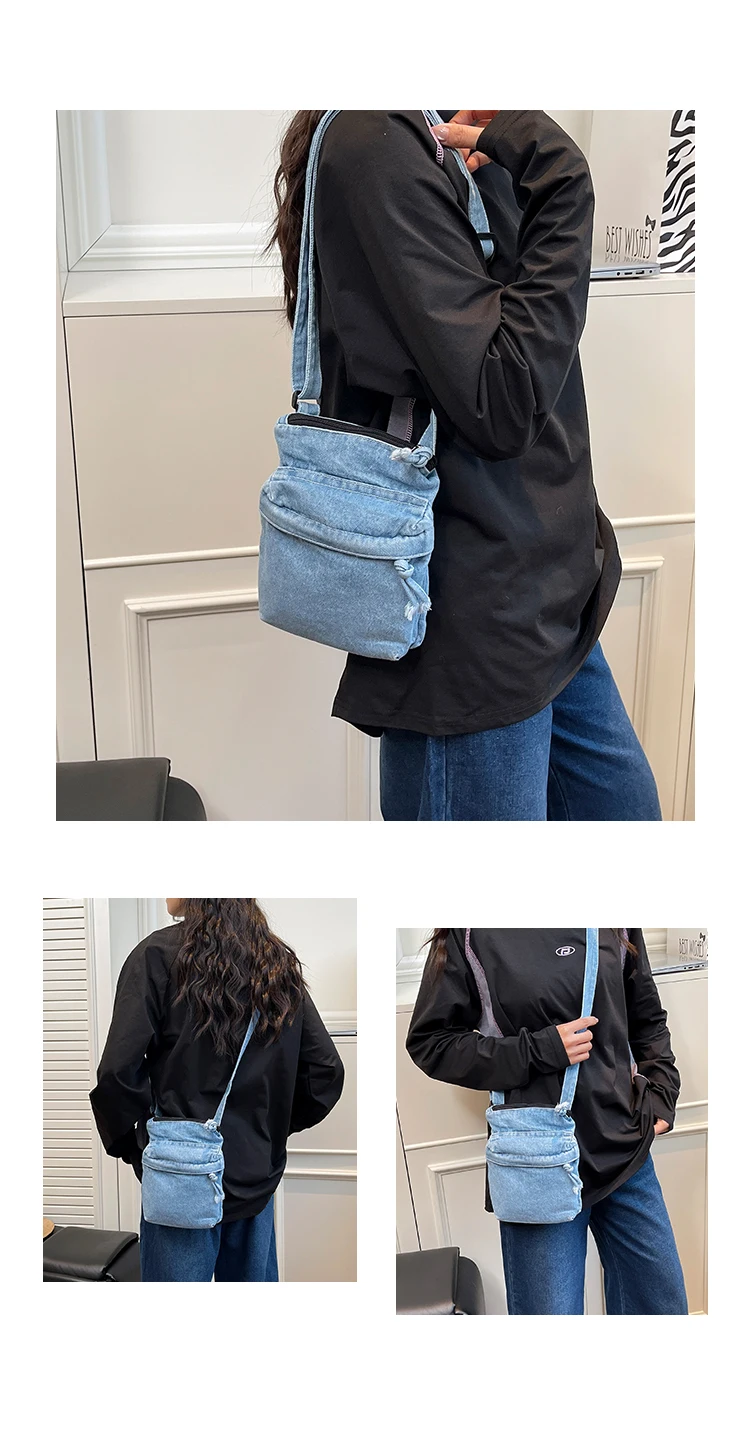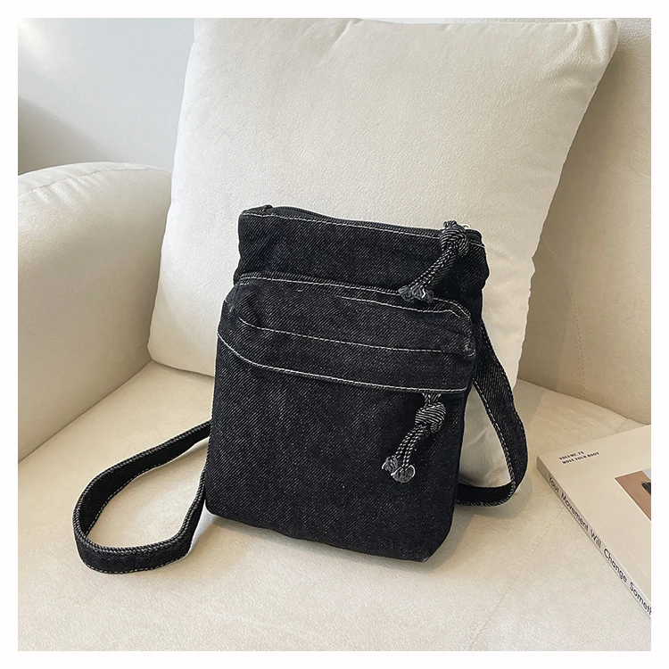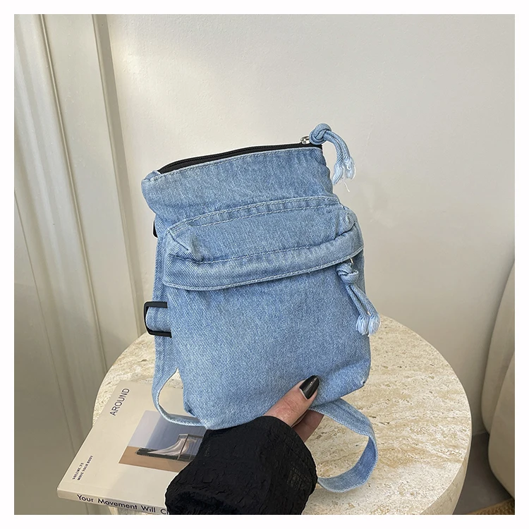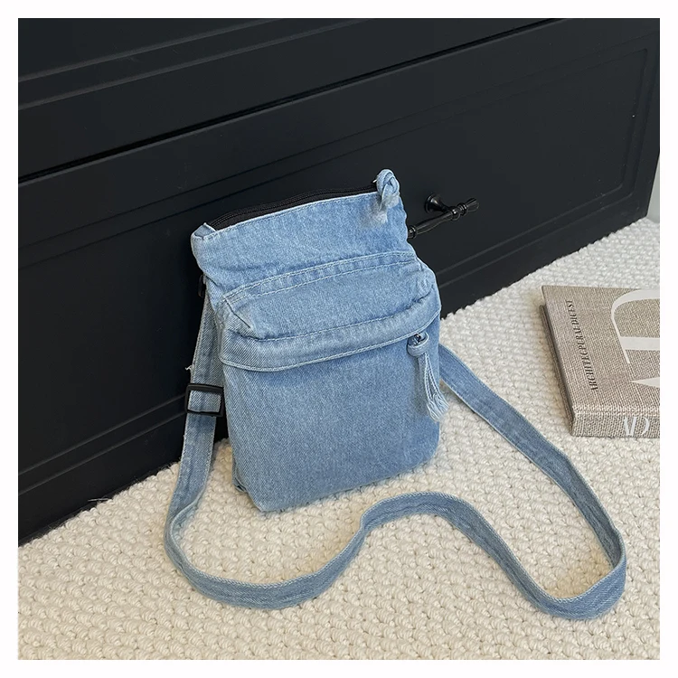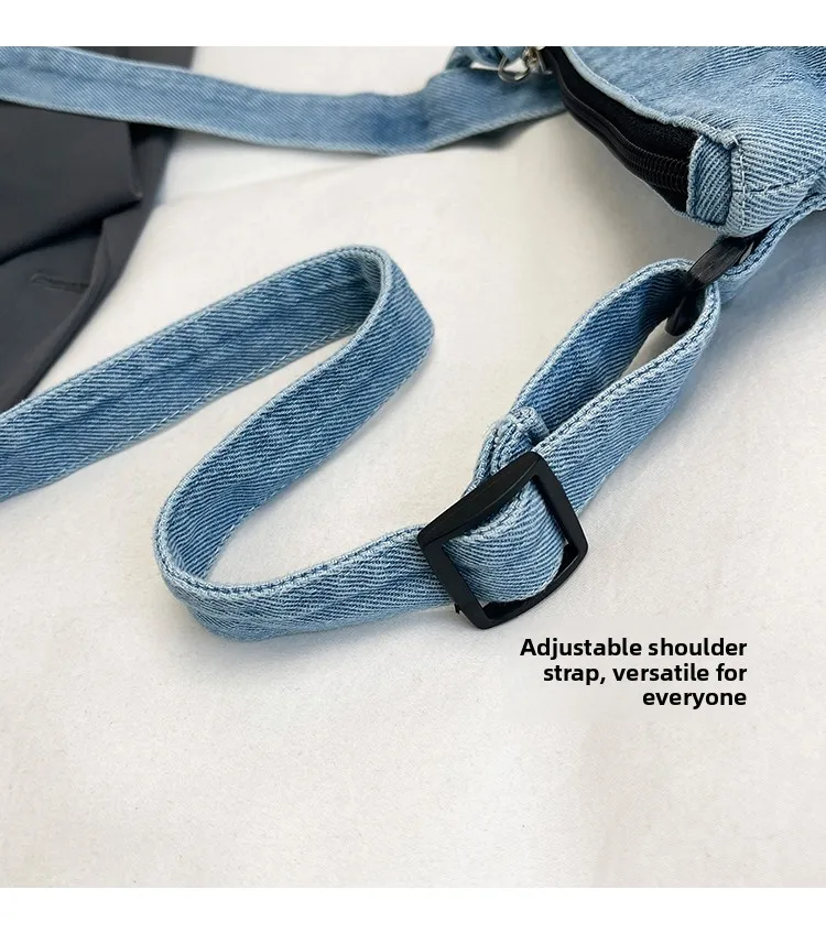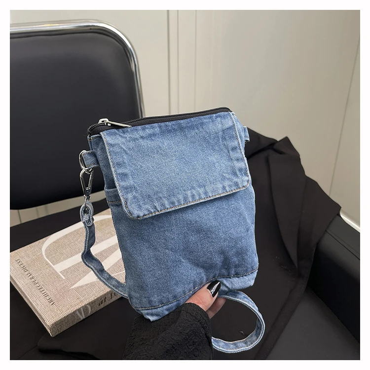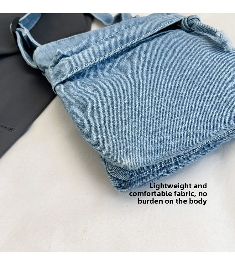 Feito de tecido de jeans resistente, este saco é durável e pode suportar o uso diário.