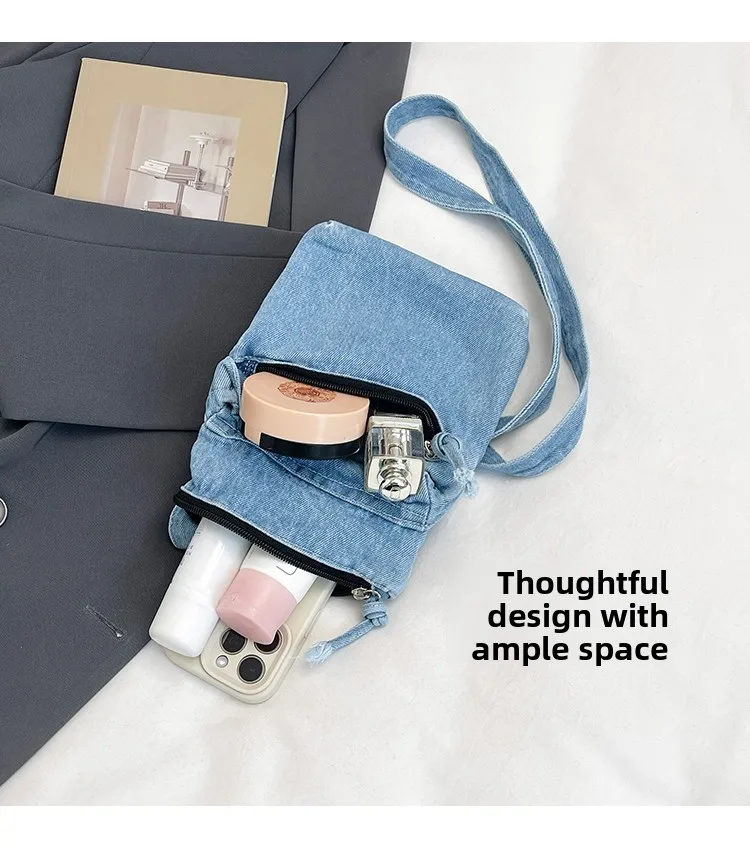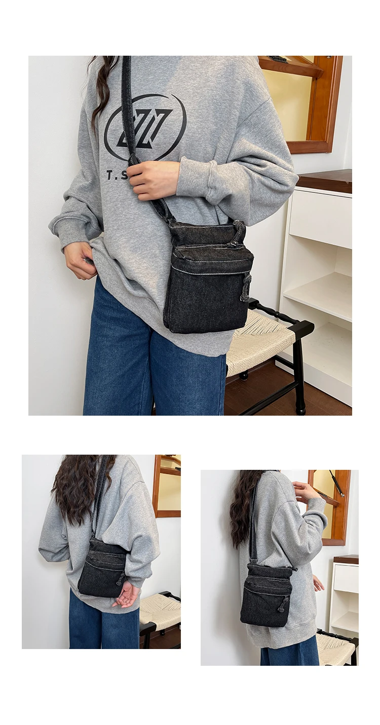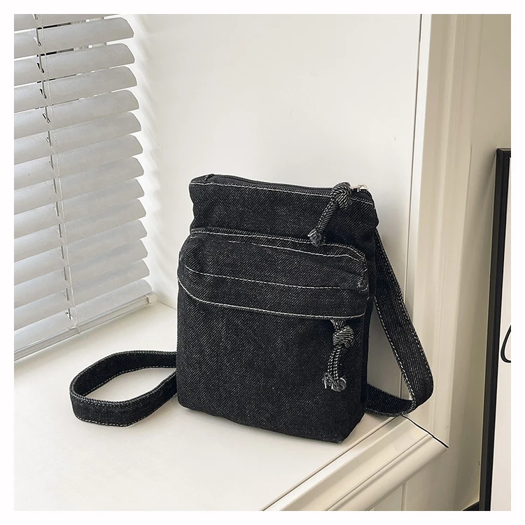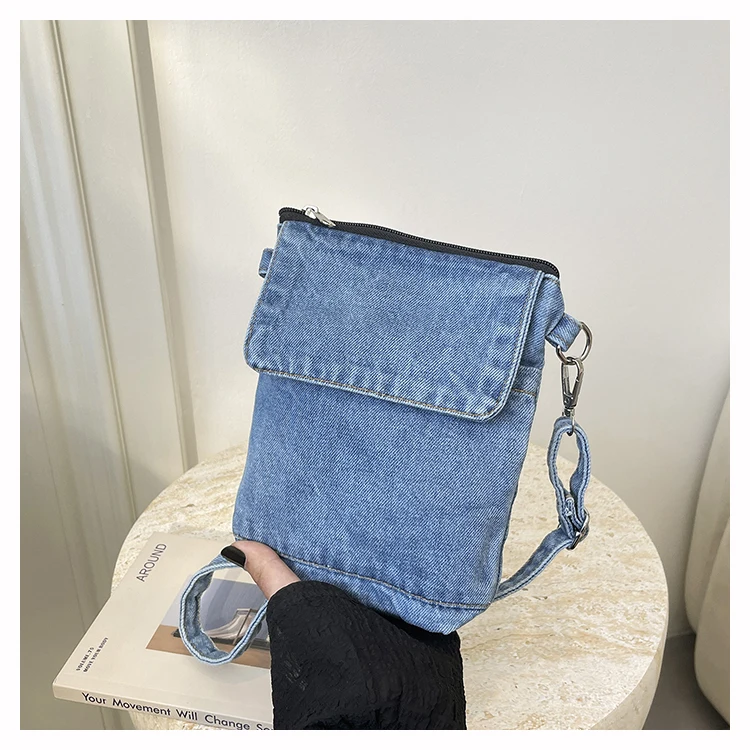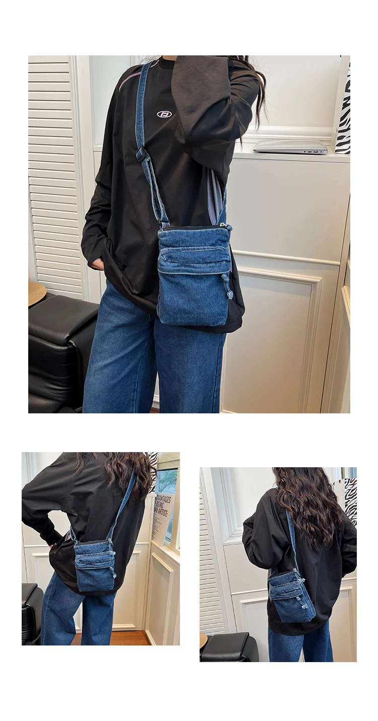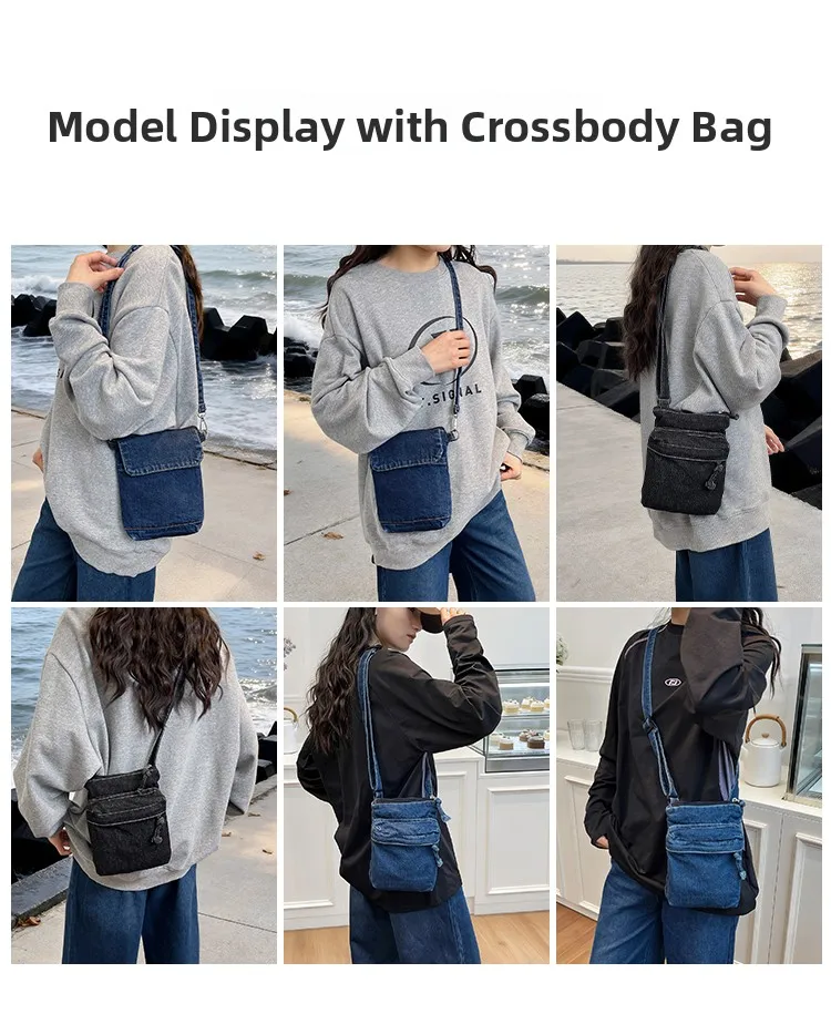 Feito de tecido de jeans resistente, este saco é durável e pode suportar o uso diário.
