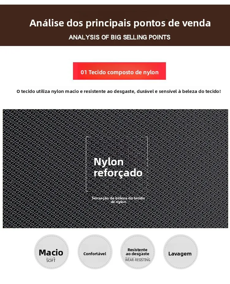 Feito de tecido Oxford impermeável, este saco é resistente à água, ideal para uso diário.
