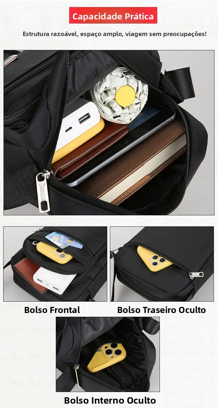 Com múltiplos bolsos, este saco é perfeito para organizar seus itens essenciais, seja para negócios ou lazer.