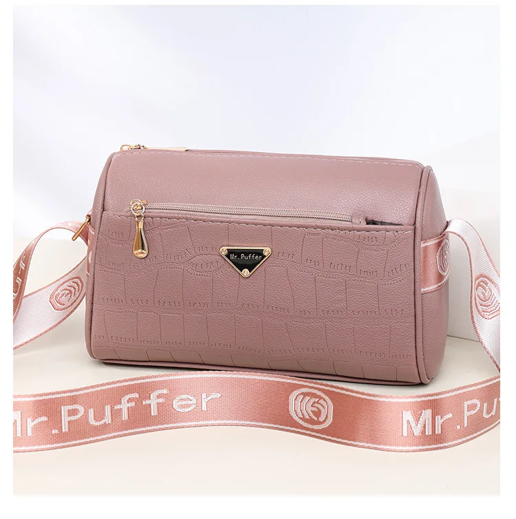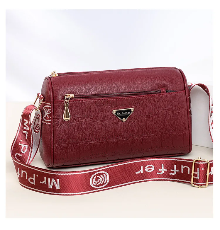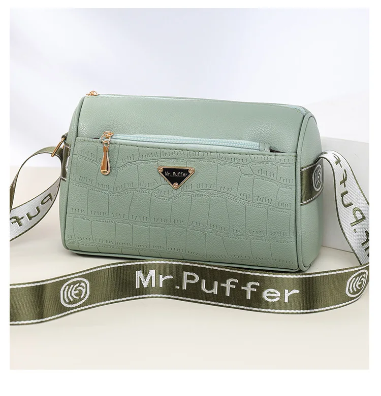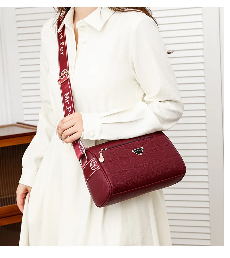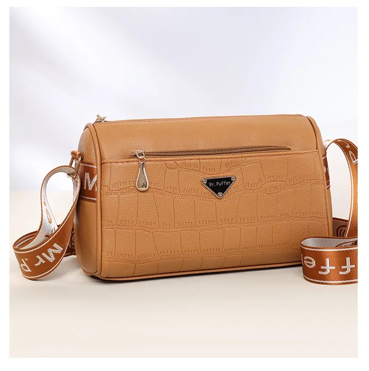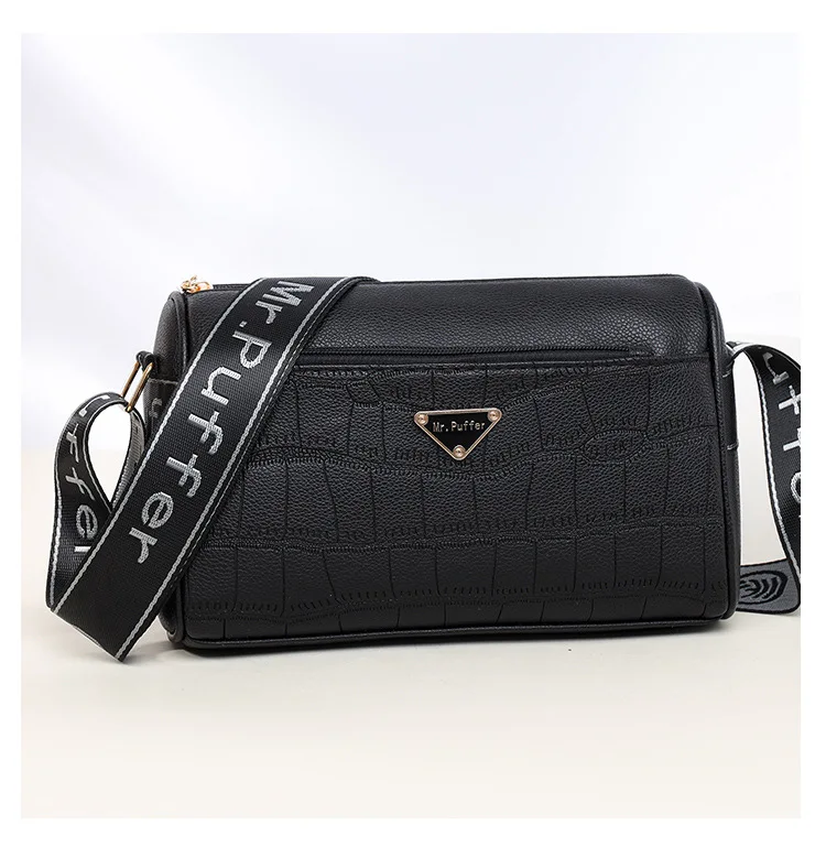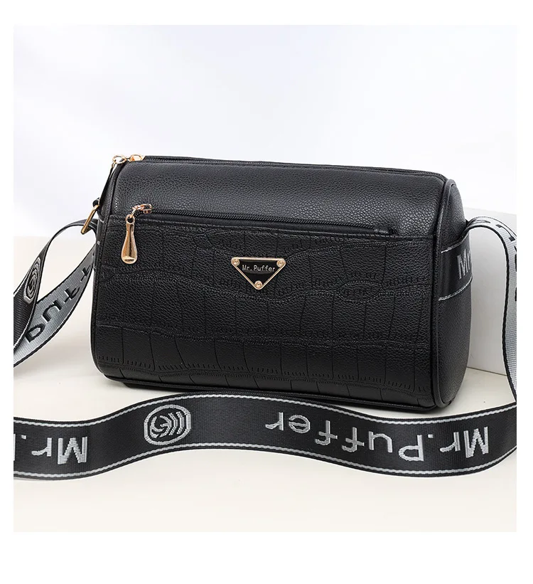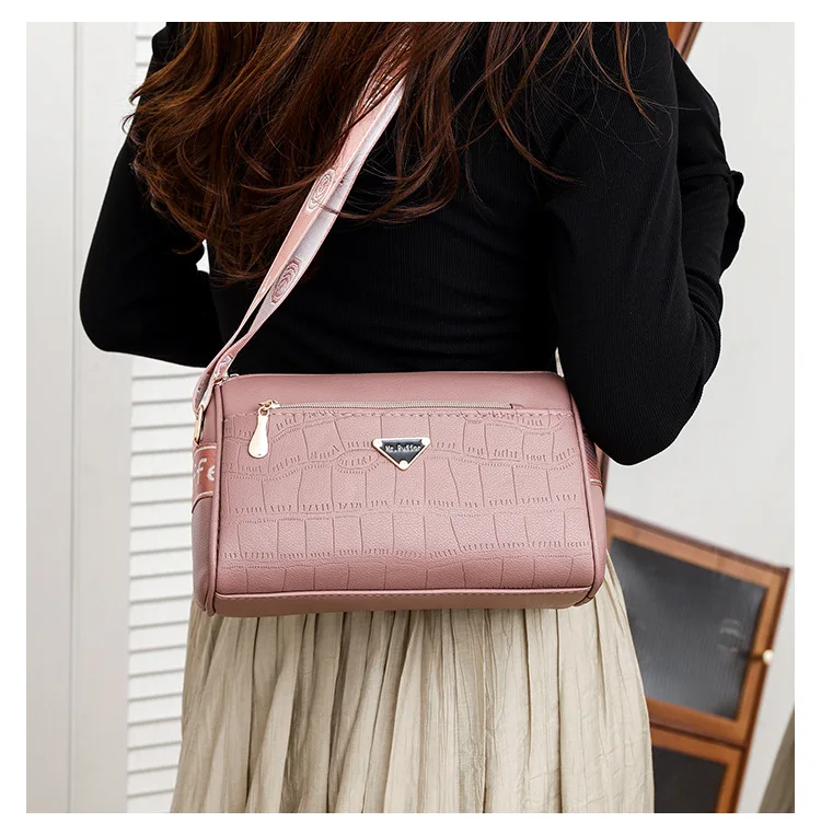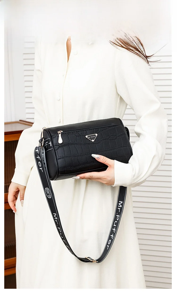 A bolsa incorpora elementos da moda como linhas de costura, padrões xadrez, textura de pele de crocodilo e designs em relevo, adicionando um toque de sofisticação ao seu visual.