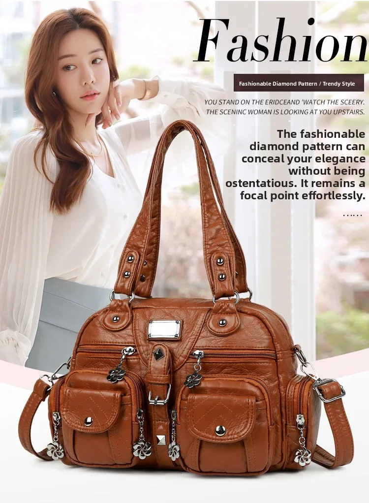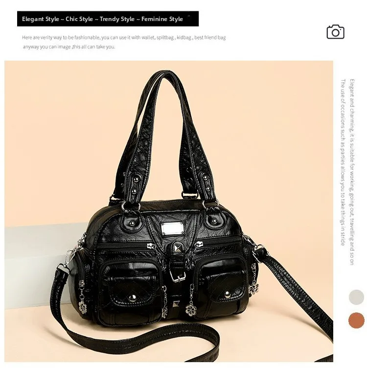 Com três alças, esta bolsa pode ser usada como crossbody, ombro ou bolsa de mão, oferecendo versatilidade.