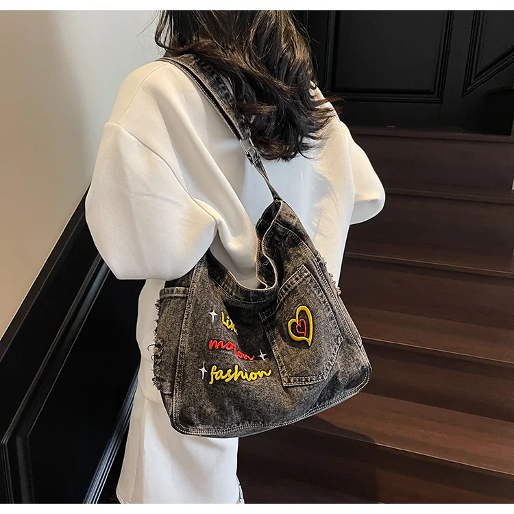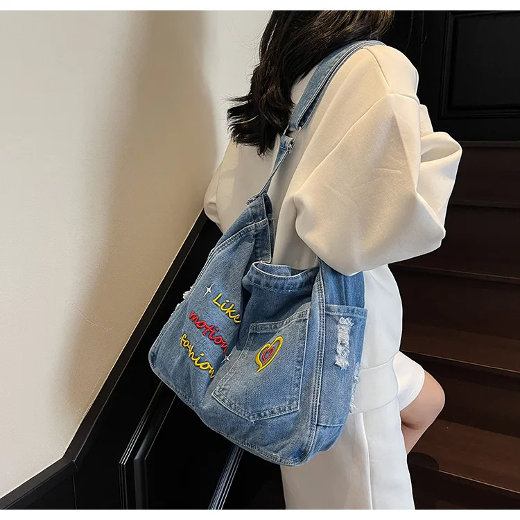 Traga um toque despojado e autêntico ao seu look com a nossa Bolsa Jeans Denim. Perfeita para mulheres modernas que adoram a versatilidade do tecido mais clássico do mundo. Combinando com praticamente qualquer peça do seu guarda-roupa, ela oferece um visual jovem, resistente e super prático para todas as ocasiões.