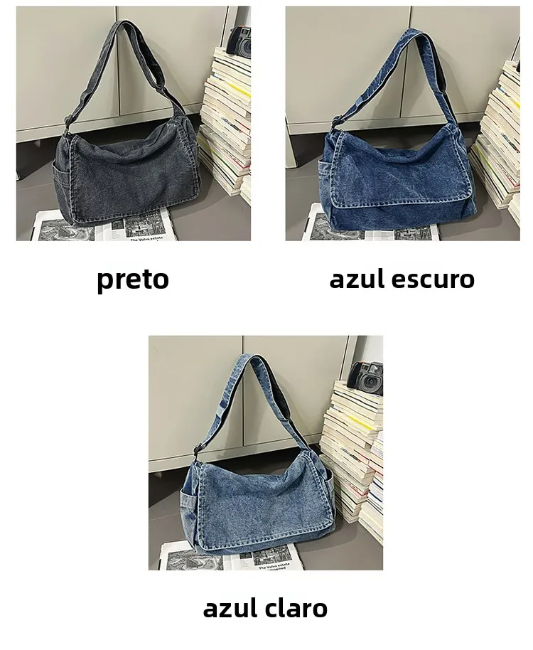 Traga um toque despojado e autêntico ao seu look com a nossa Bolsa Jeans Denim. Perfeita para mulheres modernas que adoram a versatilidade do tecido mais clássico do mundo. Combinando com praticamente qualquer peça do seu guarda-roupa, ela oferece um visual jovem, resistente e super prático para todas as ocasiões.