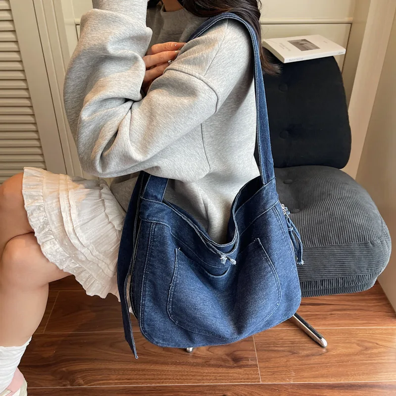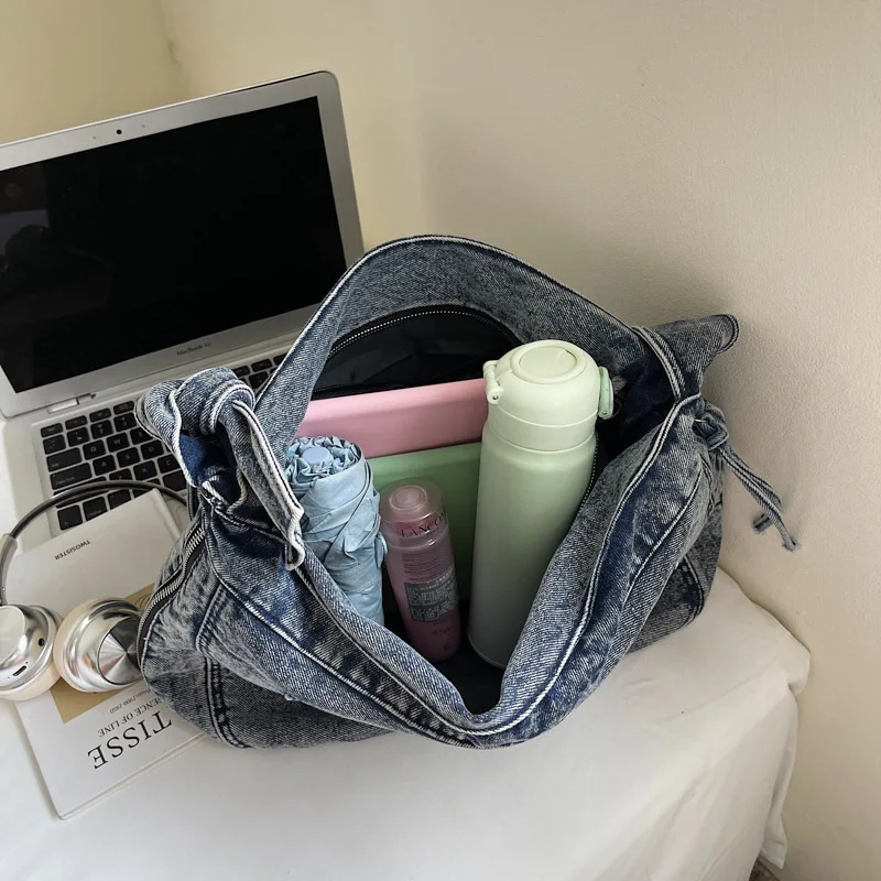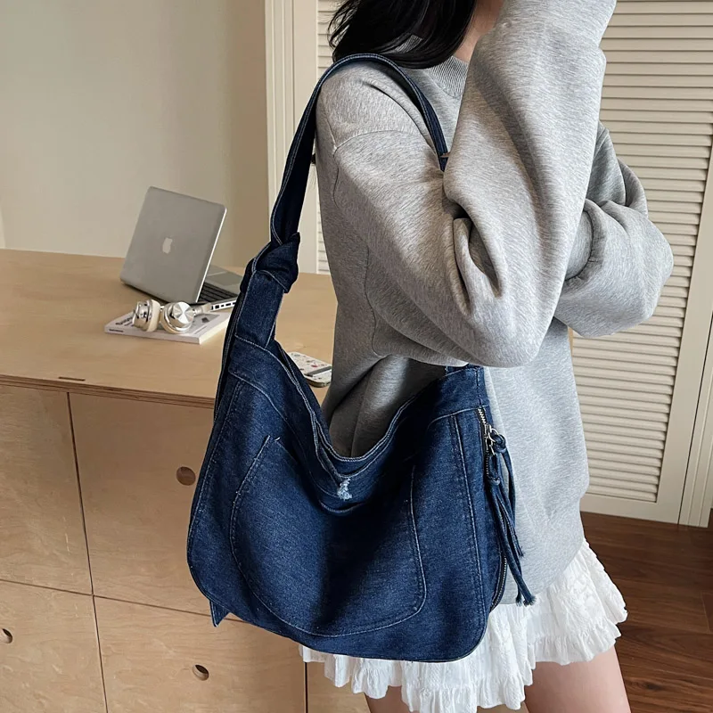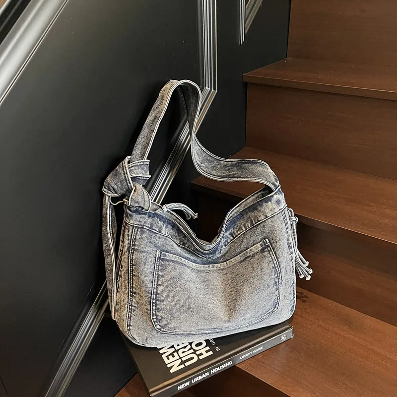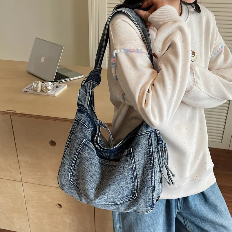 Traga um toque despojado e autêntico ao seu look com a nossa Bolsa Jeans Denim. Perfeita para mulheres modernas que adoram a versatilidade do tecido mais clássico do mundo. Combinando com praticamente qualquer peça do seu guarda-roupa, ela oferece um visual jovem, resistente e super prático para todas as ocasiões.
