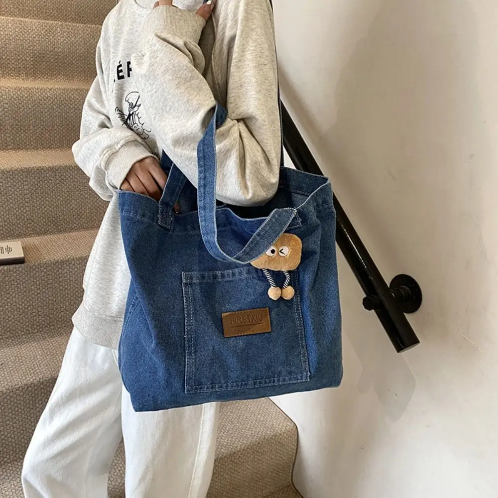 • Province Origin : Mainland China CN : Zhejiang Tipo: Bolsa de Ombro Material: Jeans Cor: Azul Claro, Azul Escuro Tamanho: Aproximadamente 45*37*11cm (17,72*14,57*4,33 pol