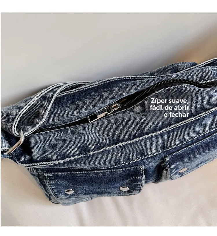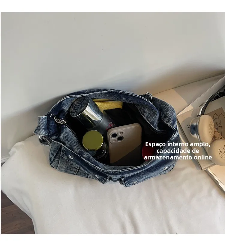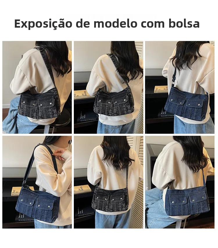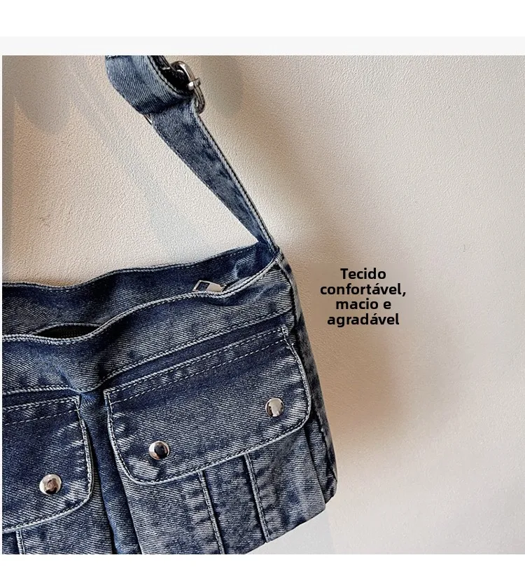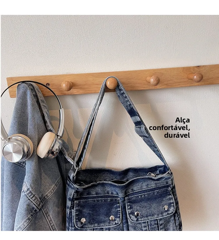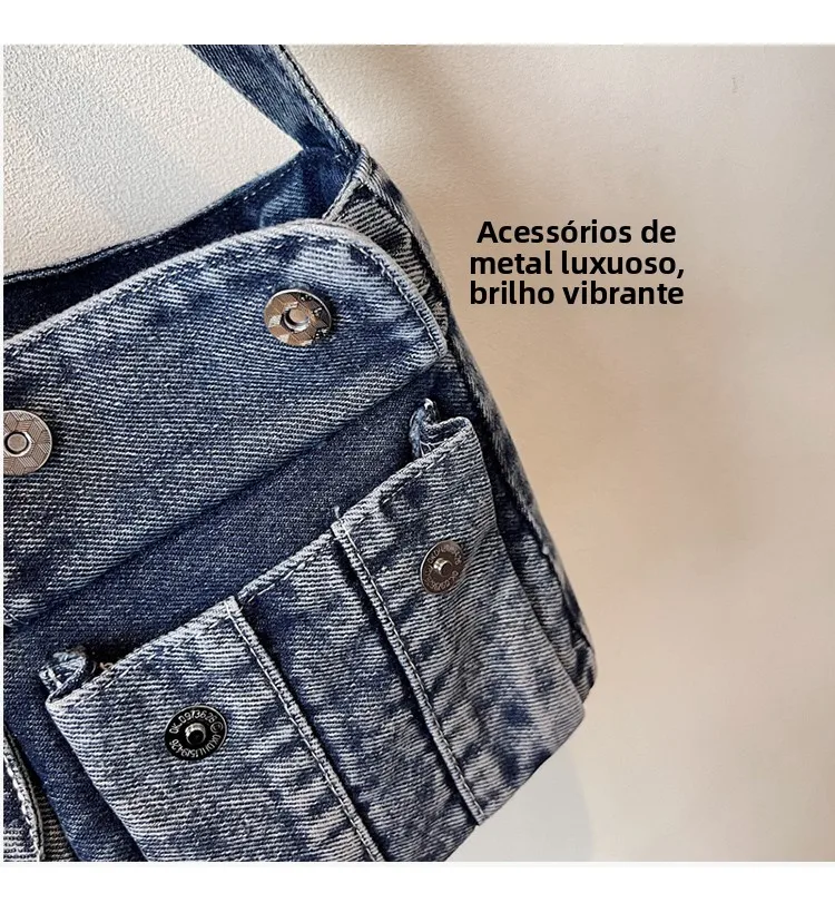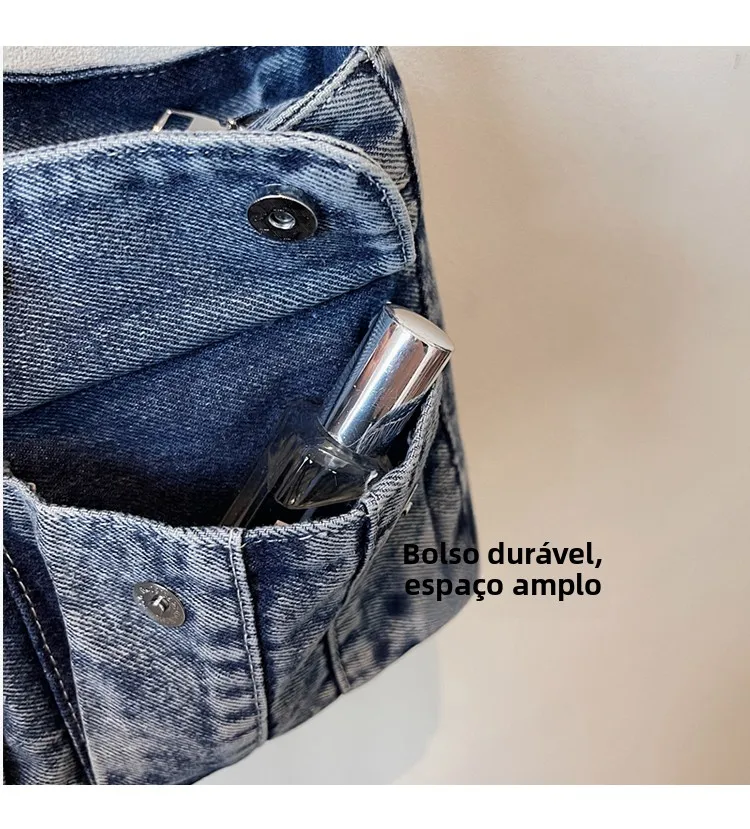 Feito de material de jeans, este saco é durável e resistente, garantindo um longo tempo de uso.