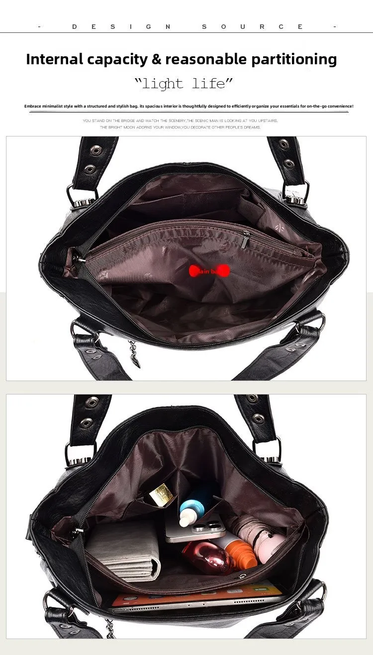 Para mulheres que precisam levar a vida na bolsa, apresentamos a nossa Bolsa Feminina Grande Espaçosa e Moderna. A combinação perfeita entre funcionalidade e sofisticação. Com espaço generoso, ela é ideal para acomodar o seu portátil (notebook), cadernos, nécessaire e tudo o que a sua rotina agitada exige.