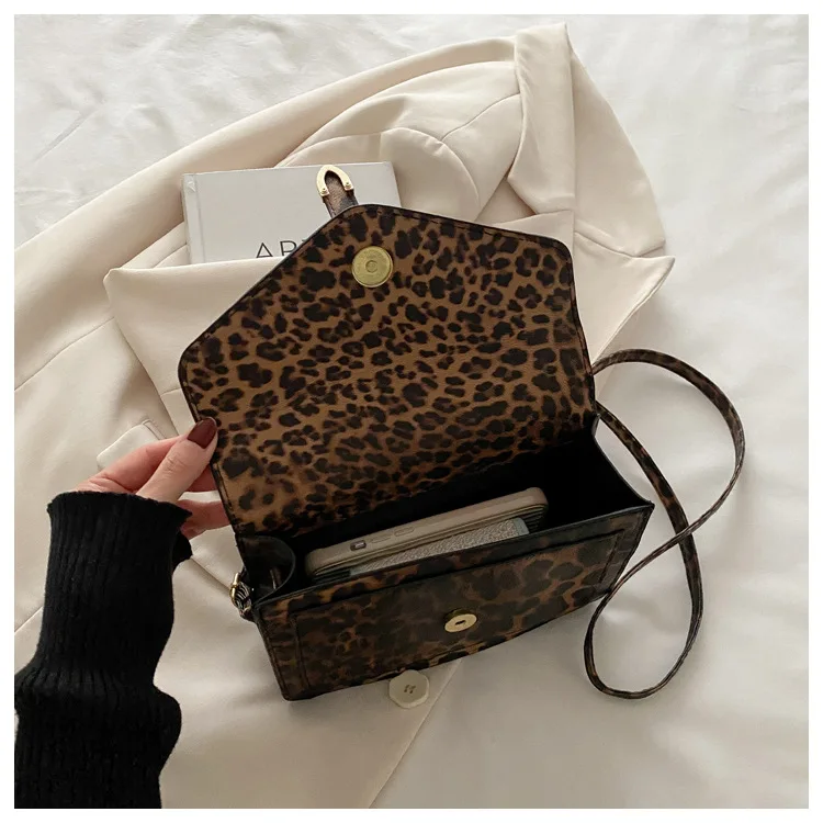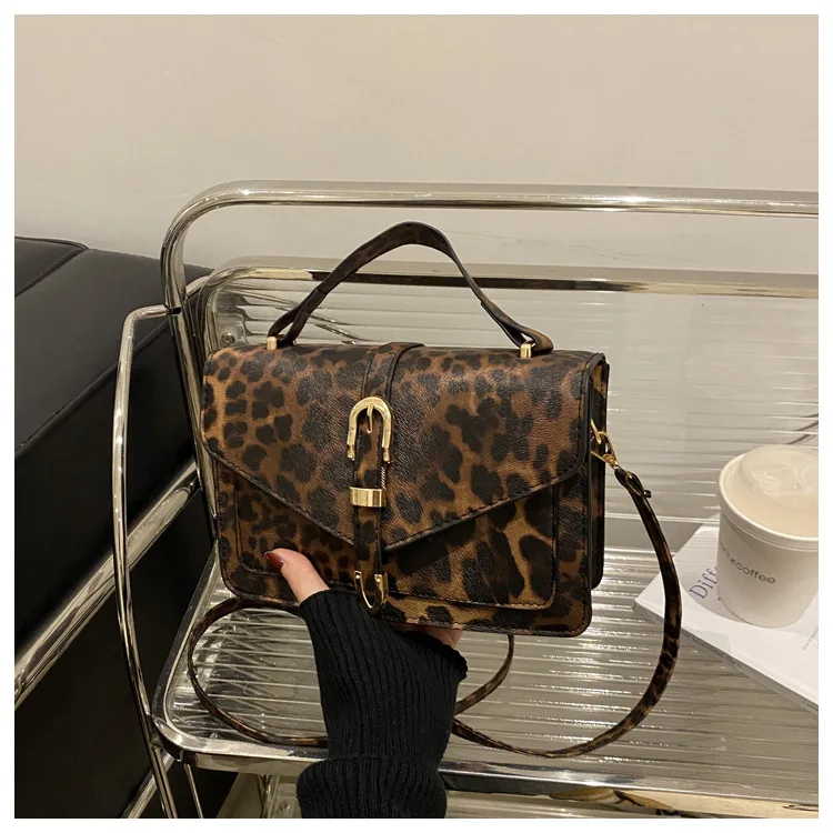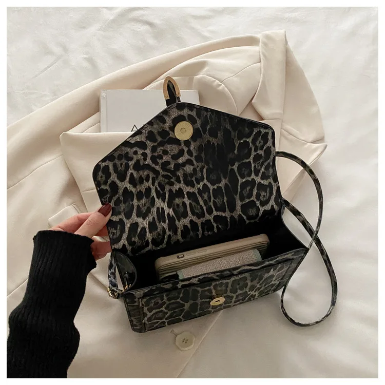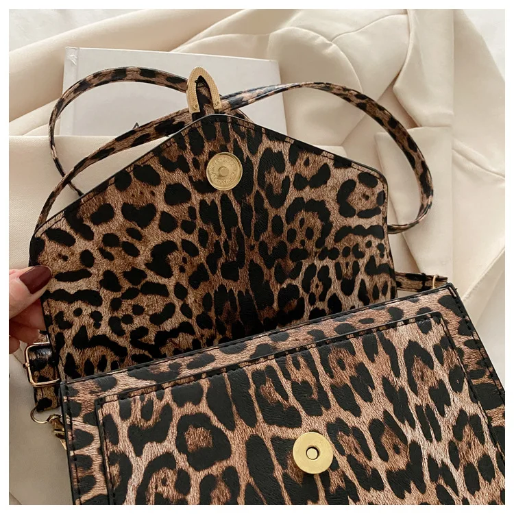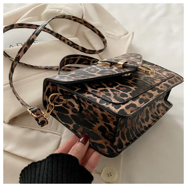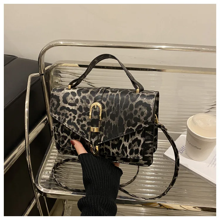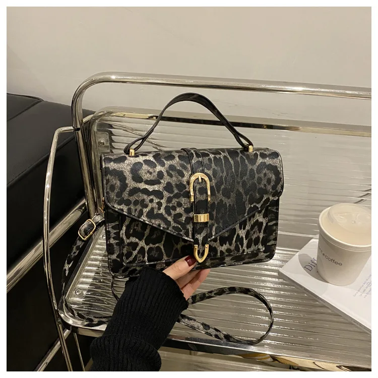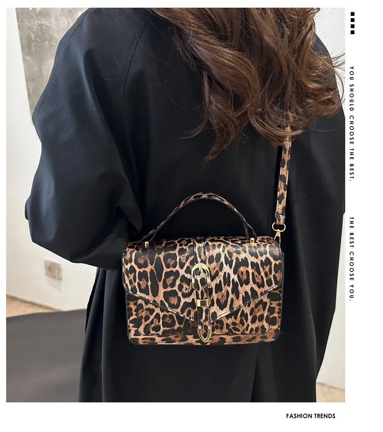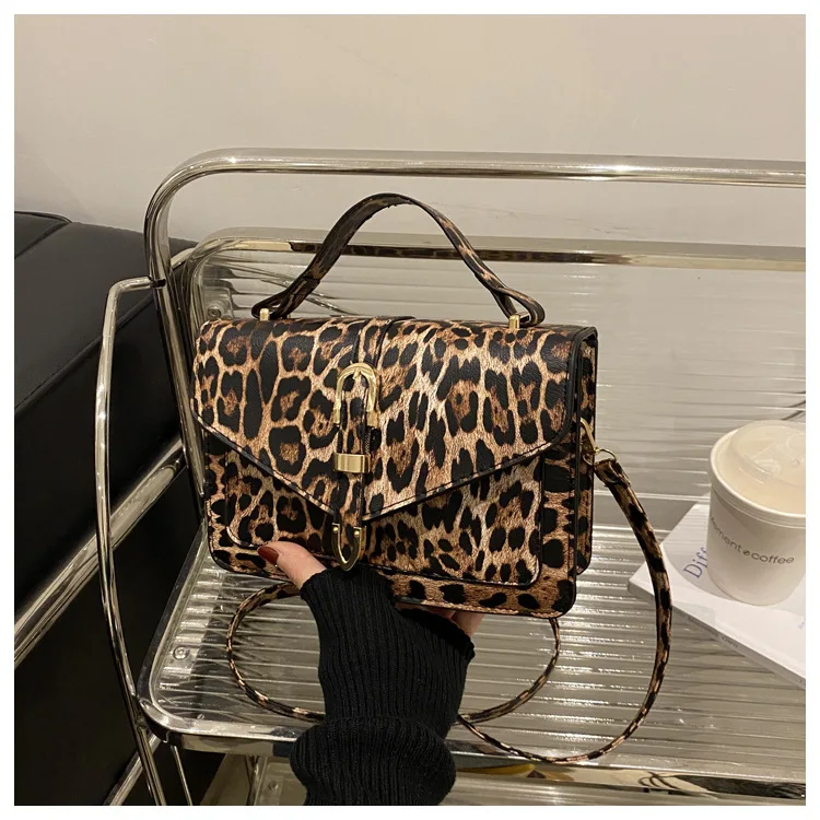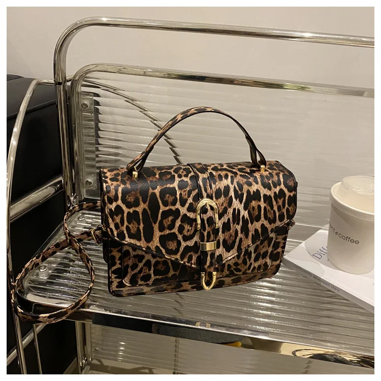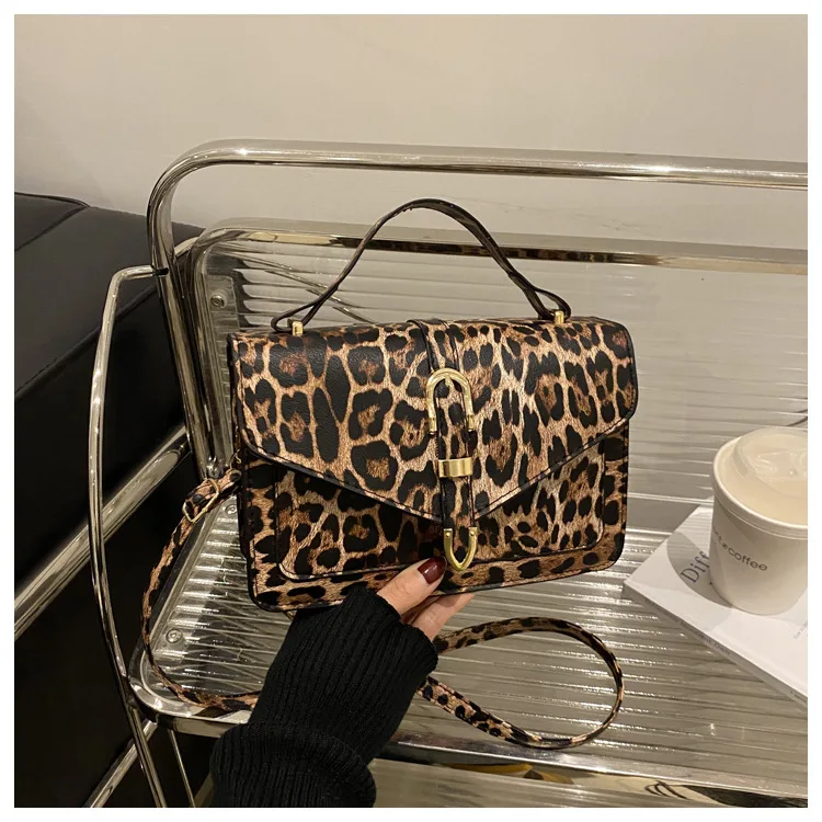 Com uma estampa de leopardo ousada, esta bolsa se destaca como um acessório moderno que complementa qualquer look, tornando-a uma peça de destaque na sua coleção.