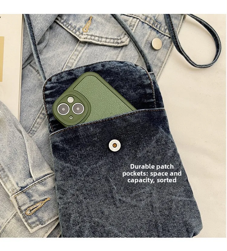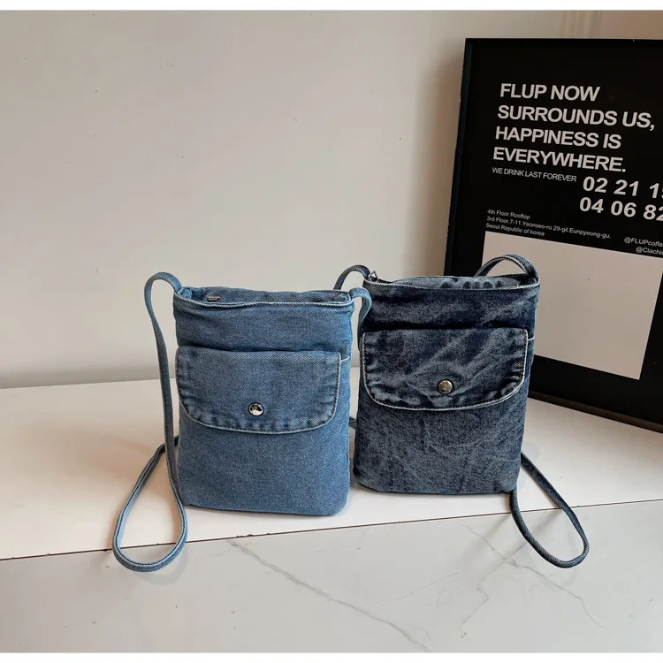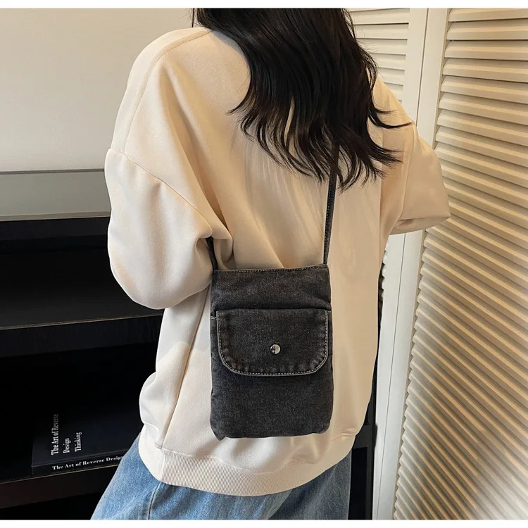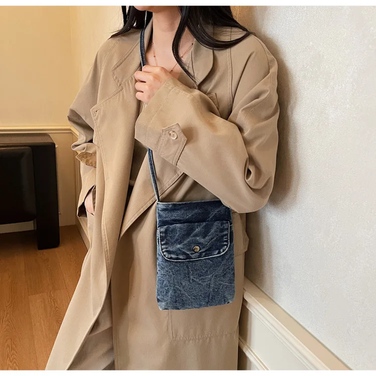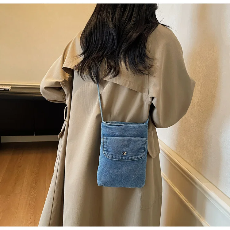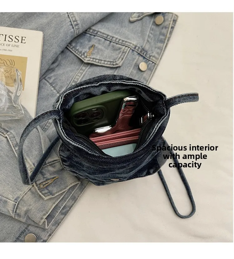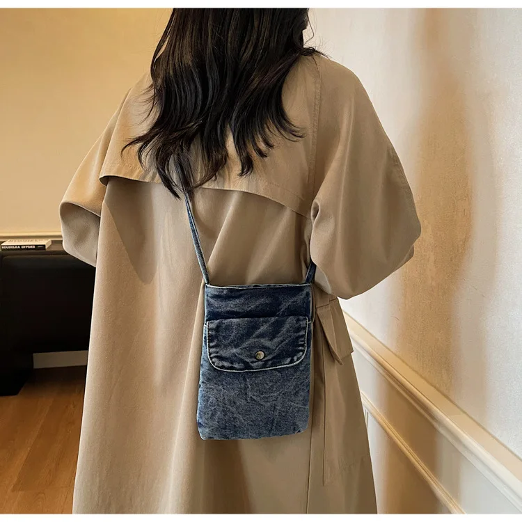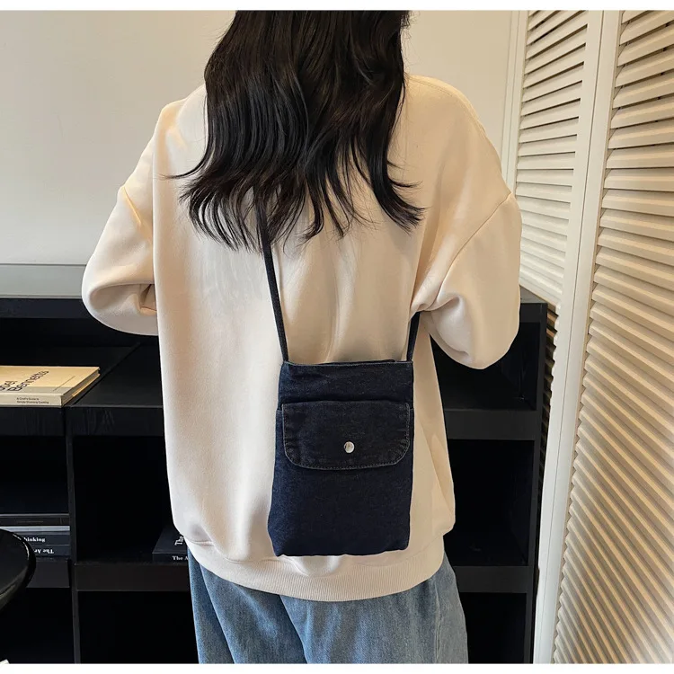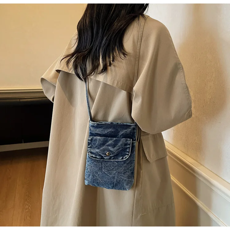 Esta bolsa jeans feminina apresenta um estilo minimalista urbano, perfeita para quem prefere uma estética elegante e simples.