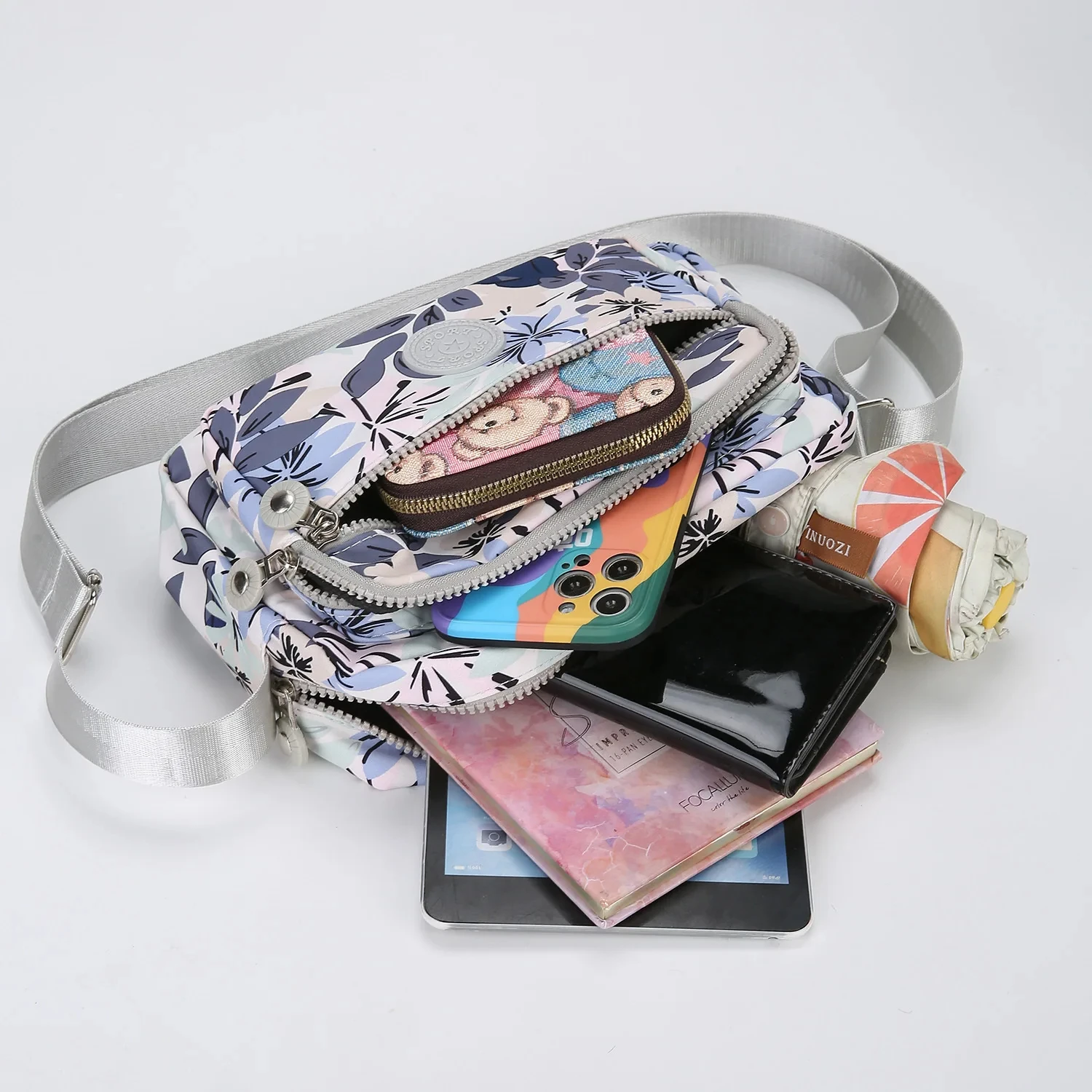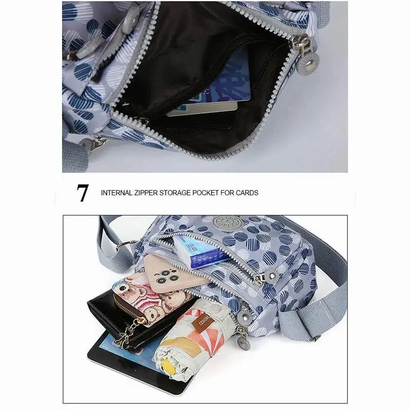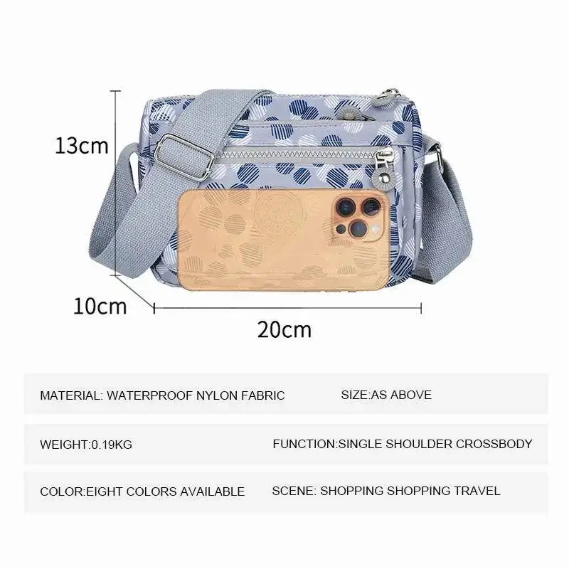 Bolsa de ombro de pano oxford com vários compartimentos, bolsa para celular, repelente à água, bolsa crossbody feminina