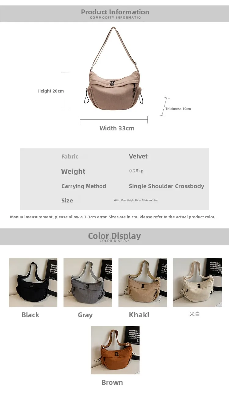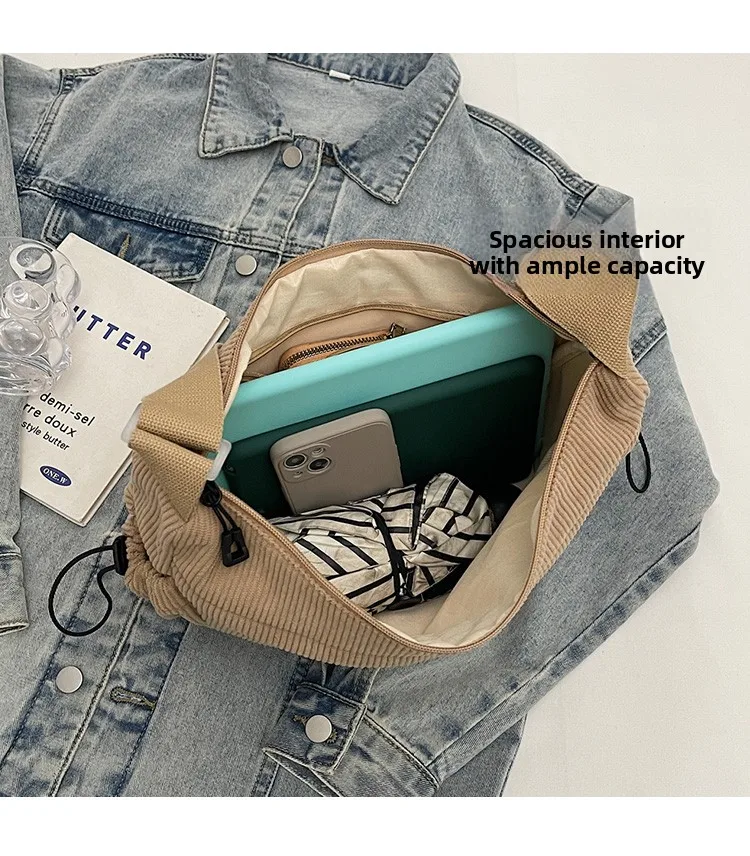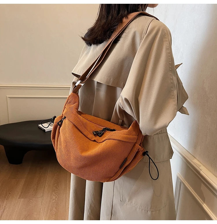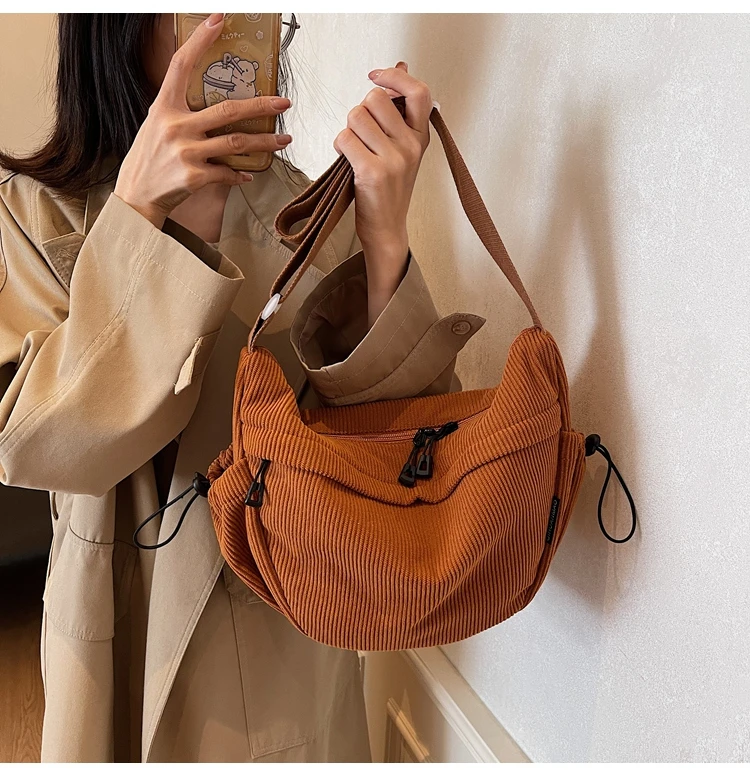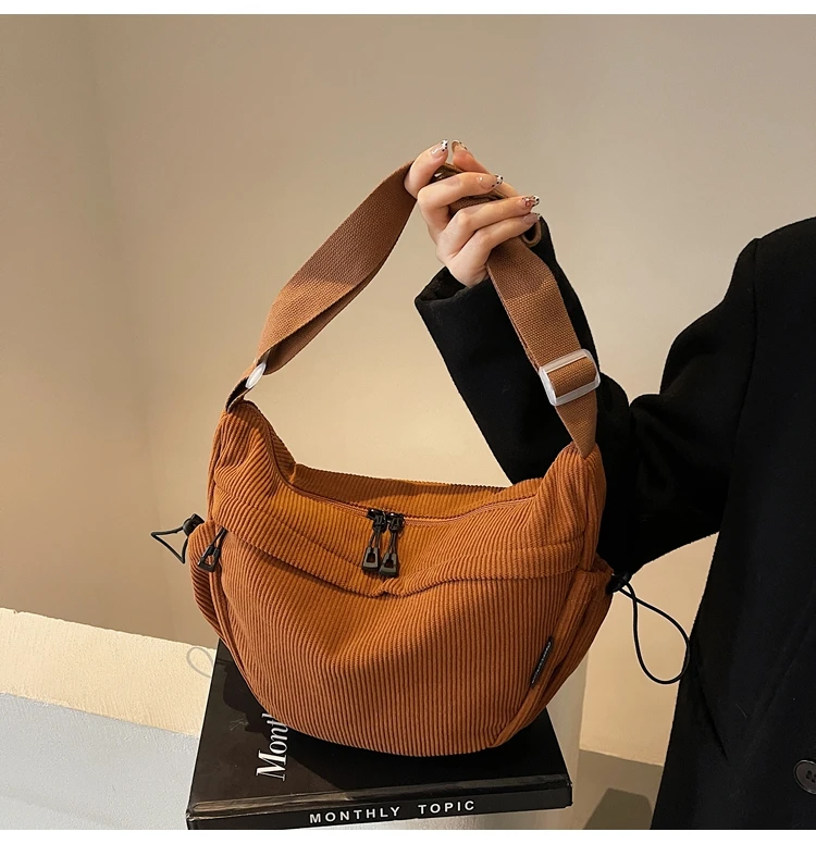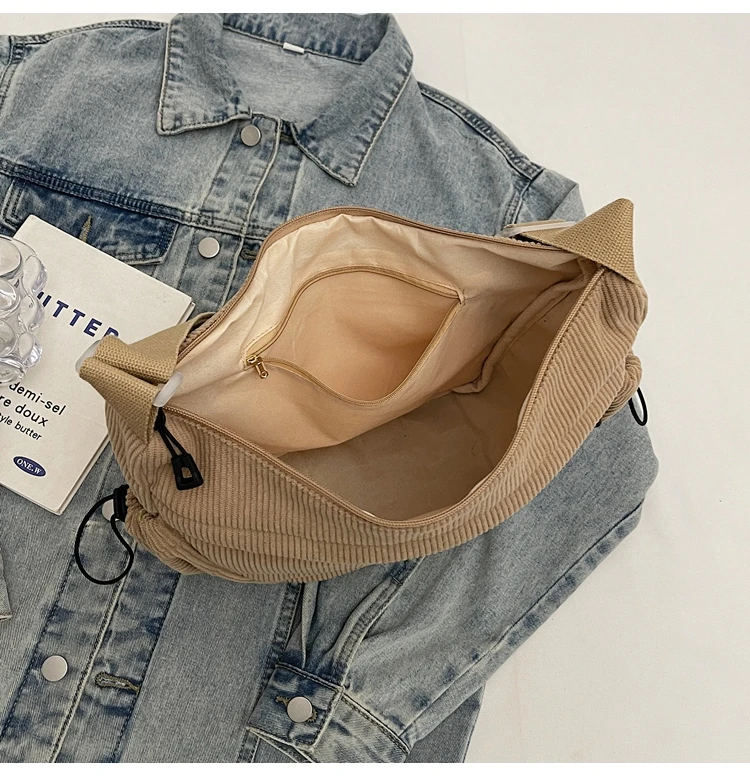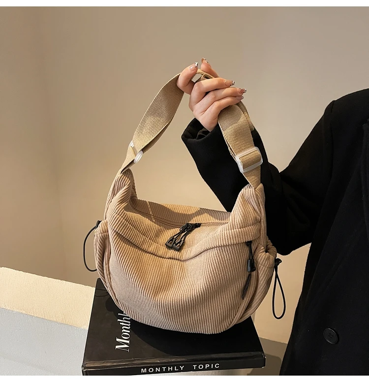 Adicione uma textura incrível e um charme acolhedor ao seu visual com a nossa Bolsa Feminina de Veludo Cotelê. Inspirada na estética vintage e pensada para o uso diário, ela é leve, super macia ao toque e espaçosa o suficiente para levar tudo o que importa.