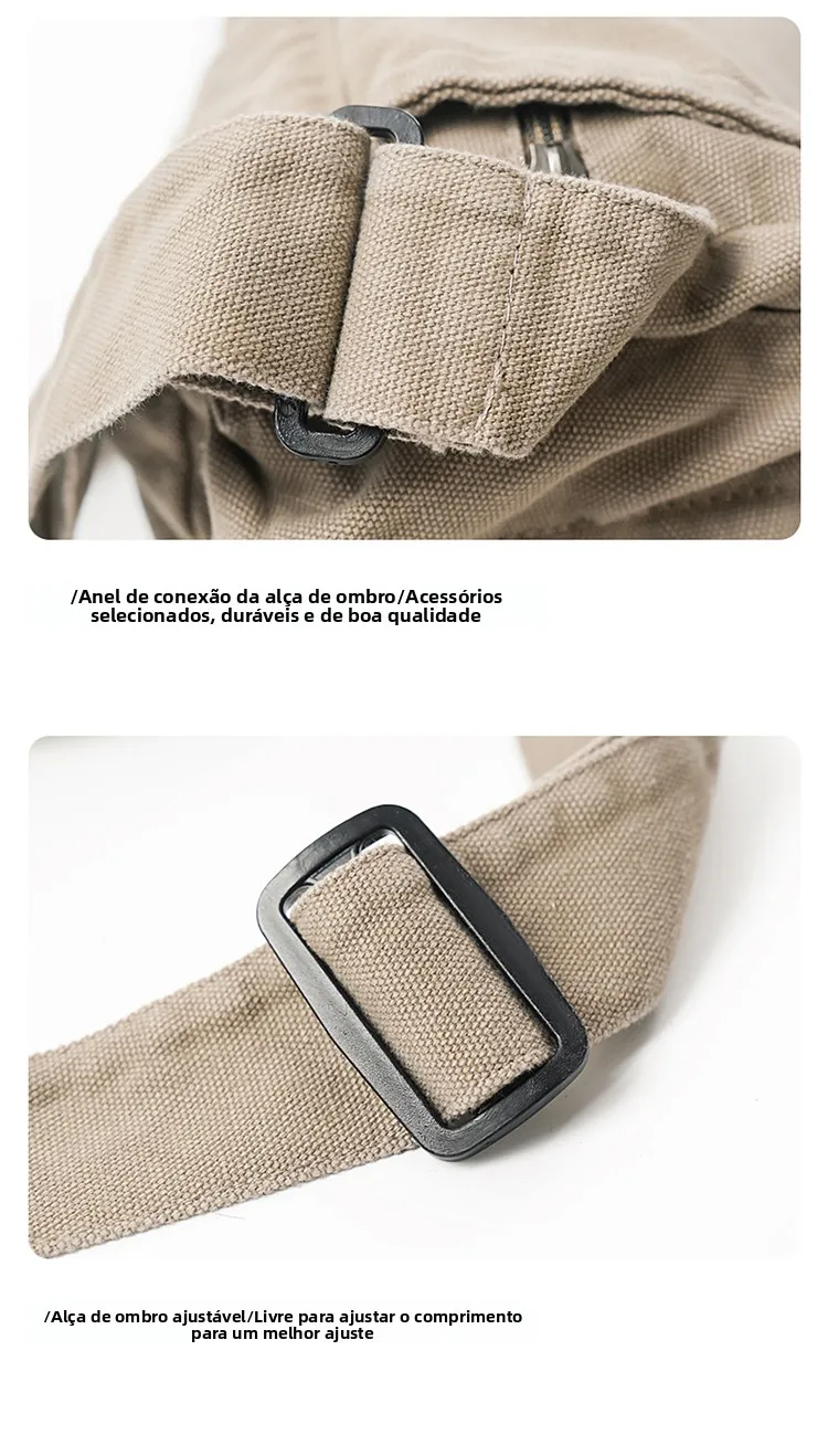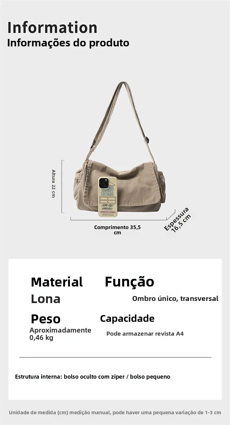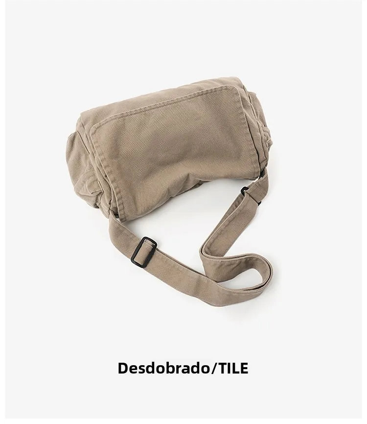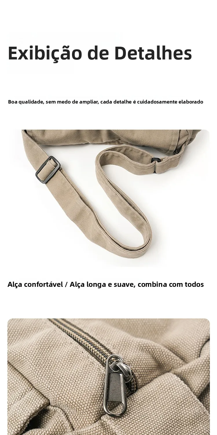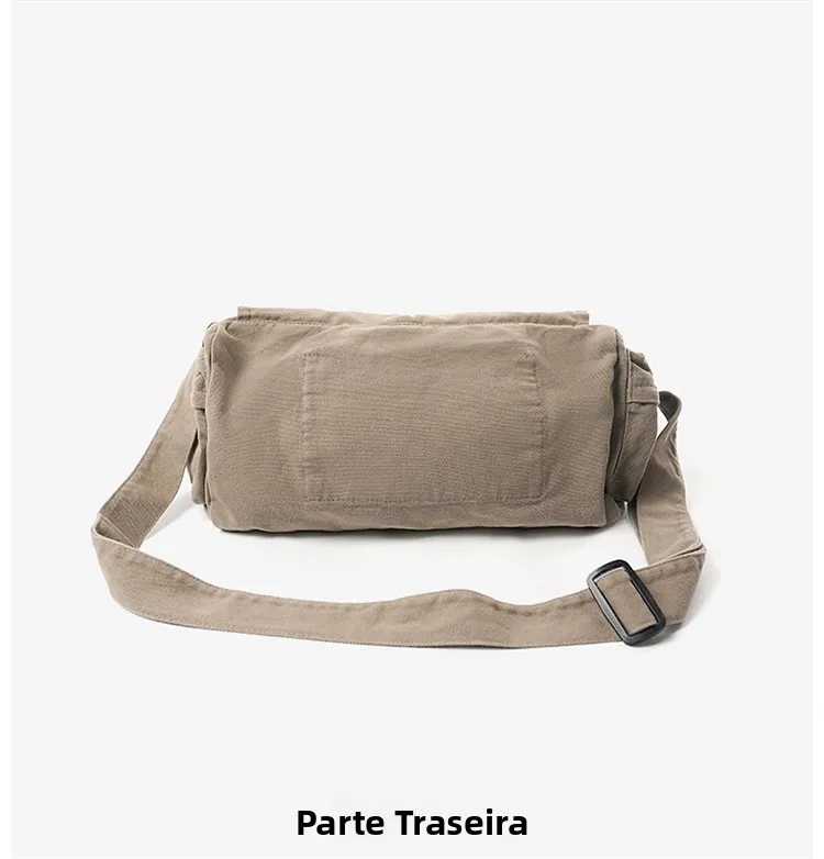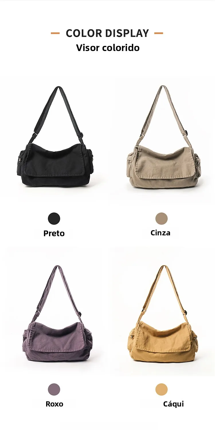 Este saco de ombro apresenta um design retro de lona, combinando estilo com funcionalidade, perfeito para quem gosta de um toque vintage em suas peças de moda.