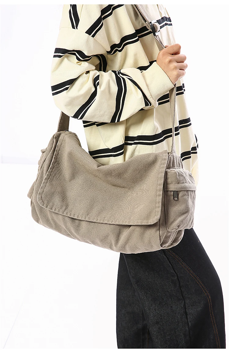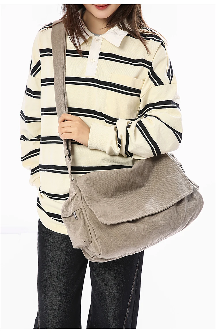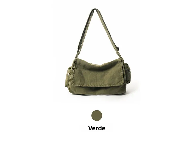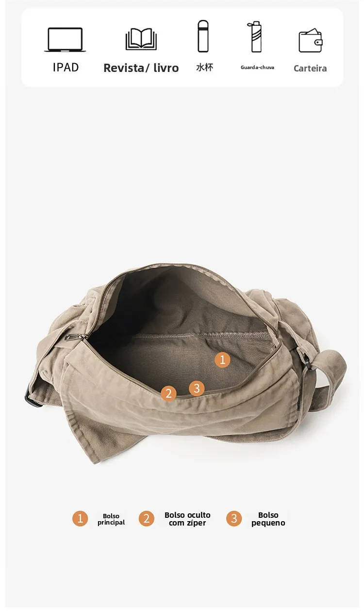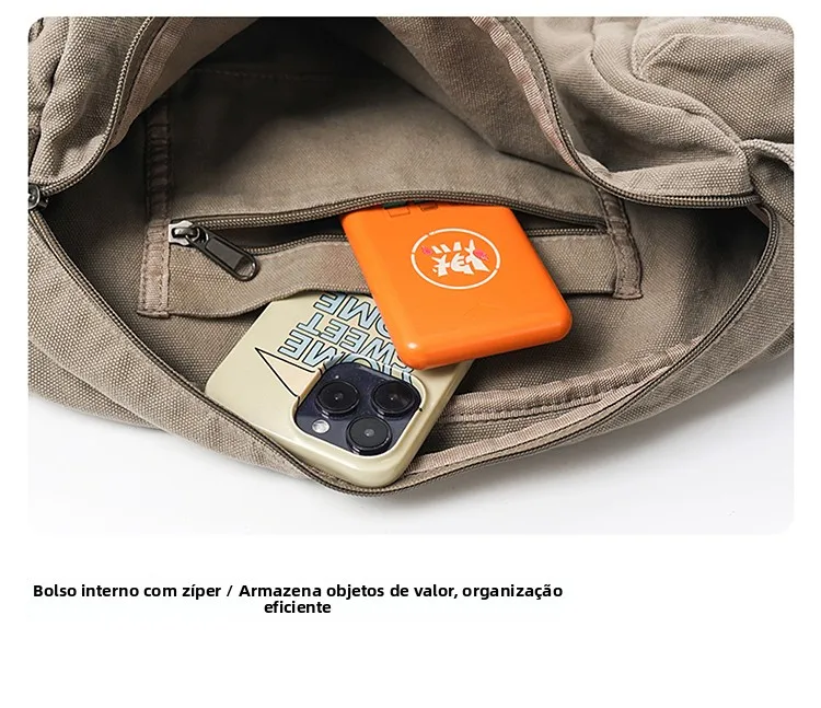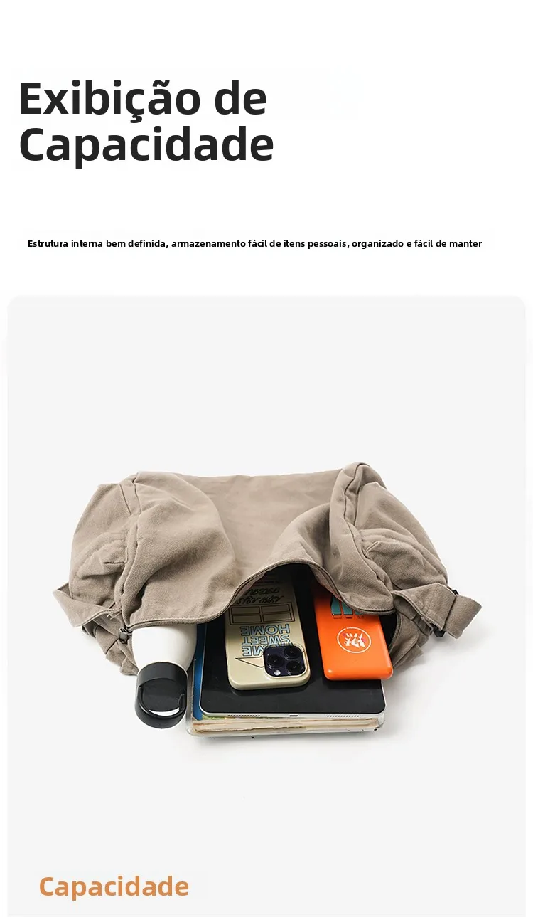 Este saco de ombro apresenta um design retro de lona, combinando estilo com funcionalidade, perfeito para quem gosta de um toque vintage em suas peças de moda.