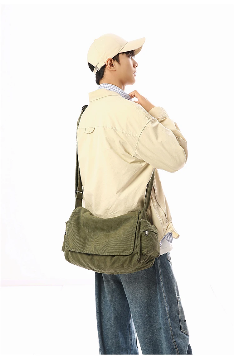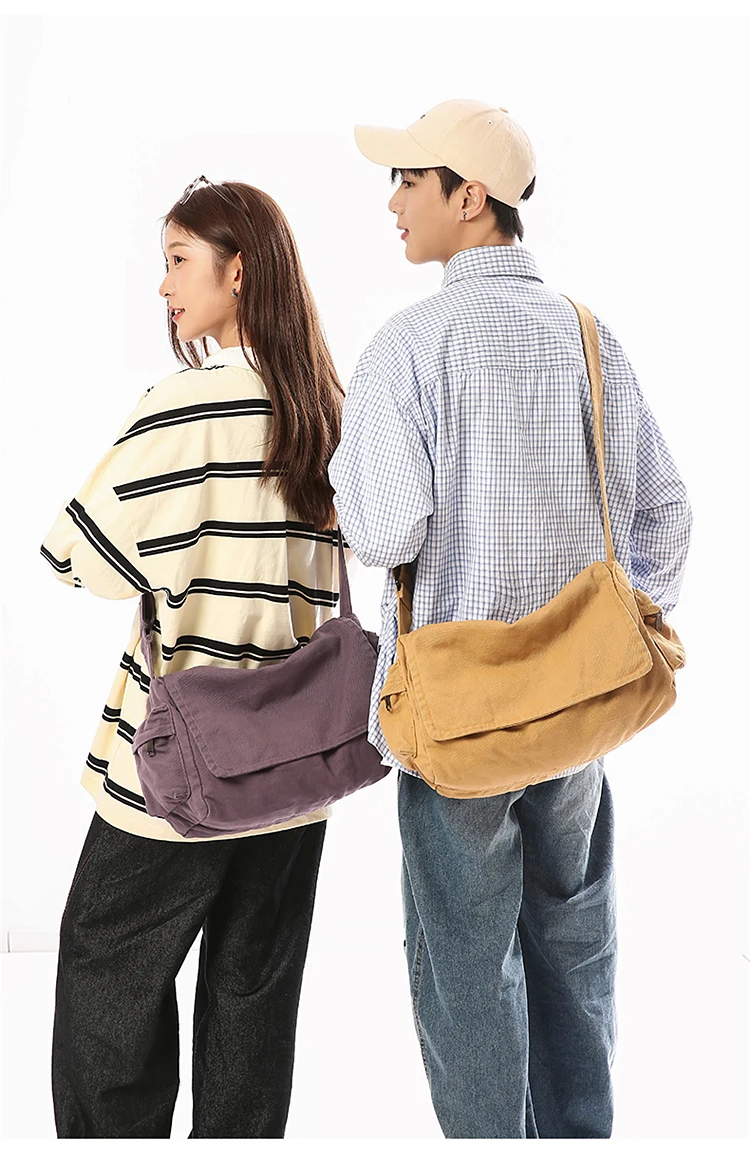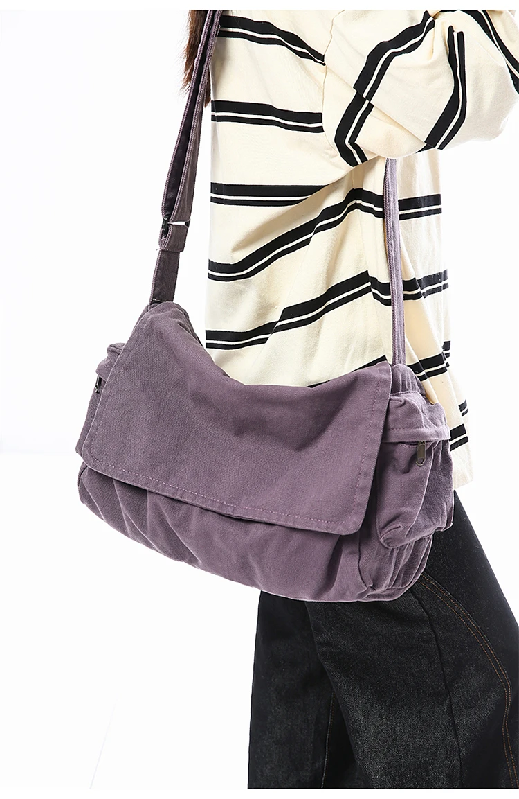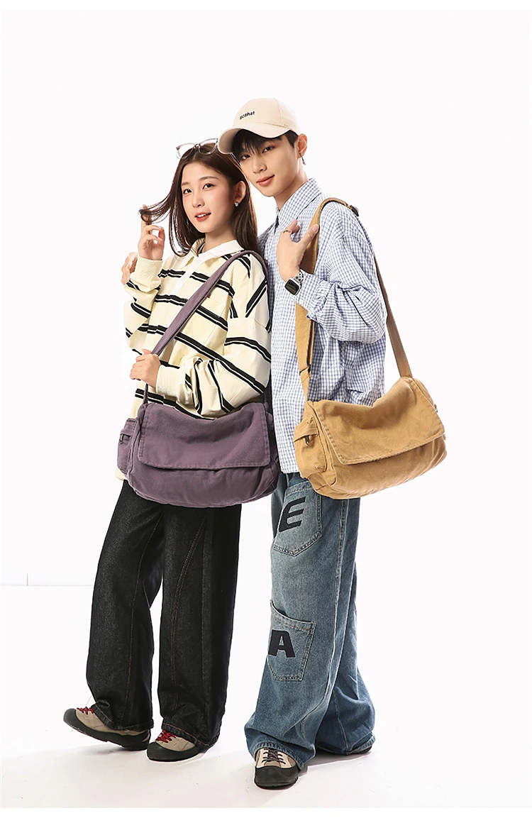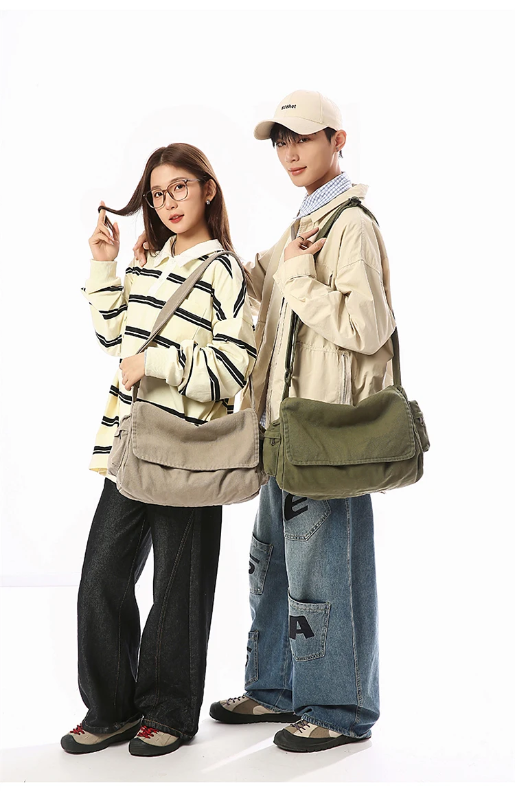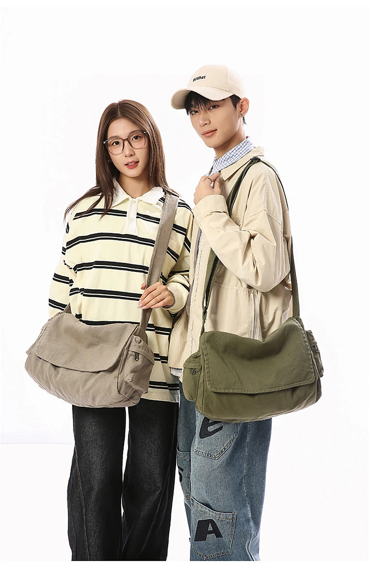 Este saco de ombro apresenta um design retro de lona, combinando estilo com funcionalidade, perfeito para quem gosta de um toque vintage em suas peças de moda.