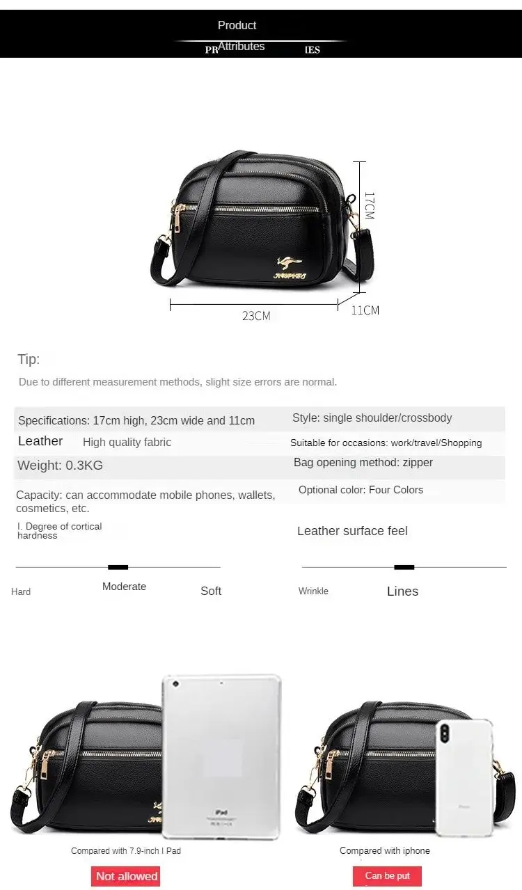 Seu peso leve e tamanho compacto tornam este saco de ombro fácil de transportar.