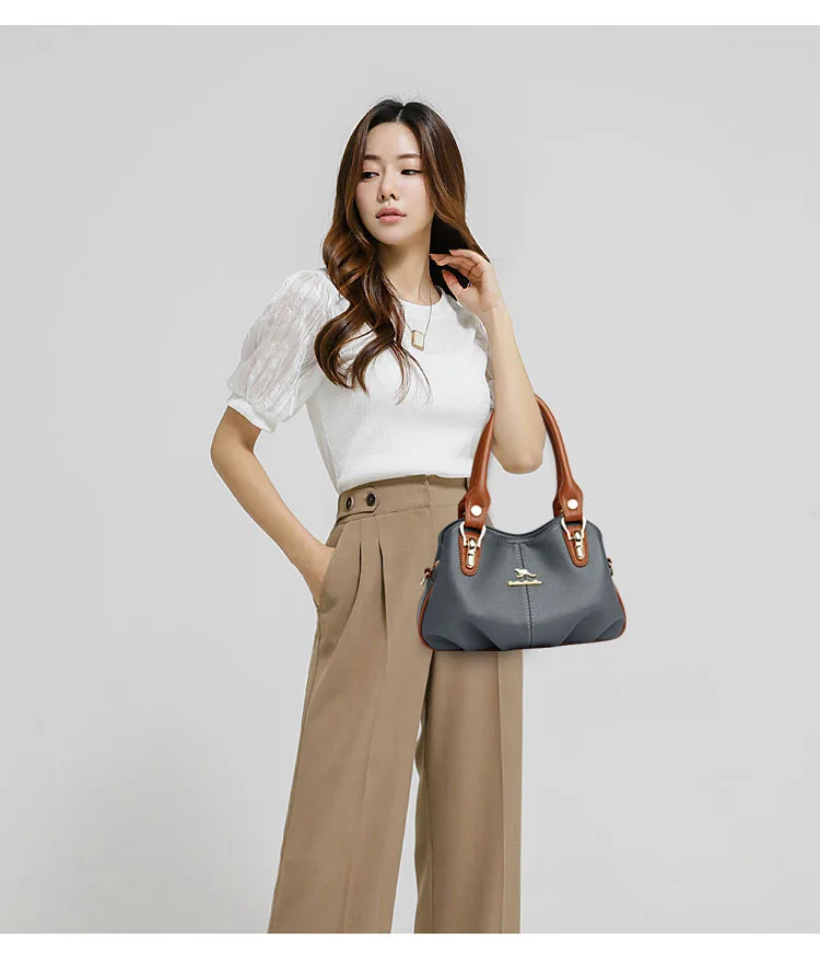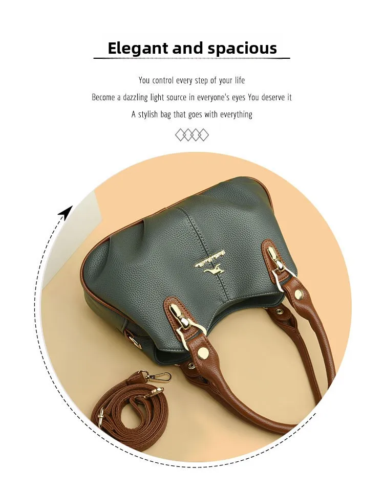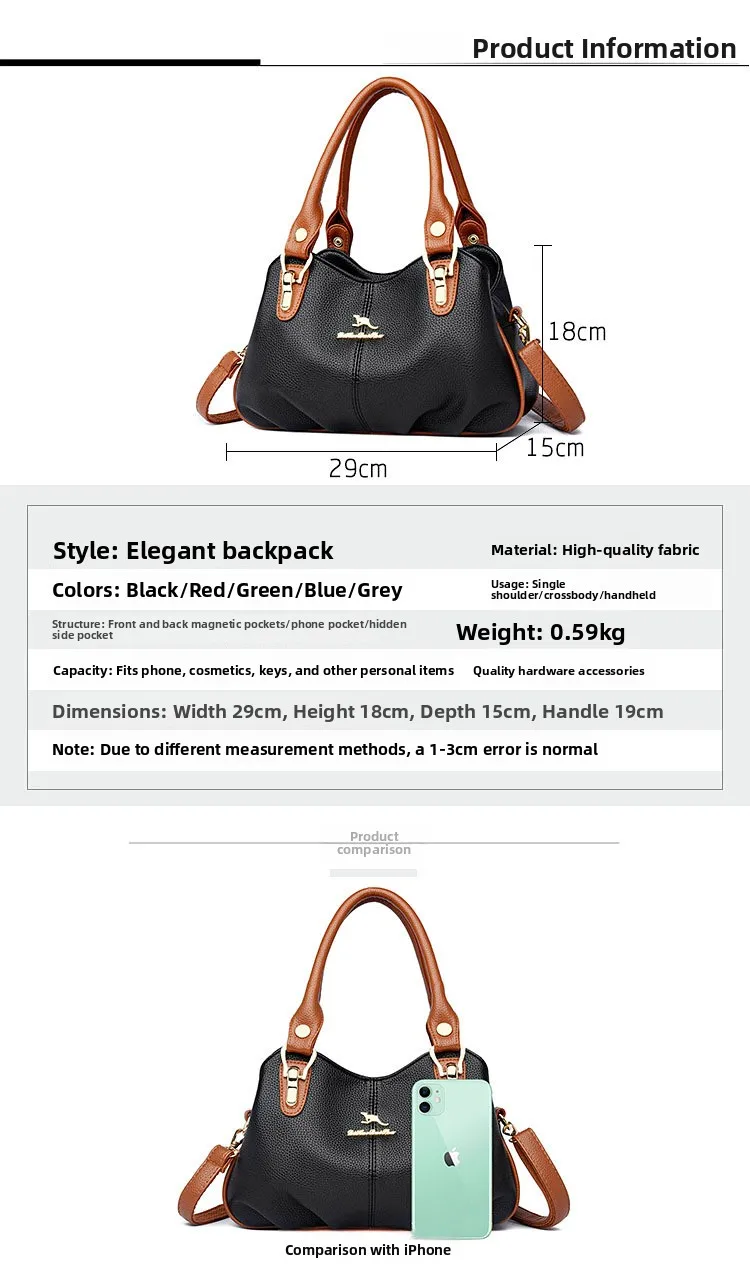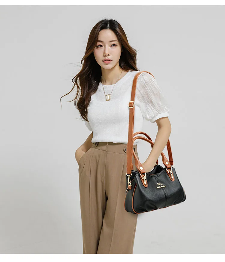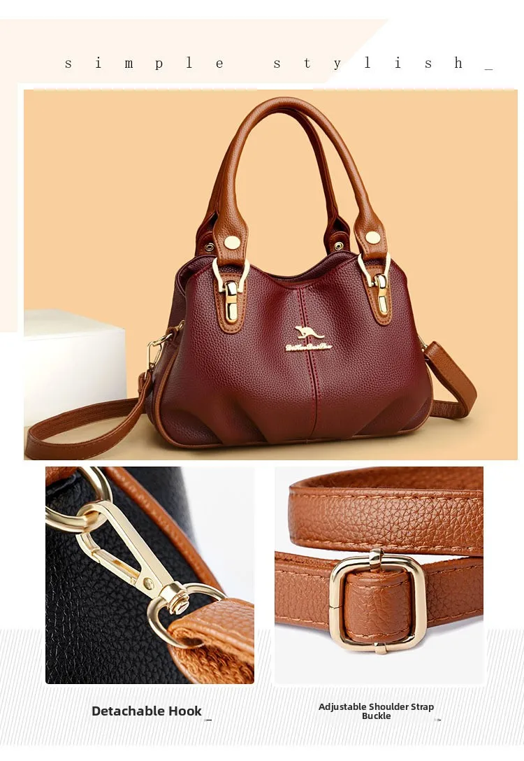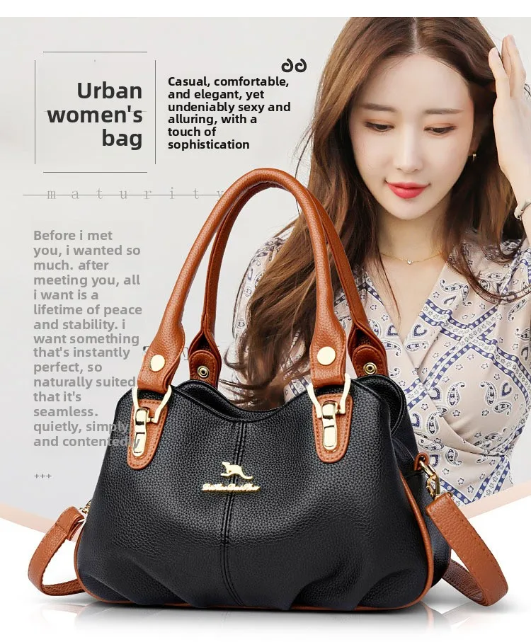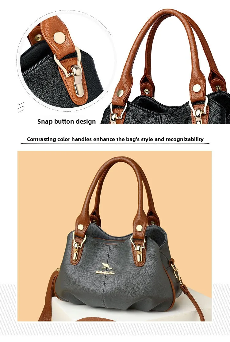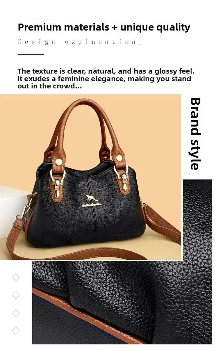 A nova bolsa de maternidade de couro macio de 2025 apresenta um design versátil, perfeito para diversas ocasiões. Seu estilo bolsa Boston e tamanho médio fazem dela um acessório ideal para uso diário.