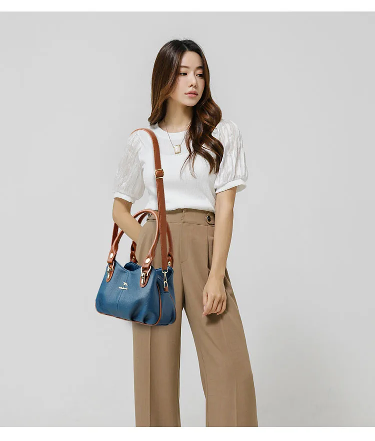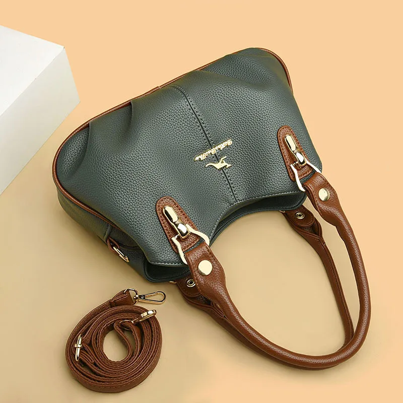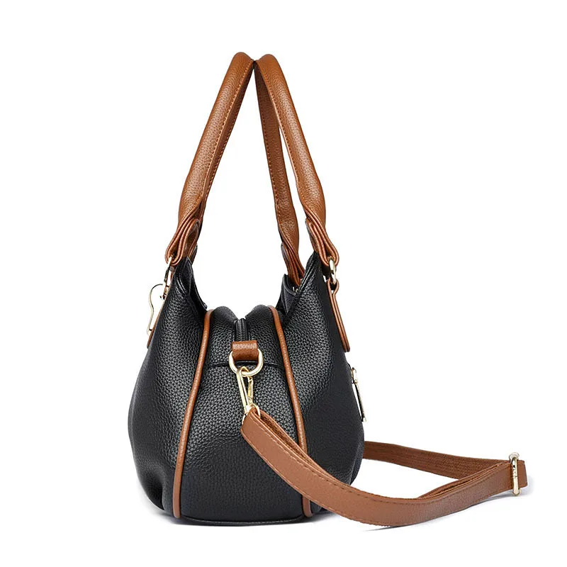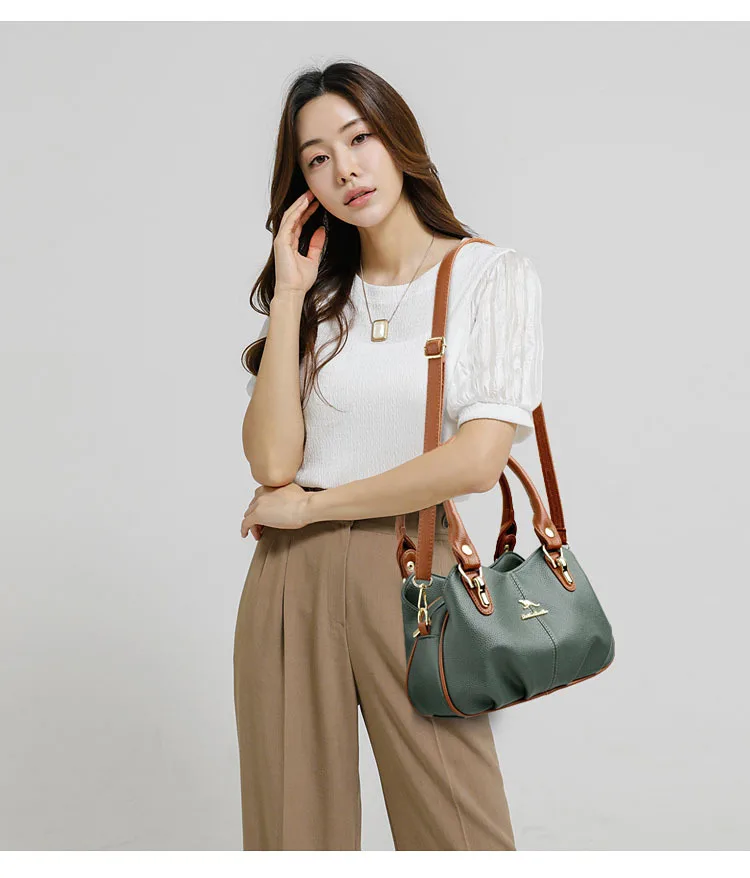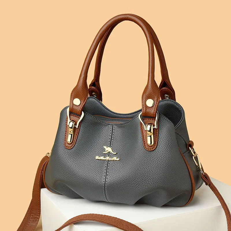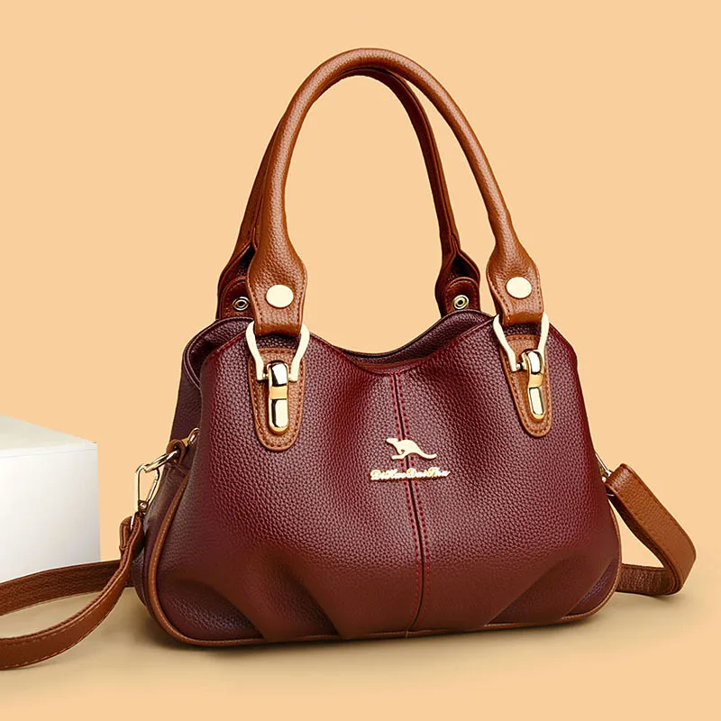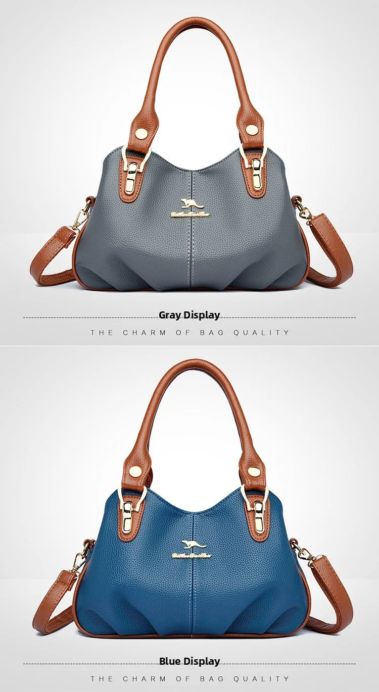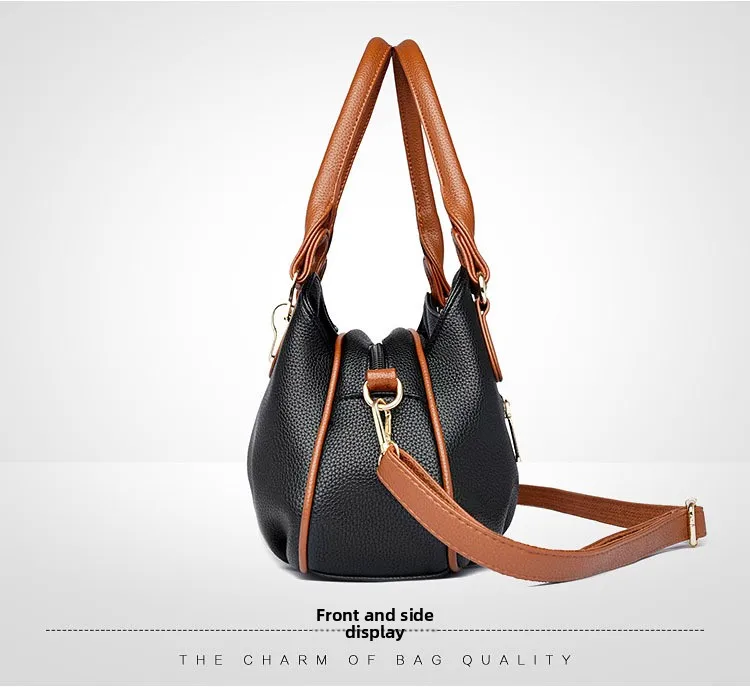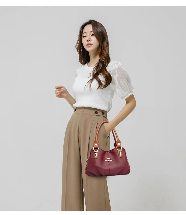A nova bolsa de maternidade de couro macio de 2025 apresenta um design versátil, perfeito para diversas ocasiões. Seu estilo bolsa Boston e tamanho médio fazem dela um acessório ideal para uso diário.