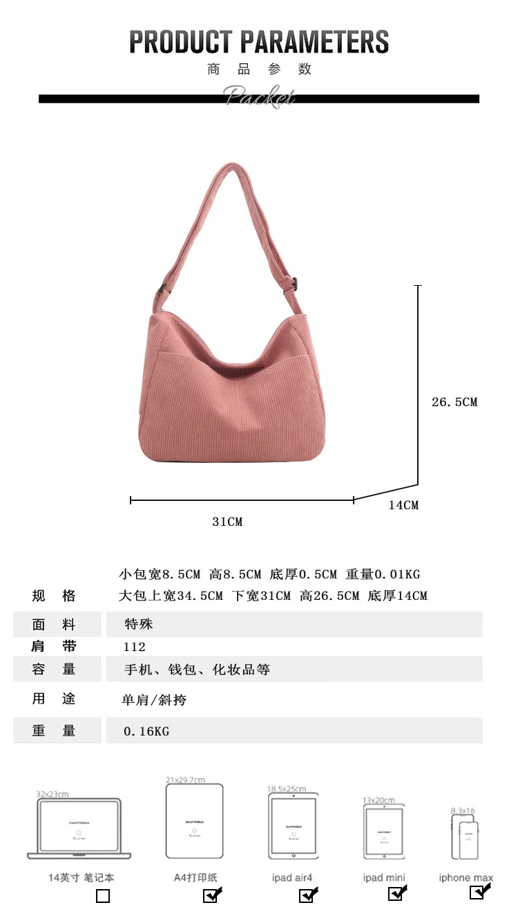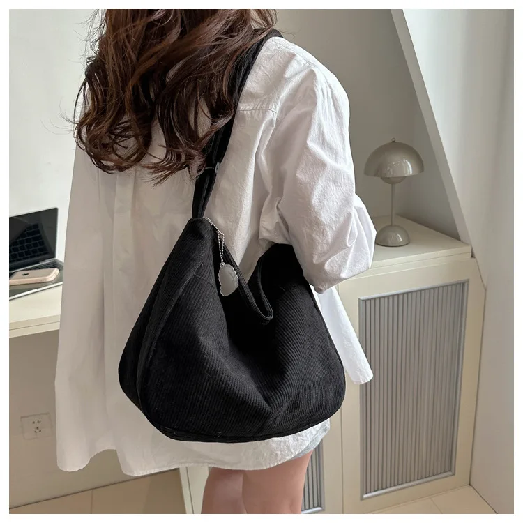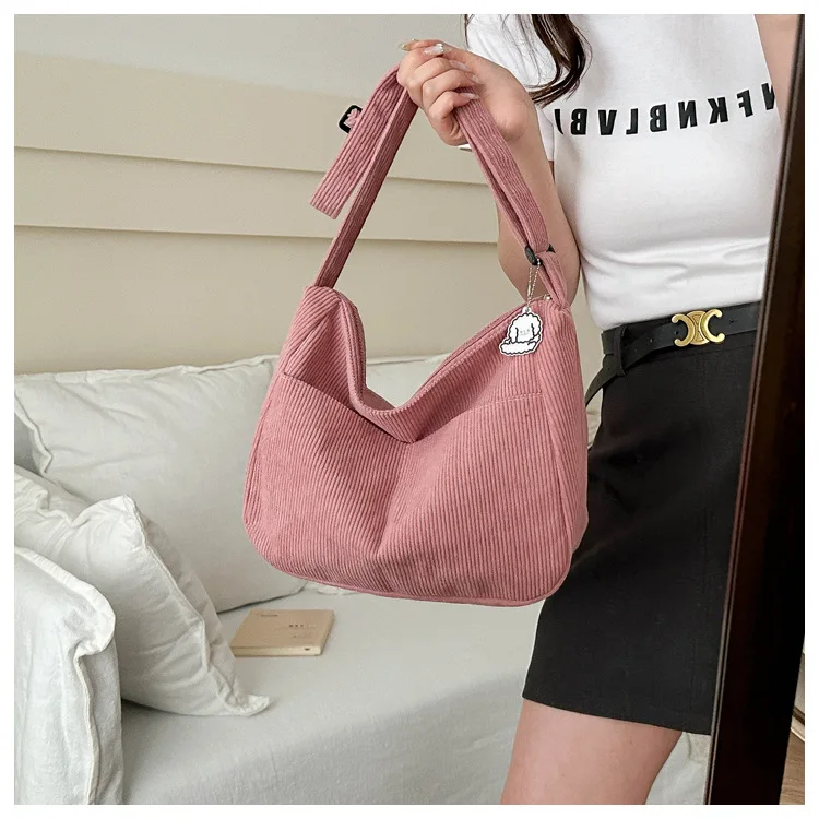 Adicione uma textura incrível e um charme acolhedor ao seu visual com a nossa Bolsa Feminina de Veludo Cotelê. Inspirada na estética vintage e pensada para o uso diário, ela é leve, super macia ao toque e espaçosa o suficiente para levar tudo o que importa.