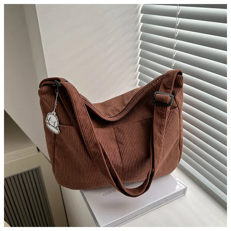 Adicione uma textura incrível e um charme acolhedor ao seu visual com a nossa Bolsa Feminina de Veludo Cotelê. Inspirada na estética vintage e pensada para o uso diário, ela é leve, super macia ao toque e espaçosa o suficiente para levar tudo o que importa.