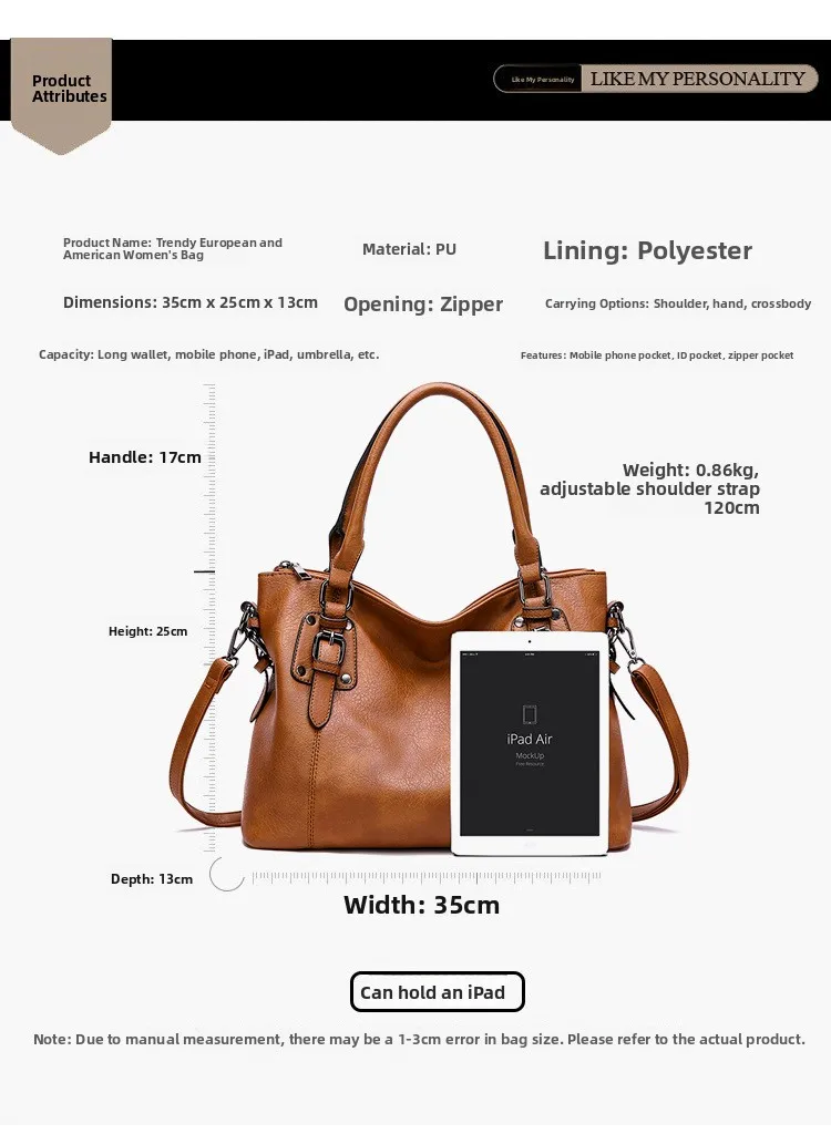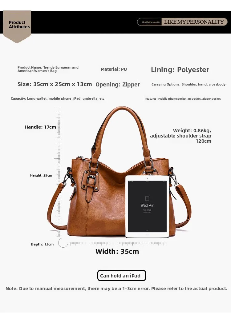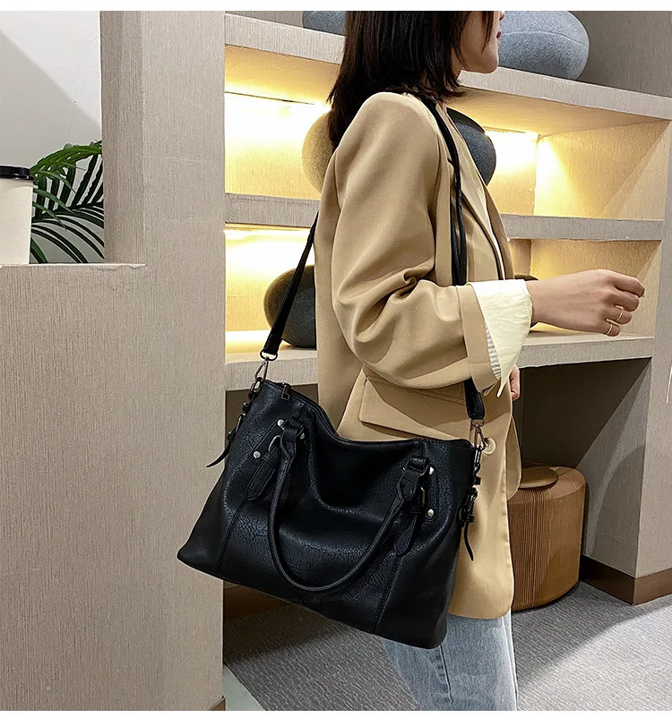 Para mulheres que precisam levar a vida na bolsa, apresentamos a nossa Bolsa Feminina Grande Espaçosa e Moderna. A combinação perfeita entre funcionalidade e sofisticação. Com espaço generoso, ela é ideal para acomodar o seu portátil (notebook), cadernos, nécessaire e tudo o que a sua rotina agitada exige.