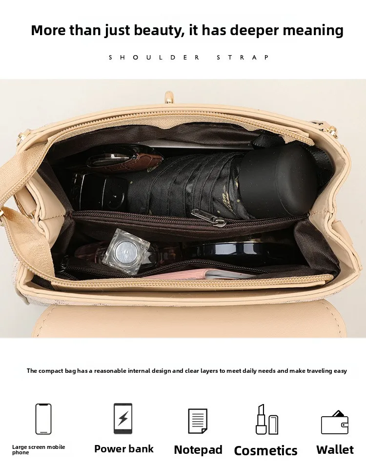 Com bolso para telemóvel e alça única, esta mala combina funcionalidade com estilo.