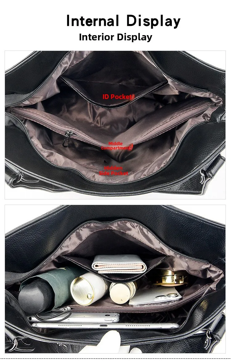 Feita em couro PU macio, esta bolsa combina durabilidade com um toque luxuoso, realçando seu apelo.