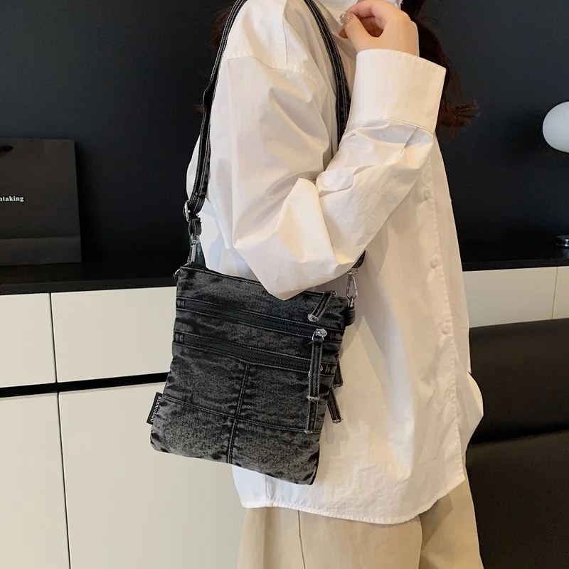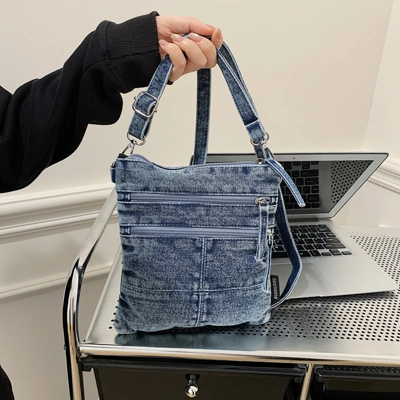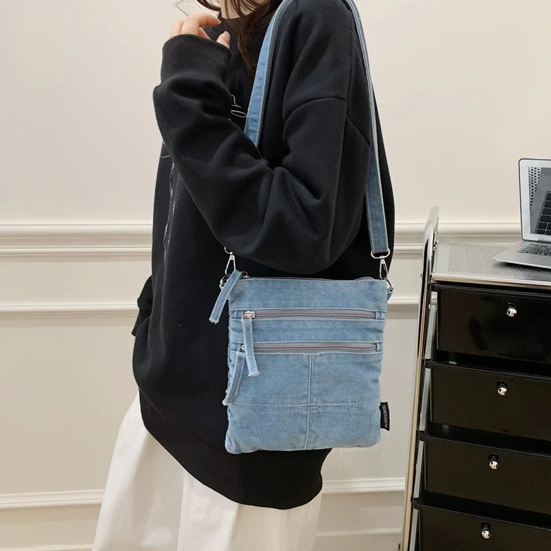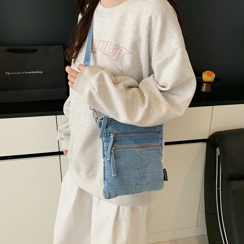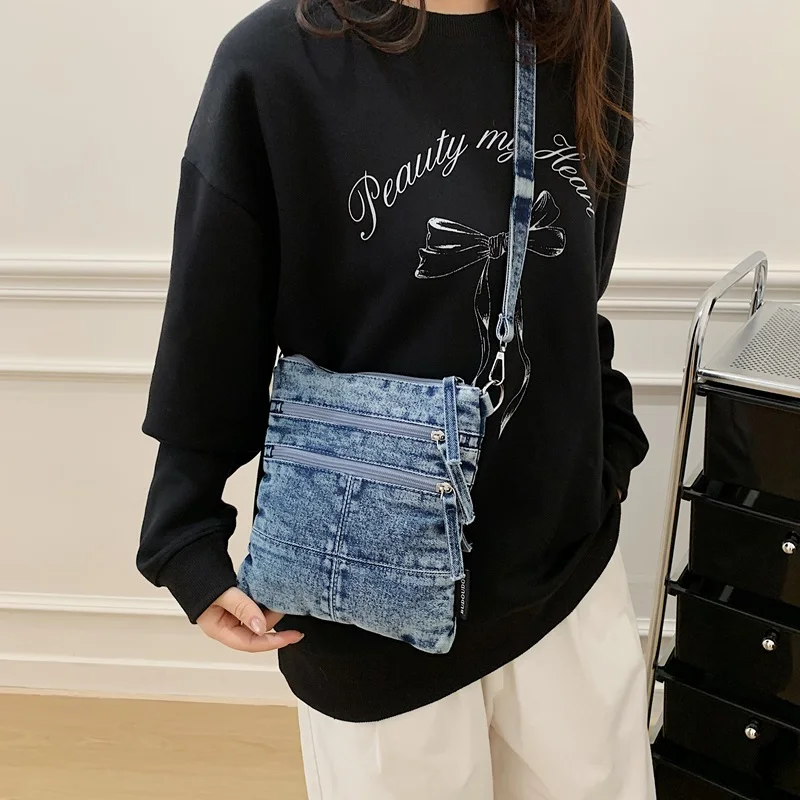 Model Number: Women Denim Bag Shoulder Bag 3 Layers Capacity Strap Adjustable Crossb
