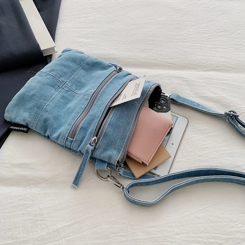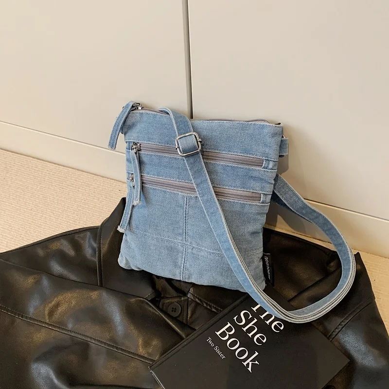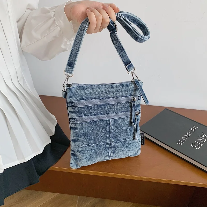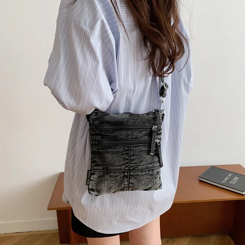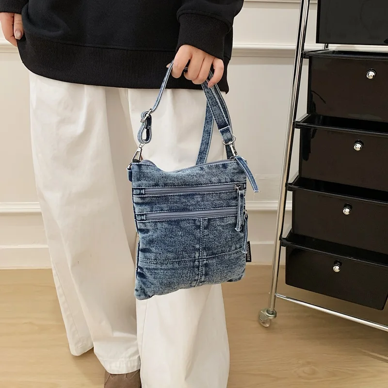 Model Number: Women Denim Bag Shoulder Bag 3 Layers Capacity Strap Adjustable Crossb