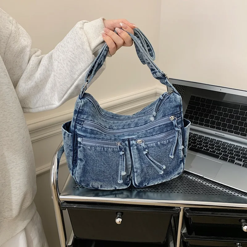 Traga um toque despojado e autêntico ao seu look com a nossa Bolsa Jeans Denim. Perfeita para mulheres modernas que adoram a versatilidade do tecido mais clássico do mundo. Combinando com praticamente qualquer peça do seu guarda-roupa, ela oferece um visual jovem, resistente e super prático para todas as ocasiões.
