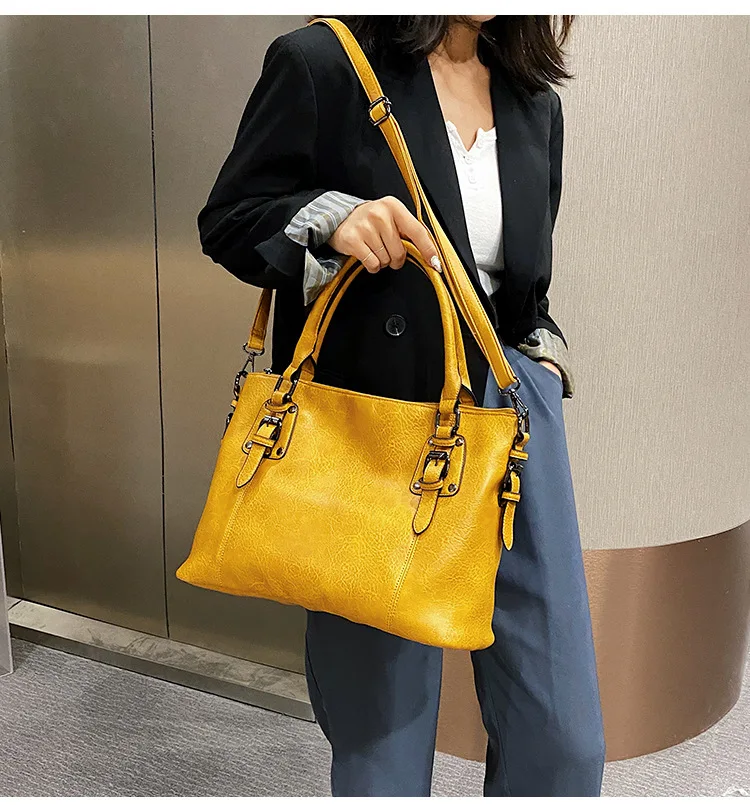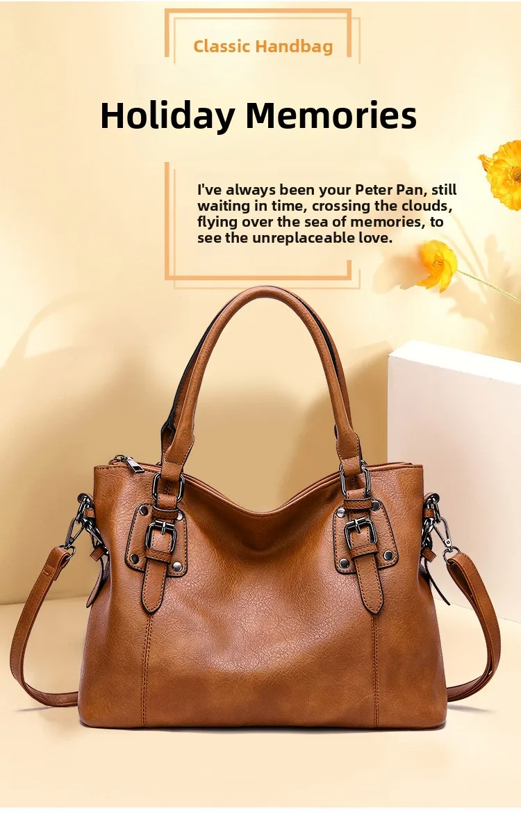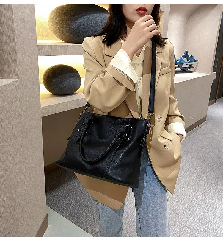 Este saco feminino apresenta um design retro simples, perfeito para quem gosta de um toque vintage na moda.
