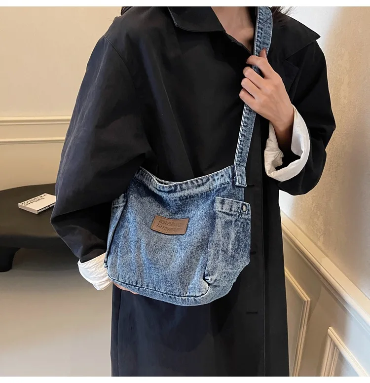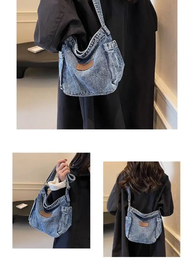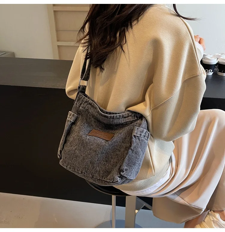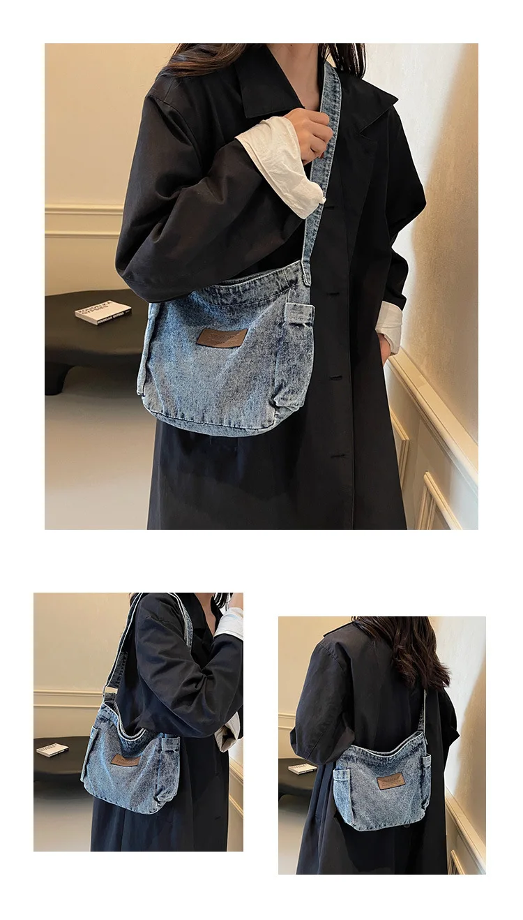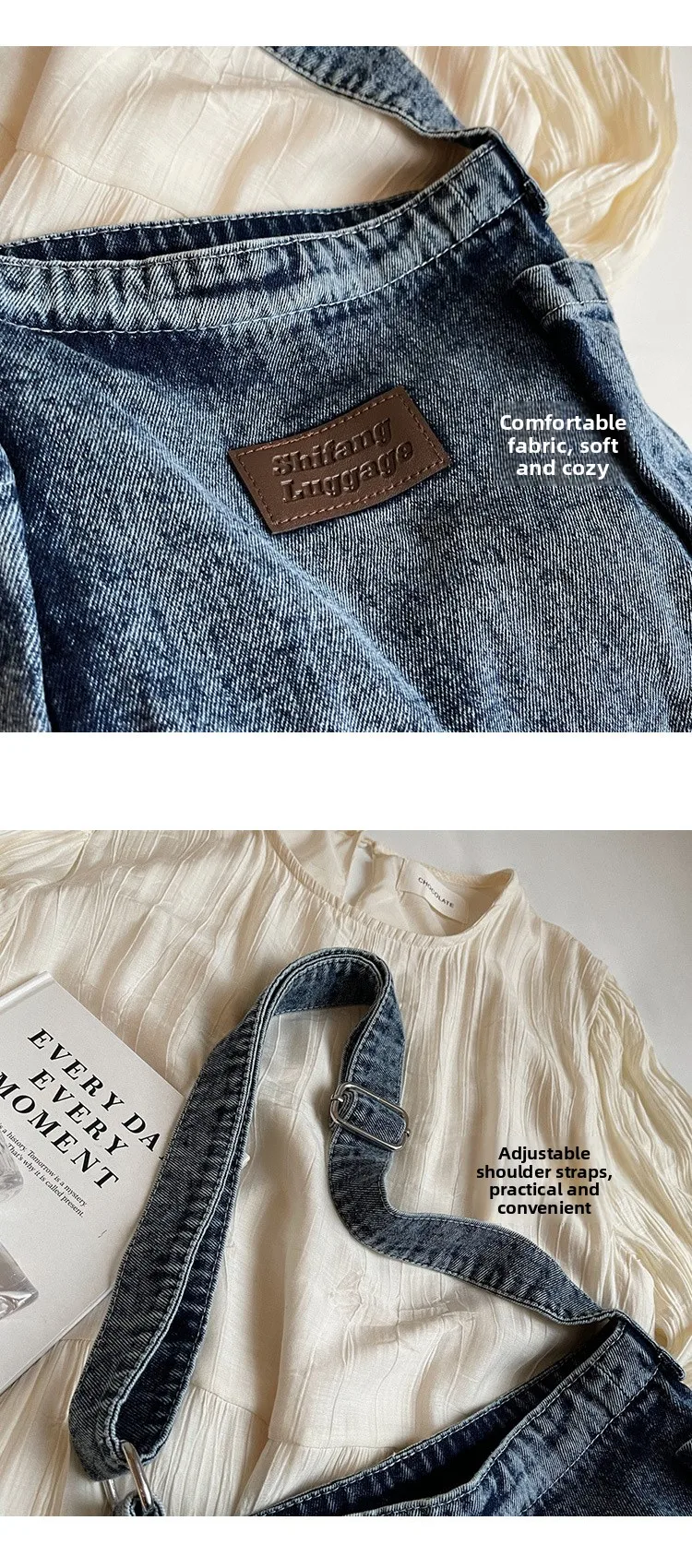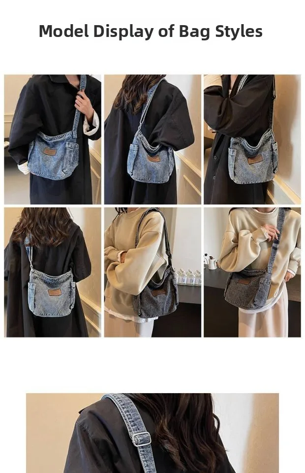 Este saco de mochila de jeans apresenta um estilo retro e simples, perfeito para quem gosta de um look casual e elegante.