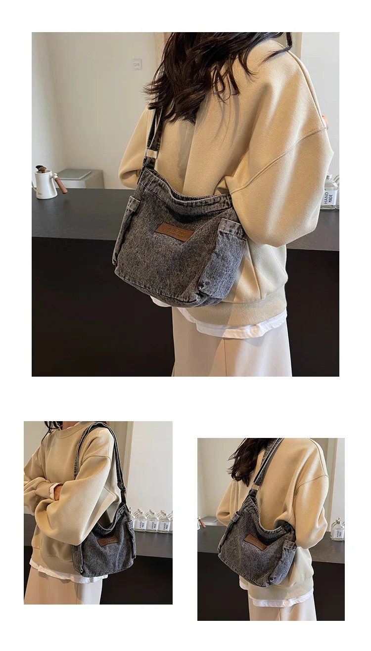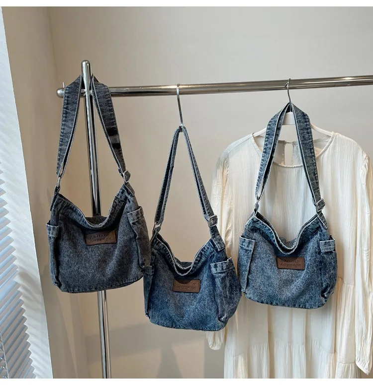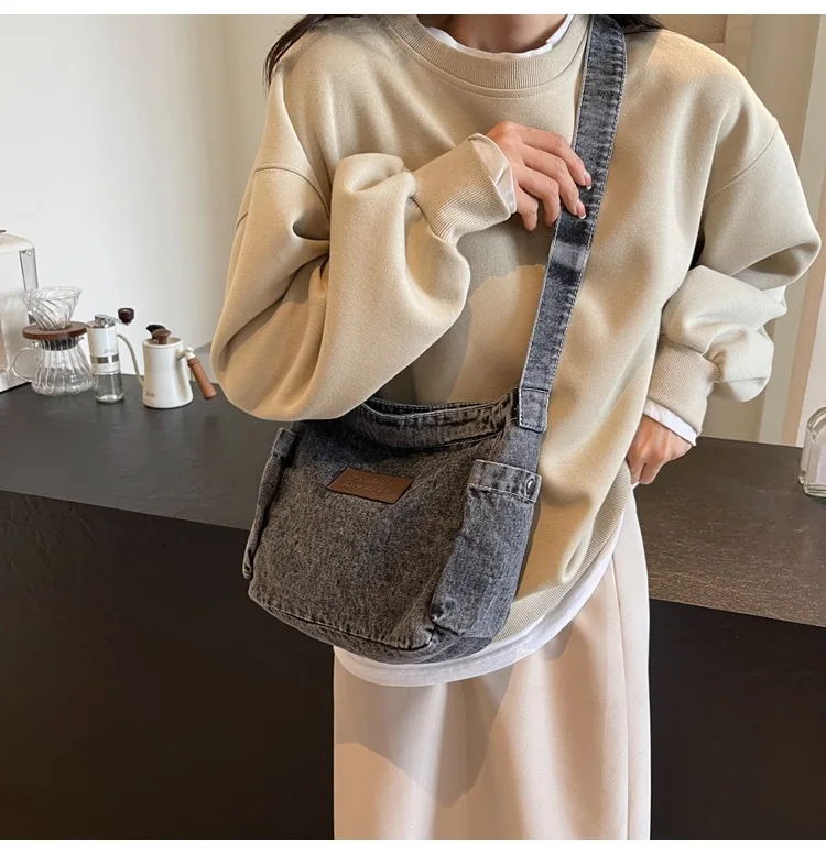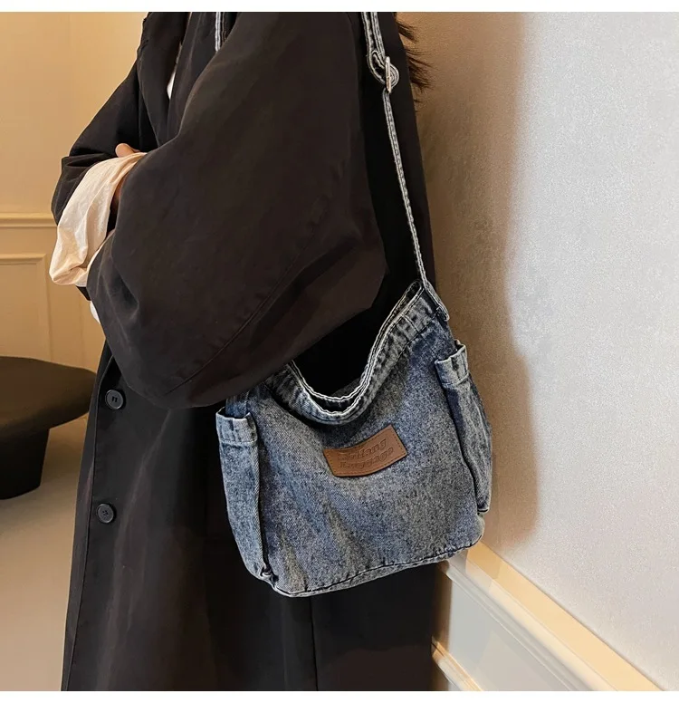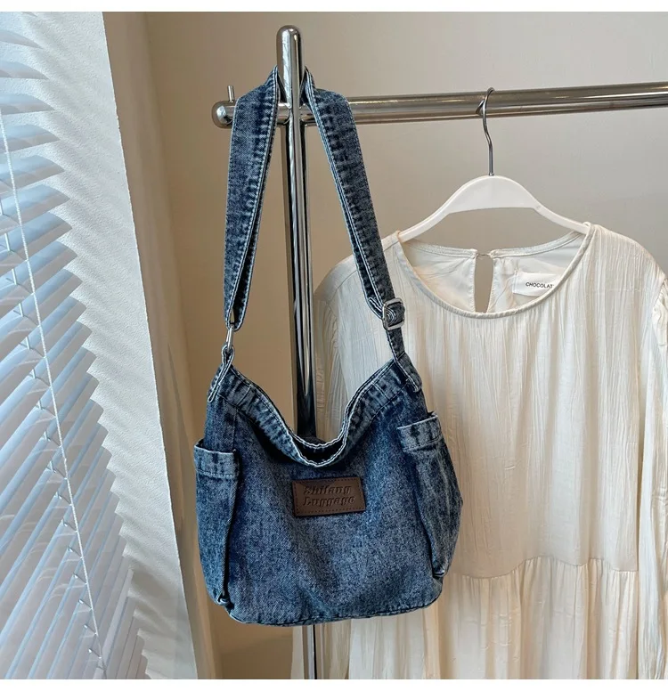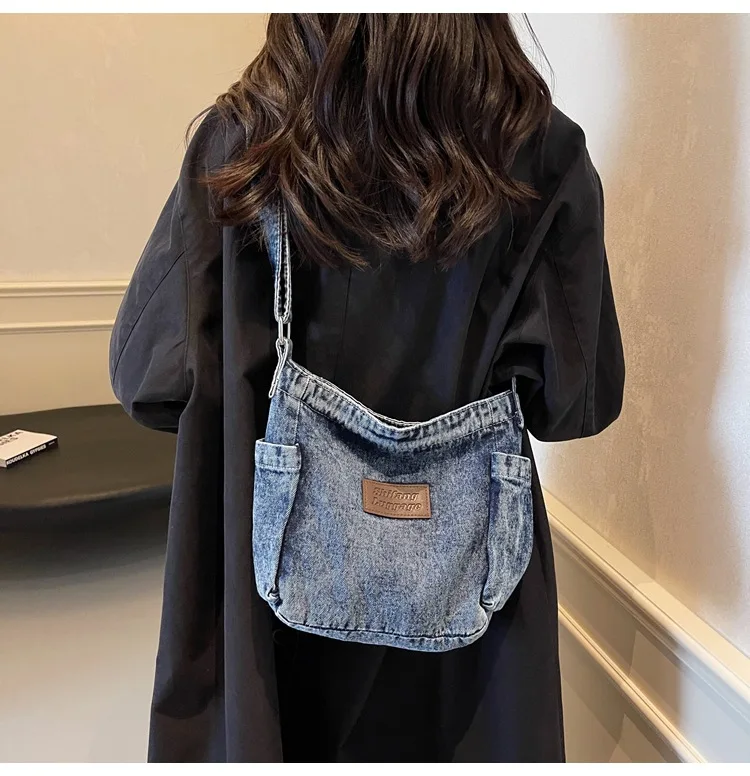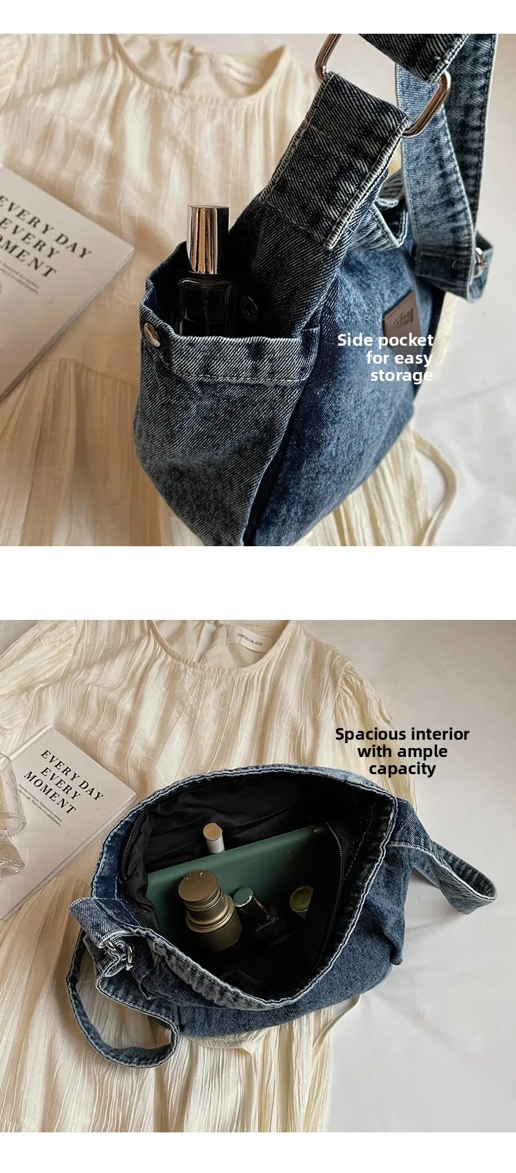 Este saco de mochila de jeans apresenta um estilo retro e simples, perfeito para quem gosta de um look casual e elegante.
