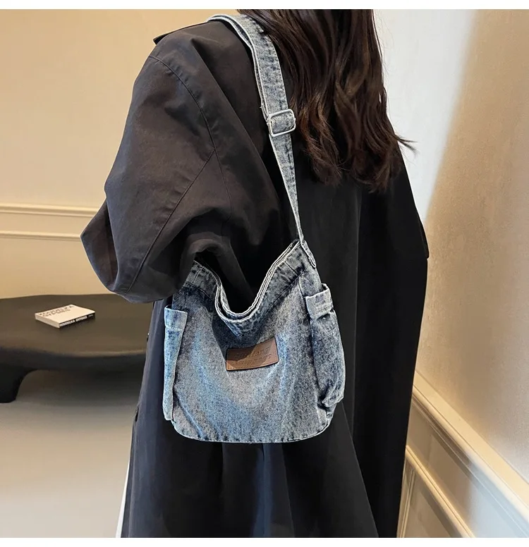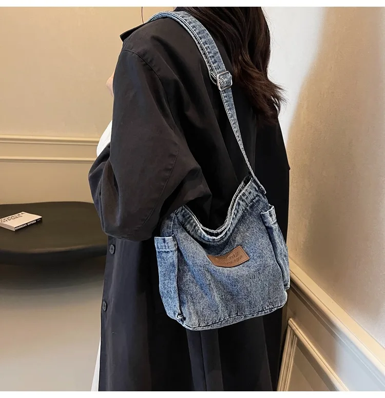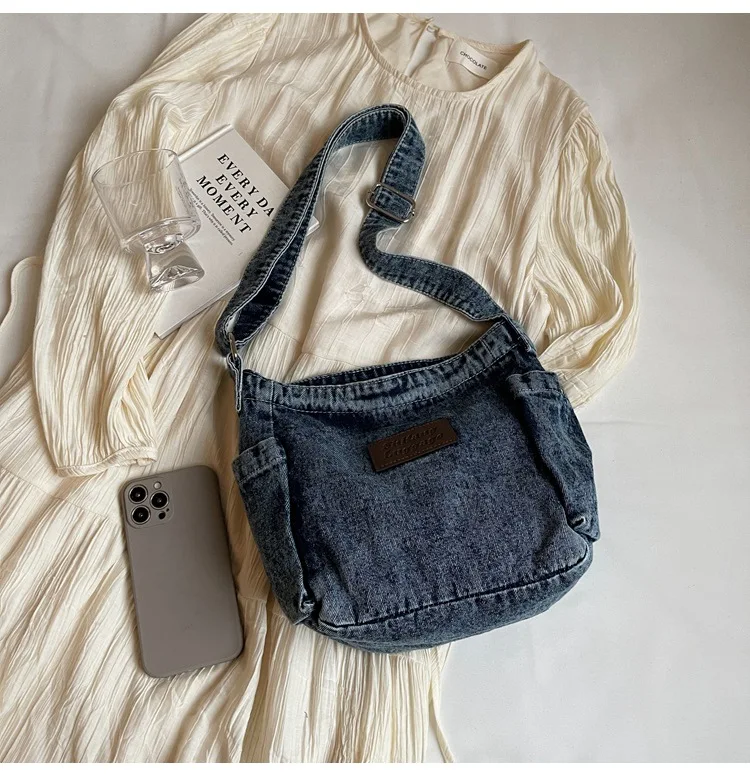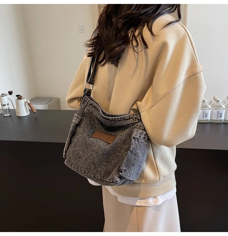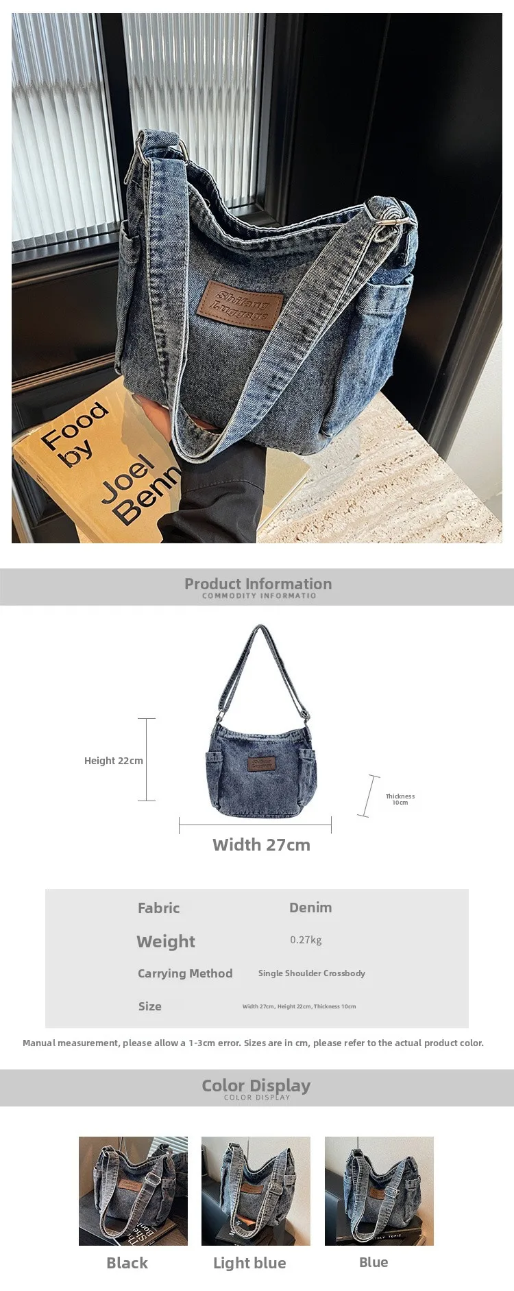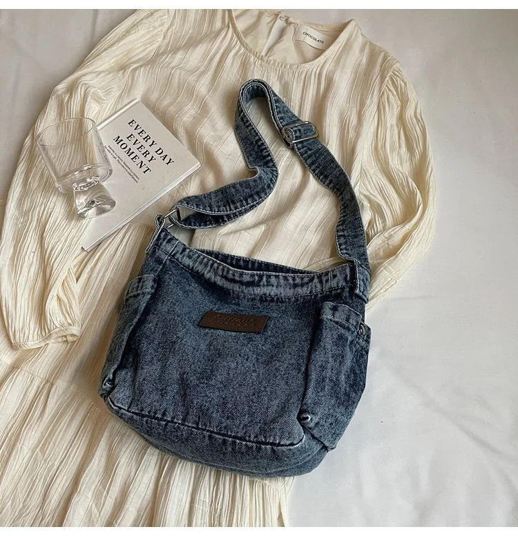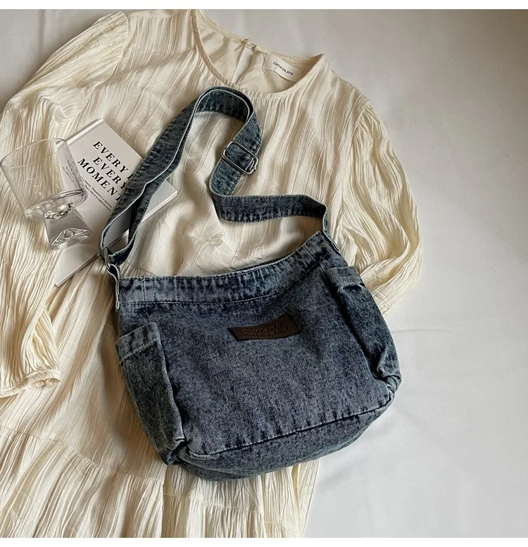Este saco de mochila de jeans apresenta um estilo retro e simples, perfeito para quem gosta de um look casual e elegante.