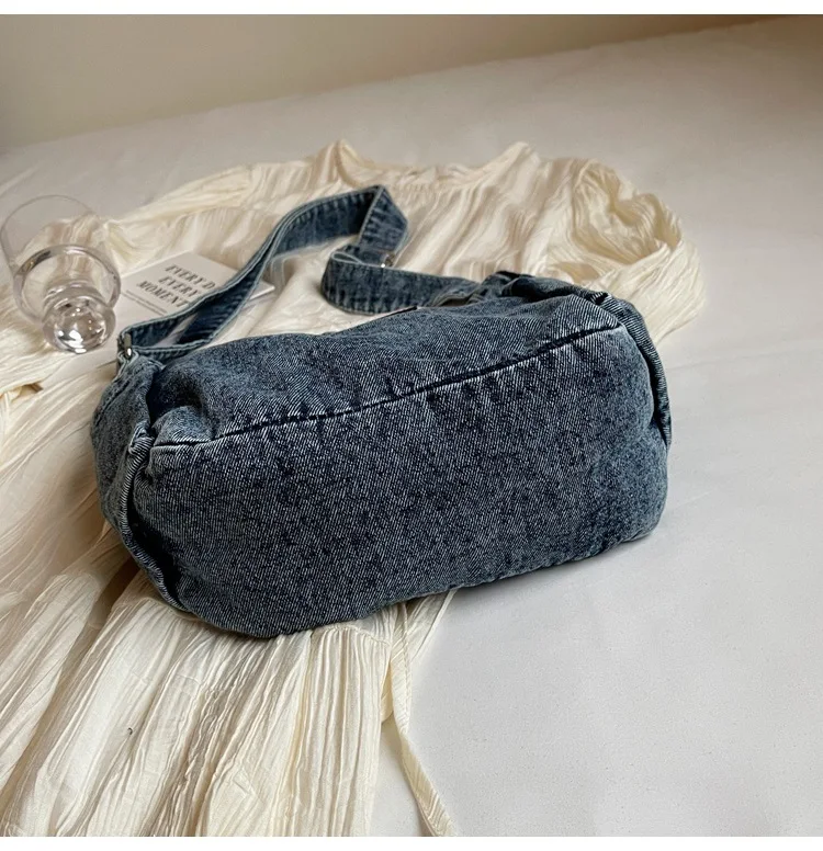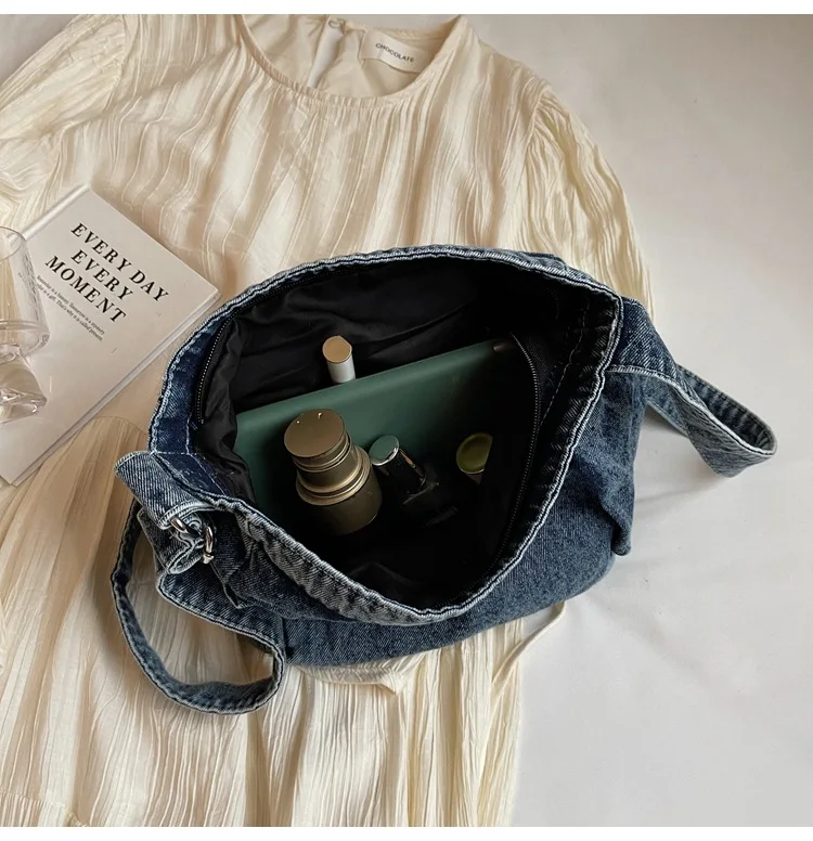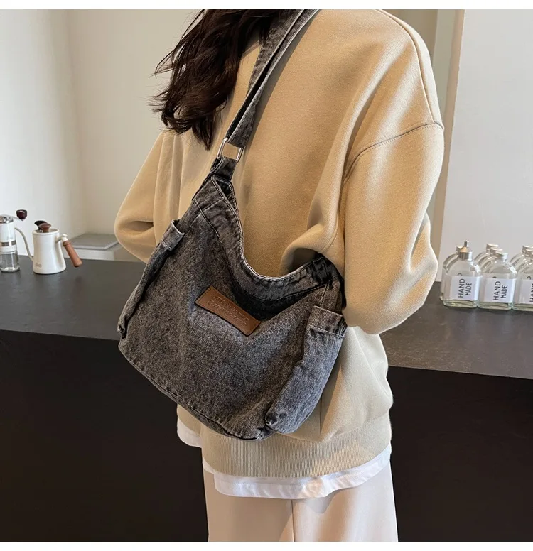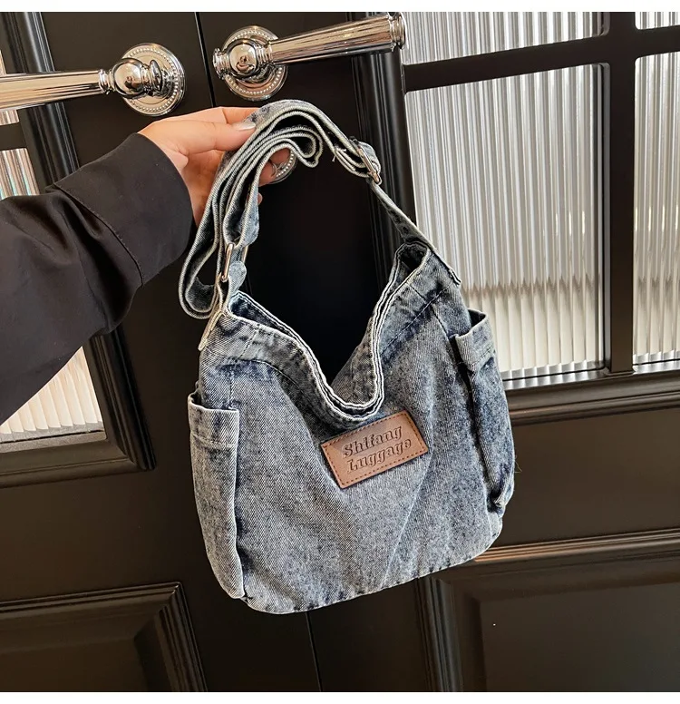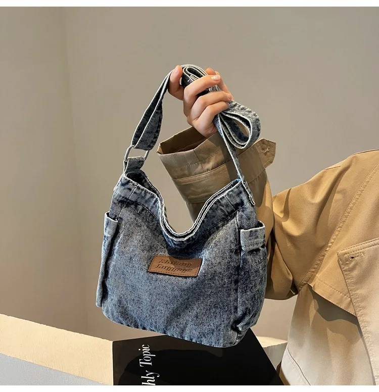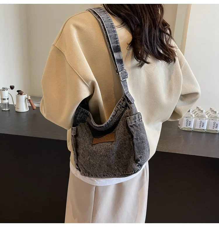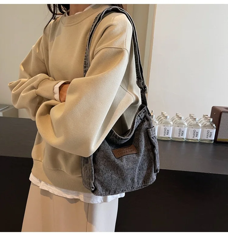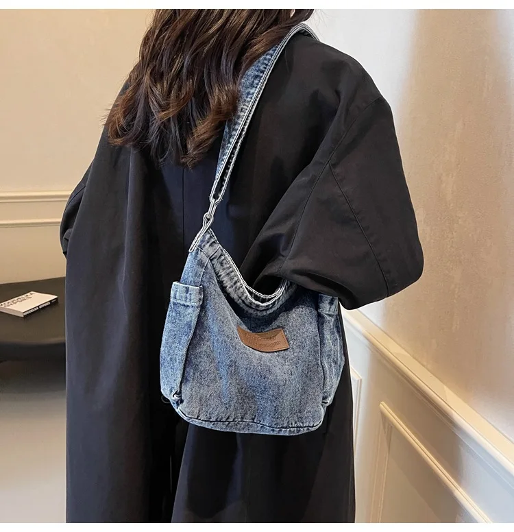 Este saco de mochila de jeans apresenta um estilo retro e simples, perfeito para quem gosta de um look casual e elegante.
