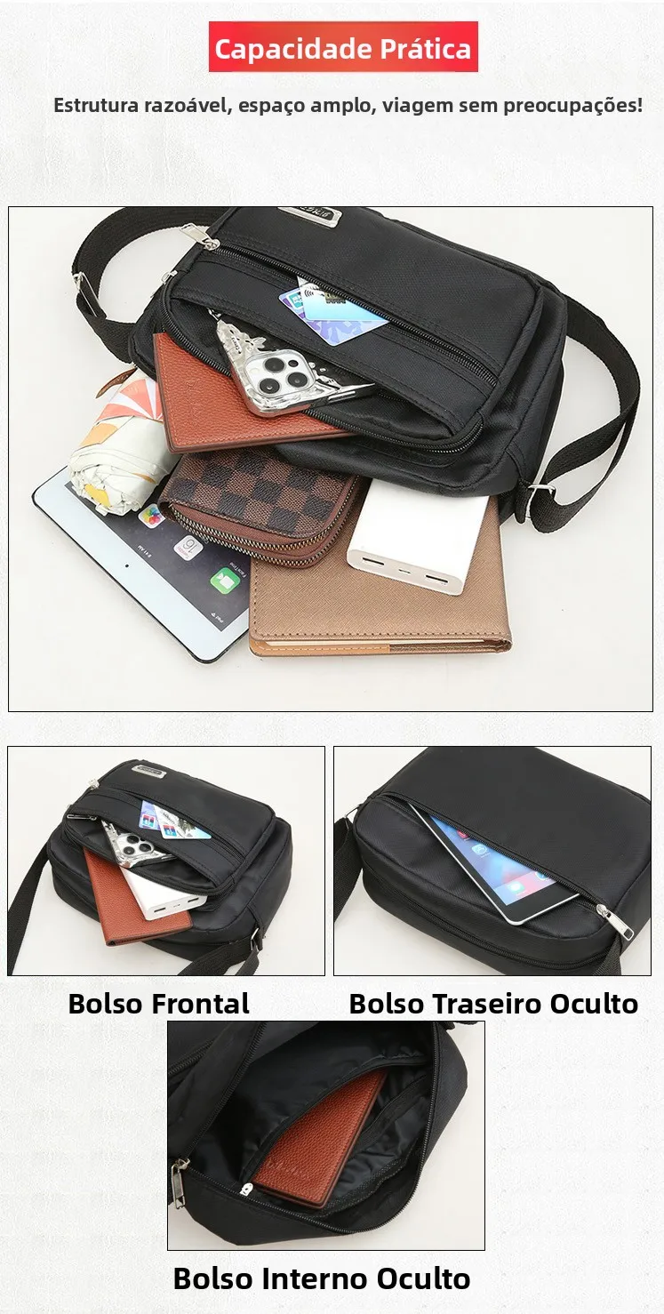 Esta bolsa é versátil, podendo ser usada como uma bolsa de ombro ou uma bolsa de cinto, dependendo das suas necessidades.