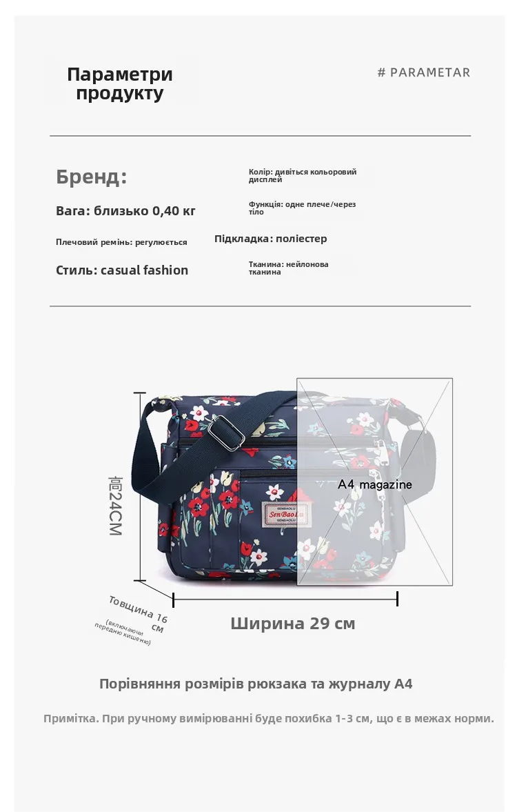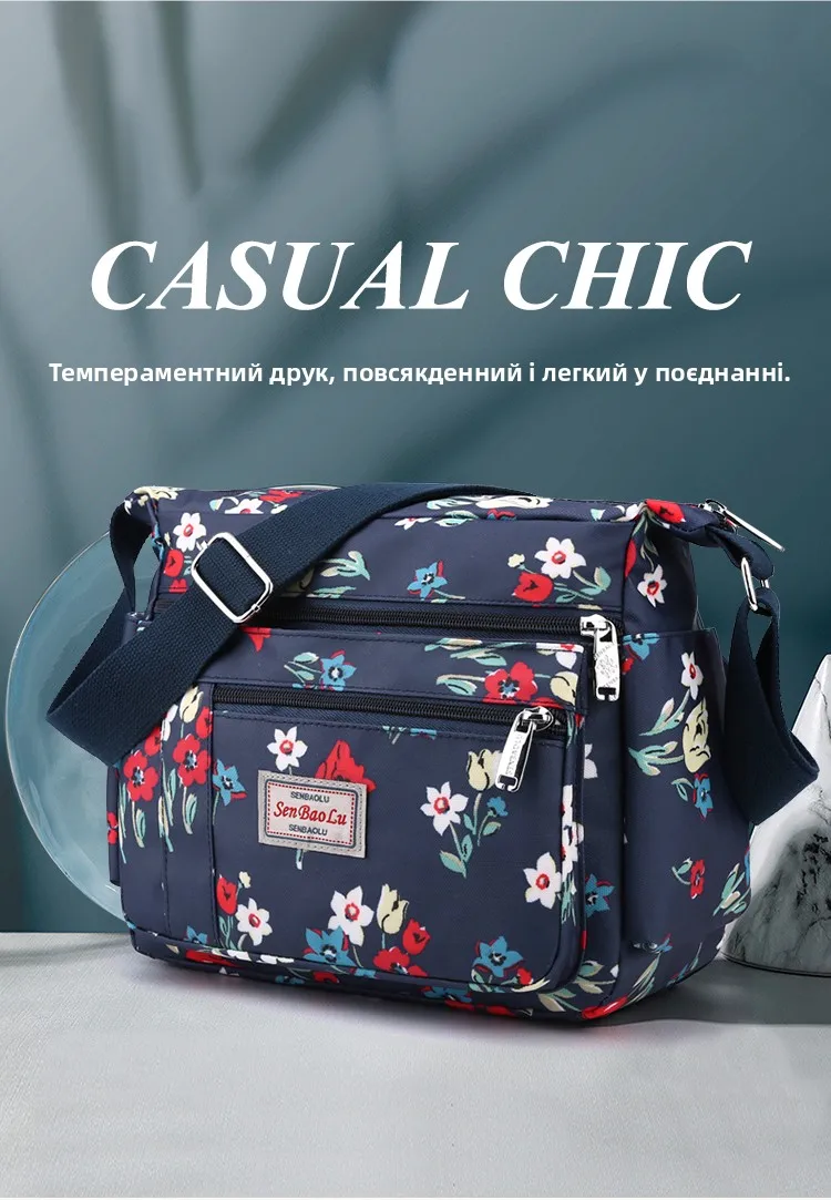 O design floral do saco adiciona um toque de frescor e beleza, tornando-o uma escolha estilosa para qualquer ocasião.