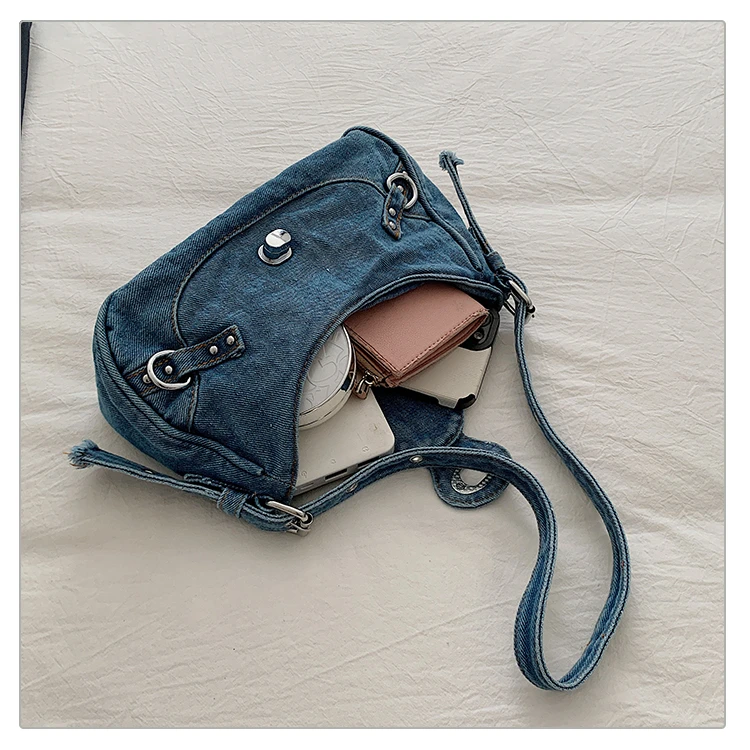Traga um toque despojado e autêntico ao seu look com a nossa Bolsa Jeans Denim. Perfeita para mulheres modernas que adoram a versatilidade do tecido mais clássico do mundo. Combinando com praticamente qualquer peça do seu guarda-roupa, ela oferece um visual jovem, resistente e super prático para todas as ocasiões.