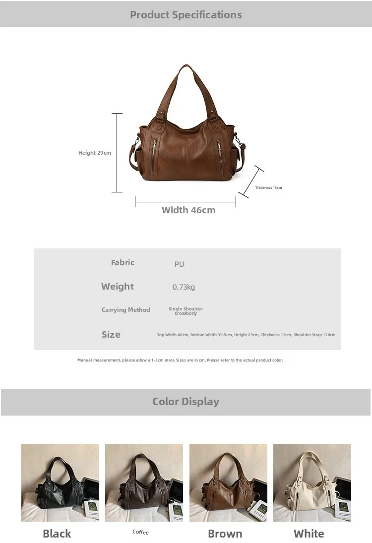 • Capacidade Alta Este saco de bolsa para mulheres possui uma grande capacidade, permitindo que você