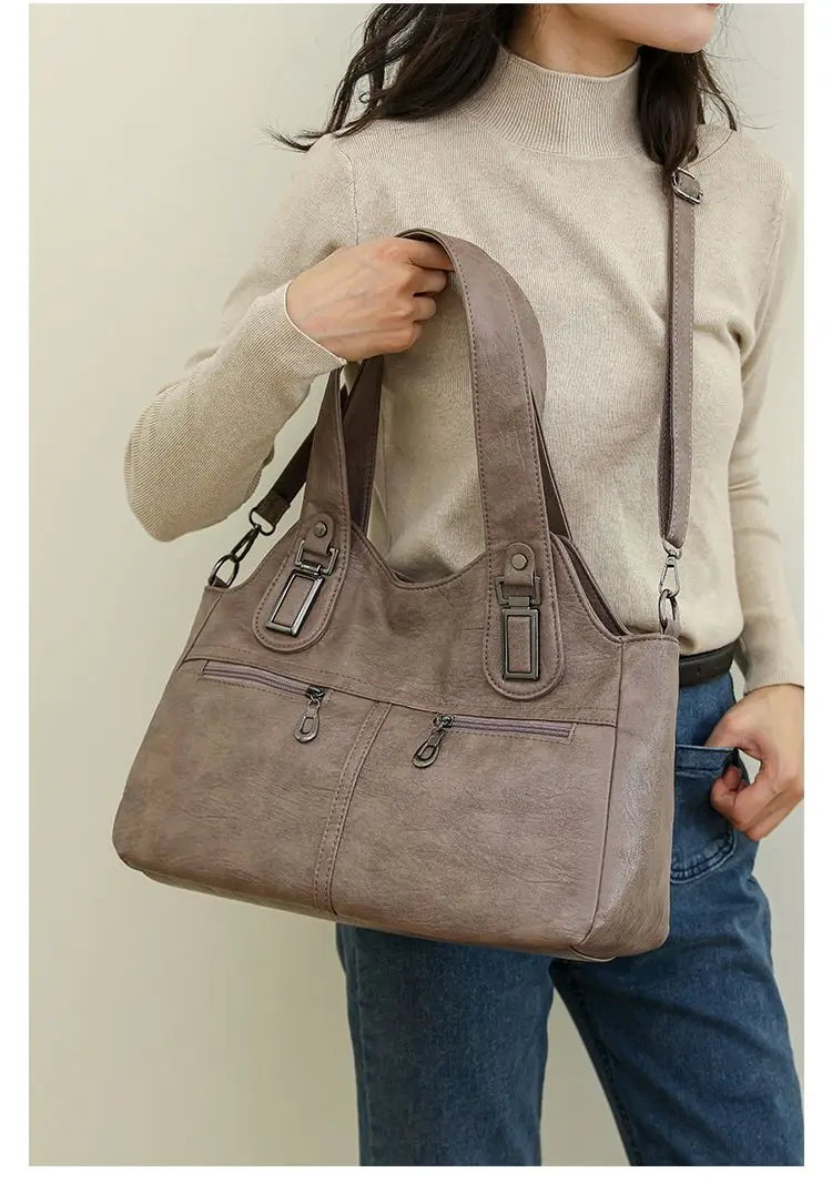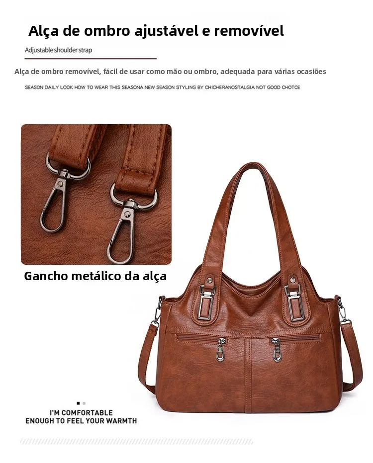 Para mulheres que precisam levar a vida na bolsa, apresentamos a nossa Bolsa Feminina Grande Espaçosa e Moderna. A combinação perfeita entre funcionalidade e sofisticação. Com espaço generoso, ela é ideal para acomodar o seu portátil (notebook), cadernos, nécessaire e tudo o que a sua rotina agitada exige.