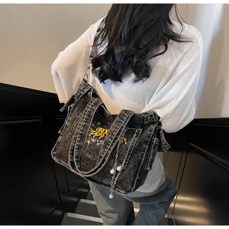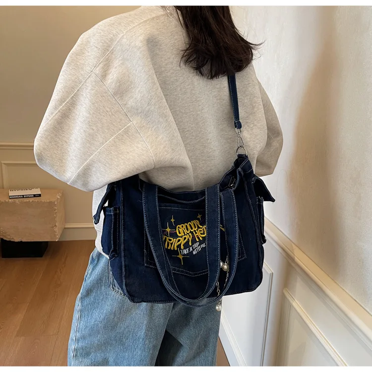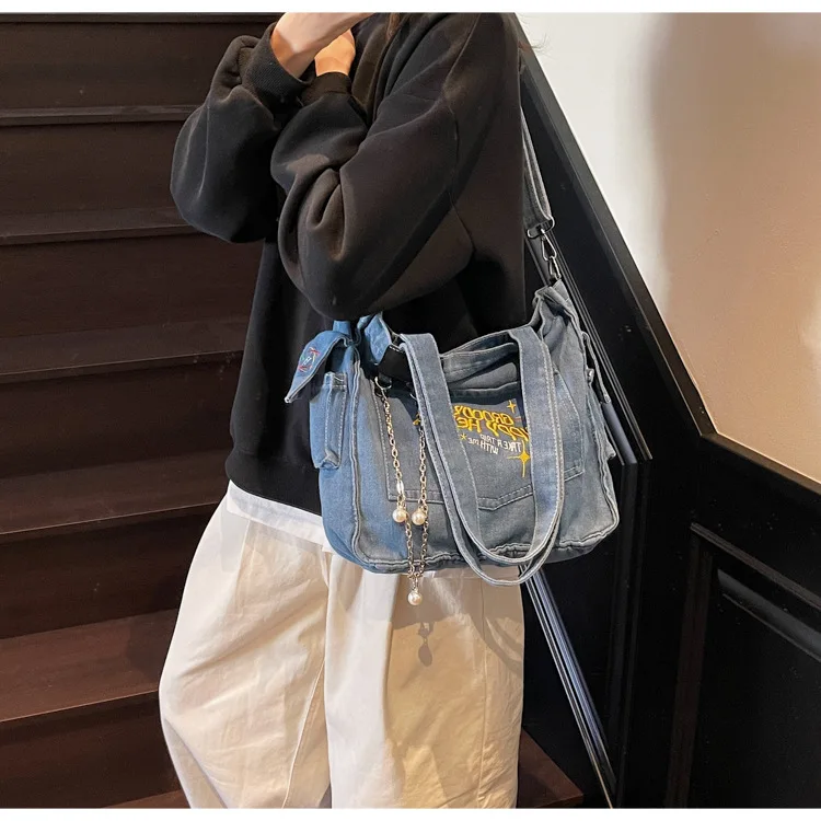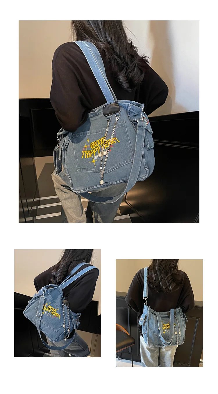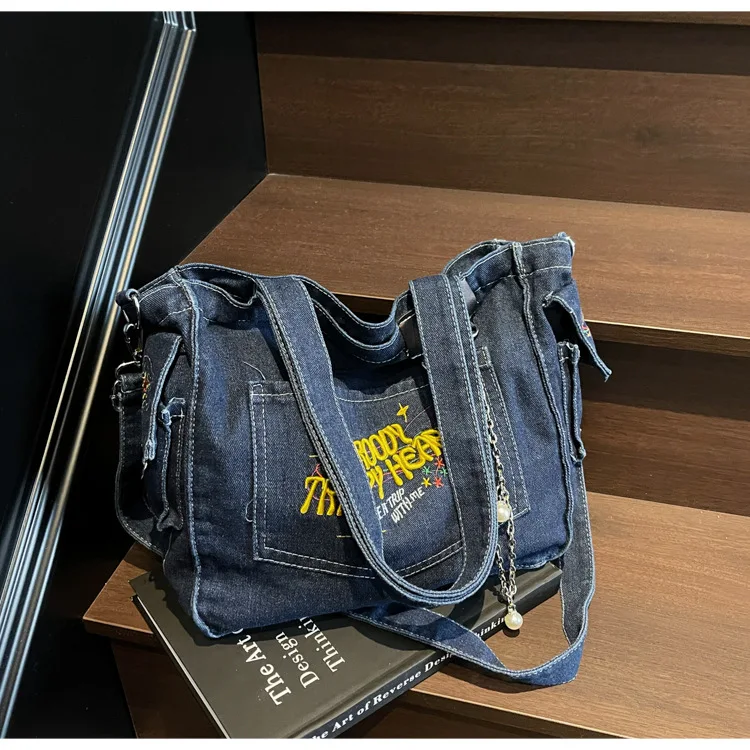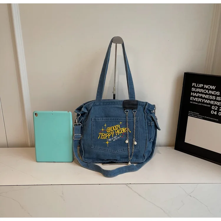 Traga um toque despojado e autêntico ao seu look com a nossa Bolsa Jeans Denim. Perfeita para mulheres modernas que adoram a versatilidade do tecido mais clássico do mundo. Combinando com praticamente qualquer peça do seu guarda-roupa, ela oferece um visual jovem, resistente e super prático para todas as ocasiões.