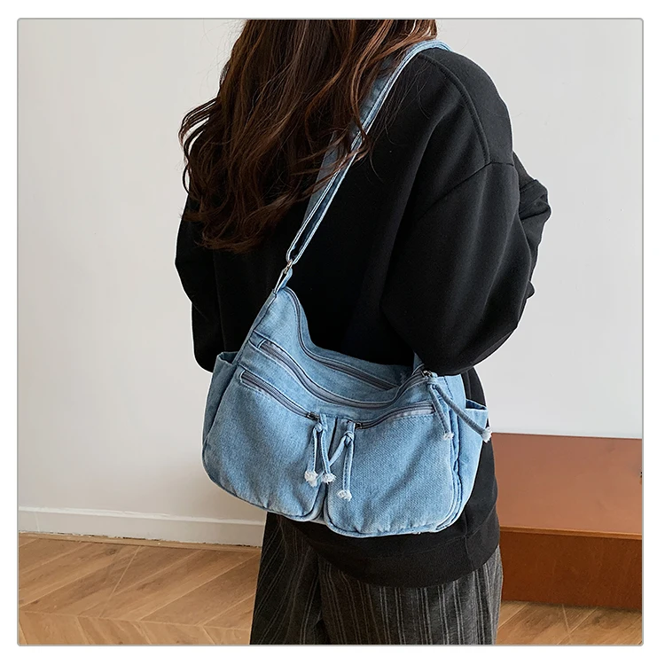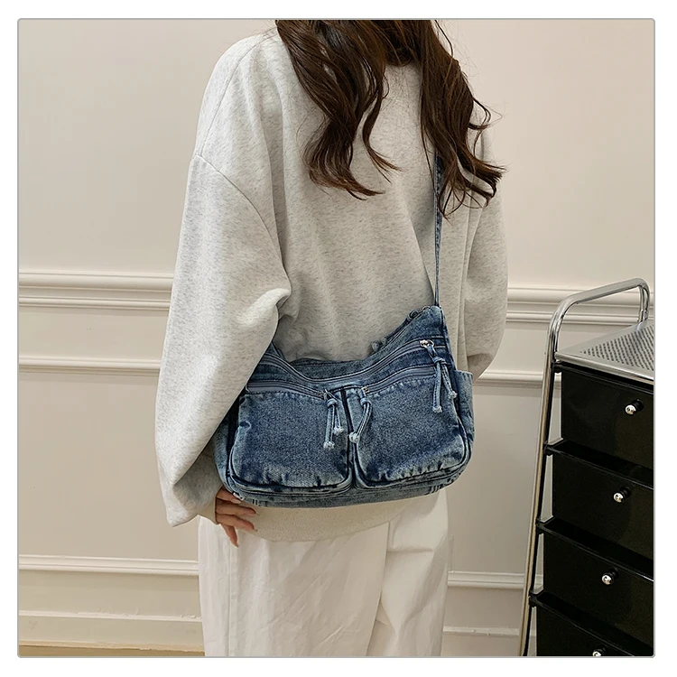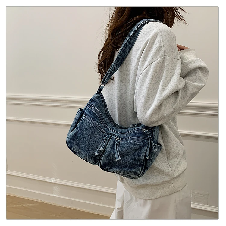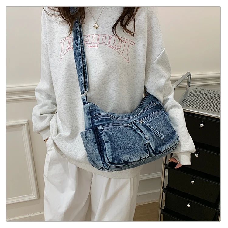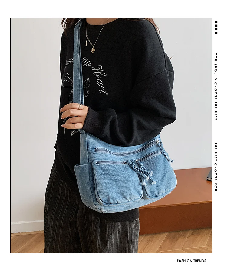 Traga um toque despojado e autêntico ao seu look com a nossa Bolsa Jeans Denim. Perfeita para mulheres modernas que adoram a versatilidade do tecido mais clássico do mundo. Combinando com praticamente qualquer peça do seu guarda-roupa, ela oferece um visual jovem, resistente e super prático para todas as ocasiões.