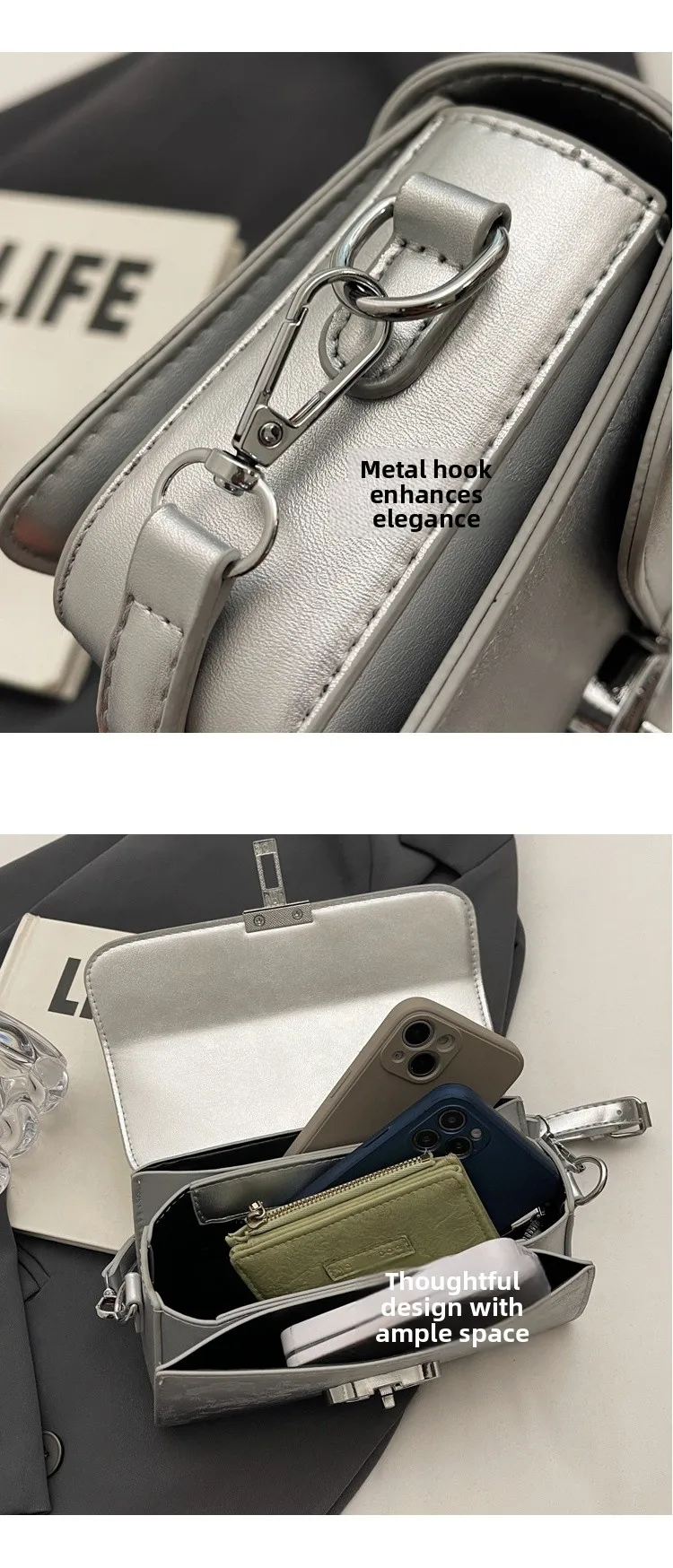 Este pequeno bolso feminino apresenta um estilo urbano simples, perfeito para combinar com qualquer roupa diária.